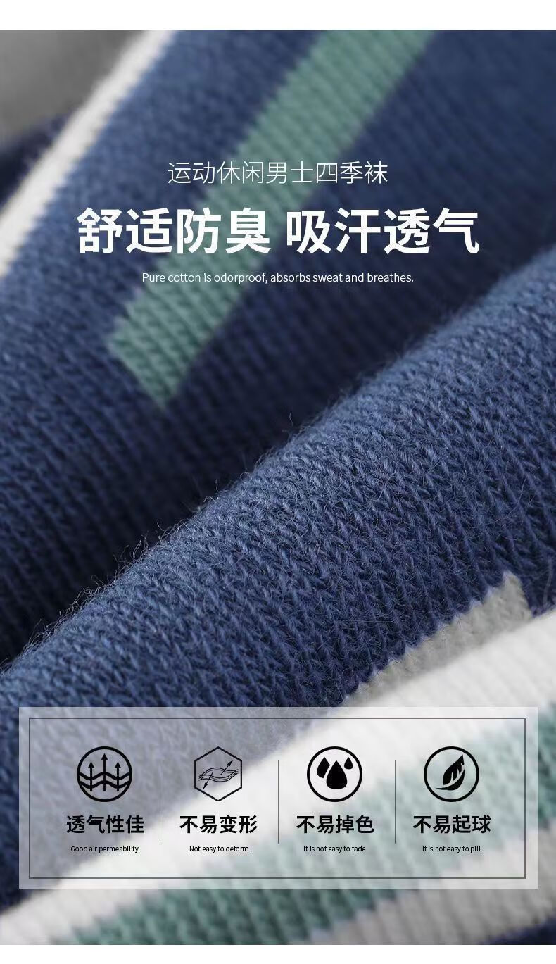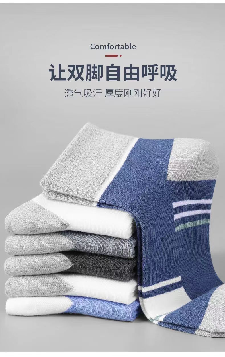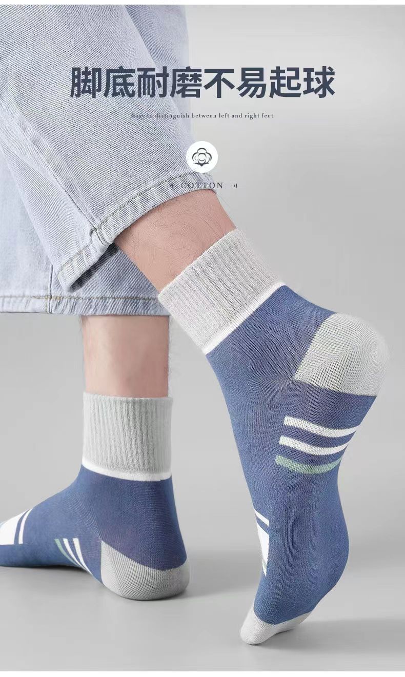 【吸湿排汗】男士袜子男中筒秋冬款长筒运动袜四季防臭吸汗透气 混搭色3双 均码