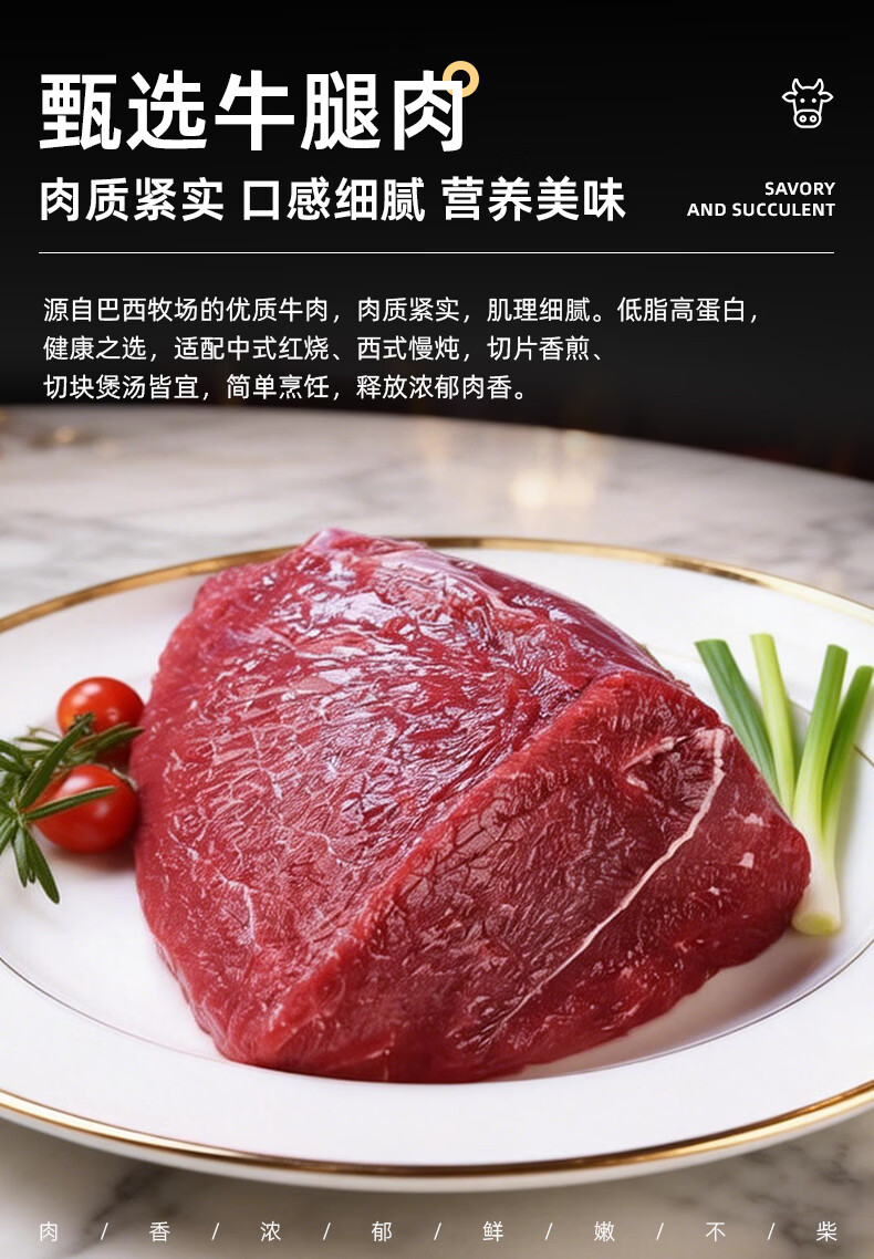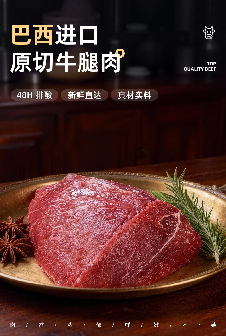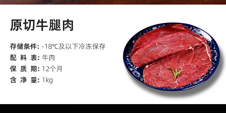飞熊领鲜原切牛腿肉 牛肉生鲜进口原切牛腿牛瘦肉炖煮烹饪食材 原切牛腿肉1kg*2