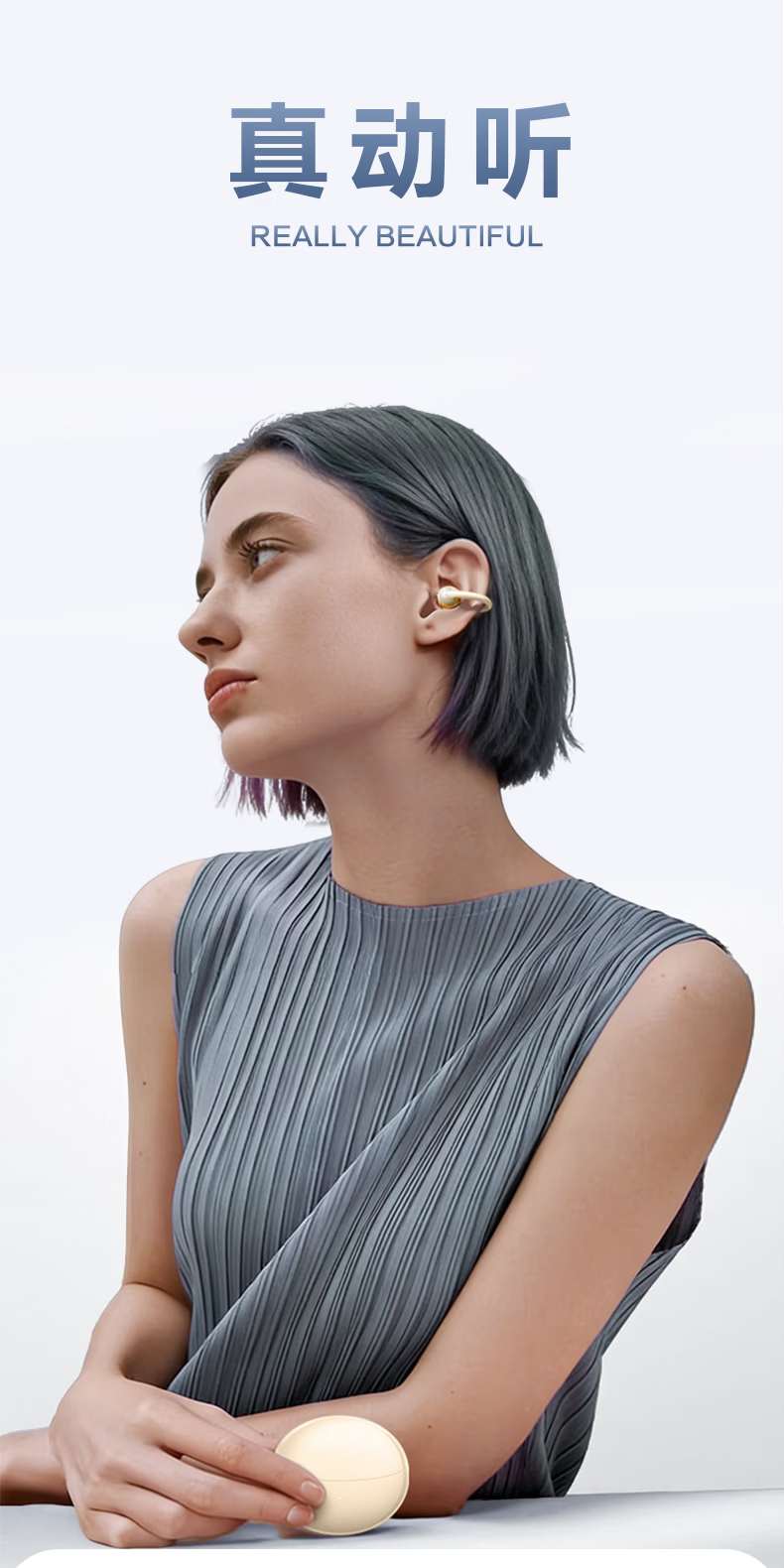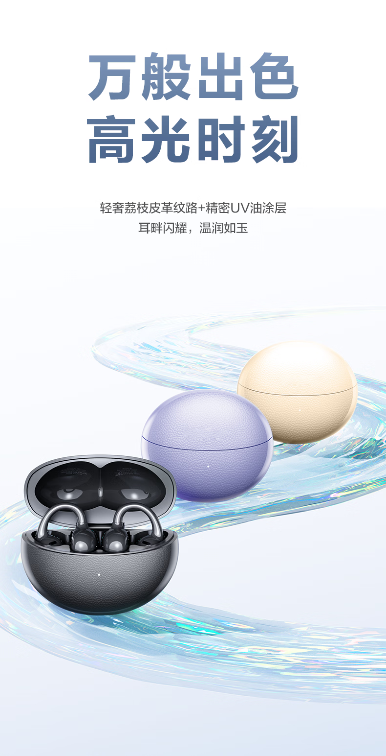 纽曼(Newmine)夹耳式蓝牙耳机运动无线骨传导概念不入耳跑步骑行迷你耳夹耳机超长续航礼物苹果华为手机通用 LY81暖砂米 48H续航丨ENC通话降噪 官方标配