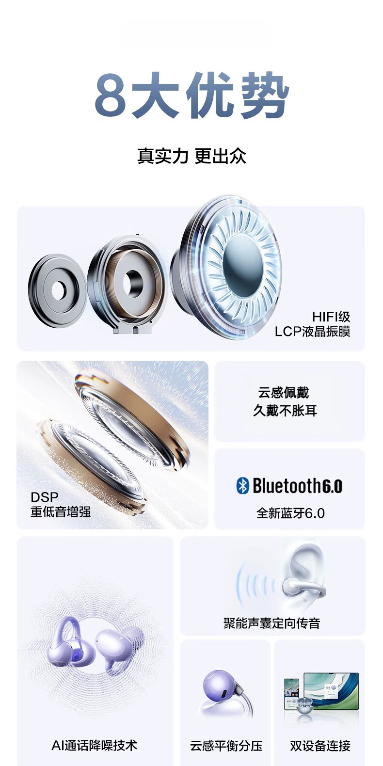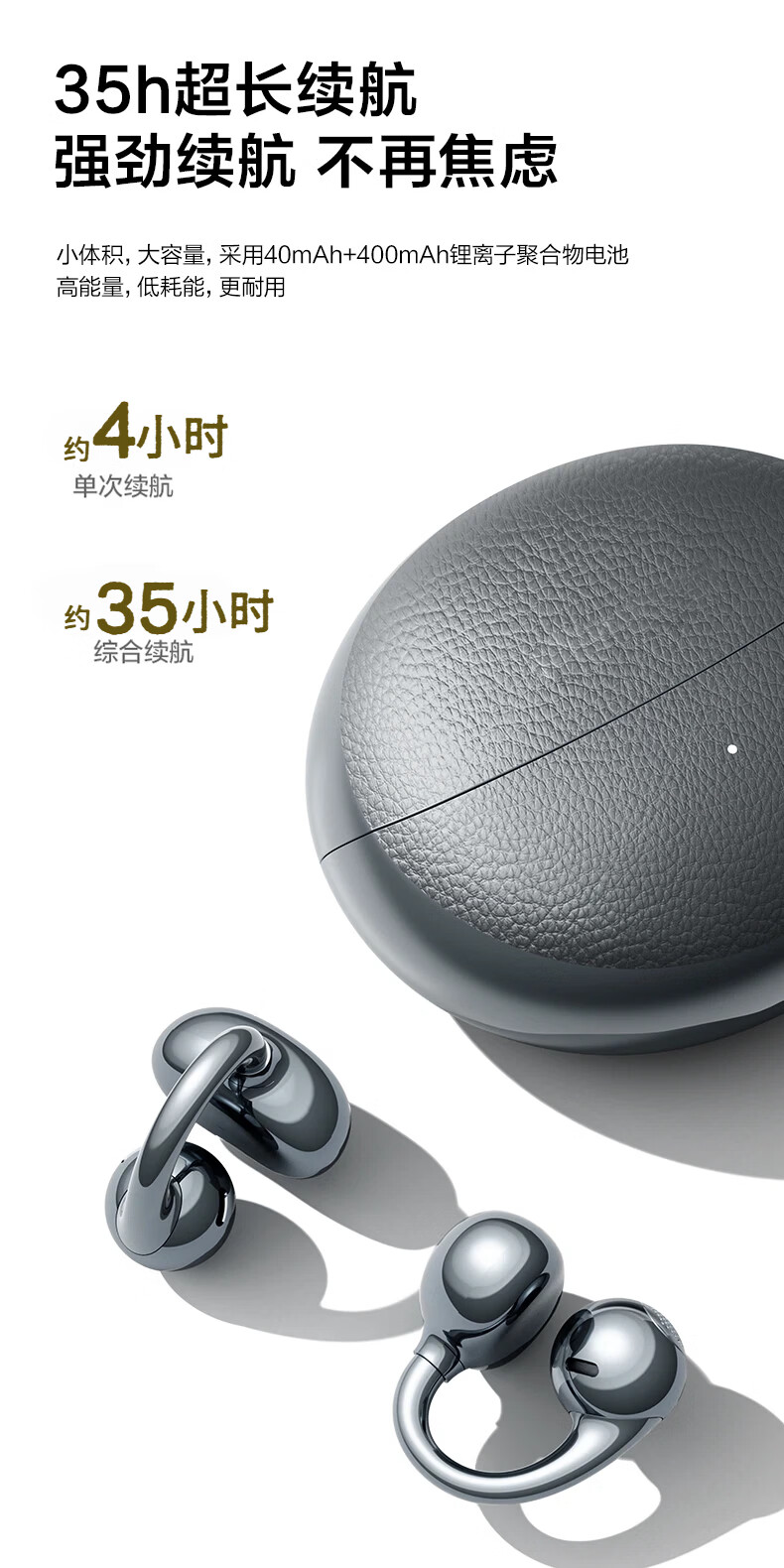 知光者【2025最新款丨HIFI全景音】骨传导概念蓝牙耳机耳夹式不入耳超长续航大容量运动跑步骑车高音质 白色【柏林之声丨HIFI音效】