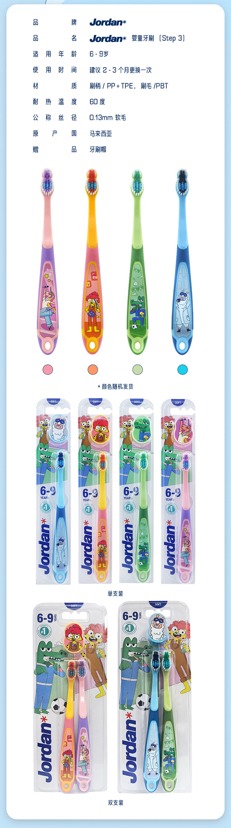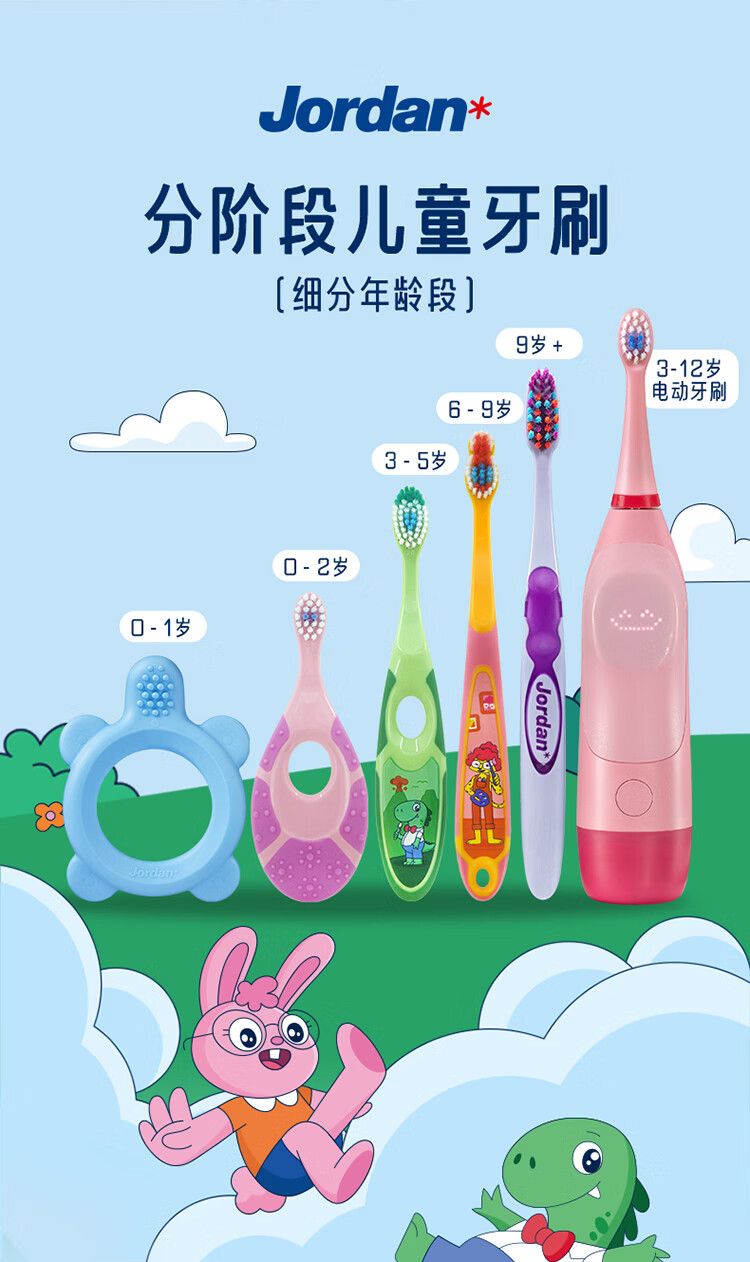 Jordan婴幼儿童宝宝软毛牙刷0-1-2-3-5-9+岁训练护齿乳牙牙刷套装 3-5岁双支B