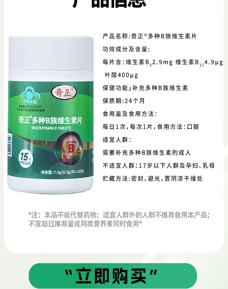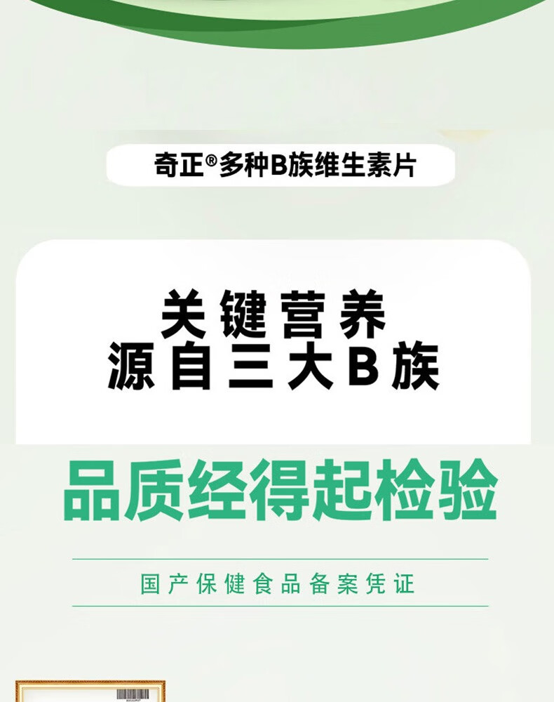 奇正复合维生素b族正品B6B12叶酸提高男女士代谢15片/瓶 1瓶装