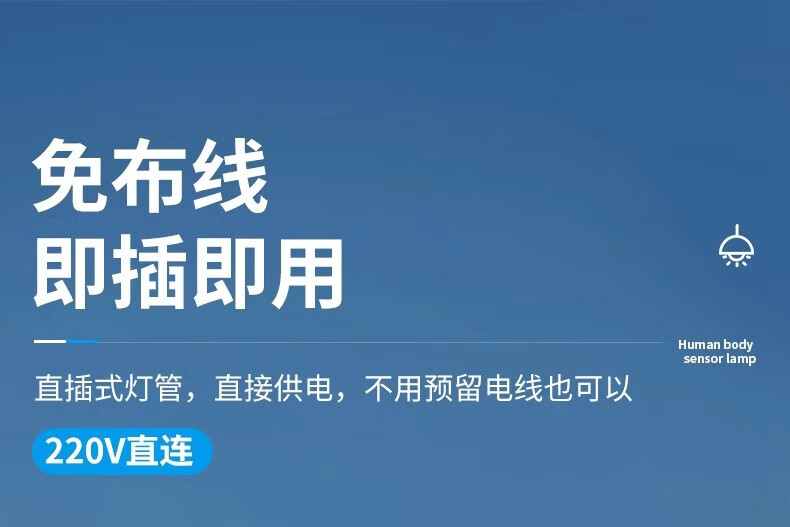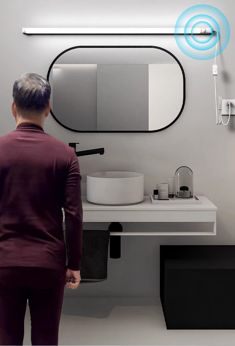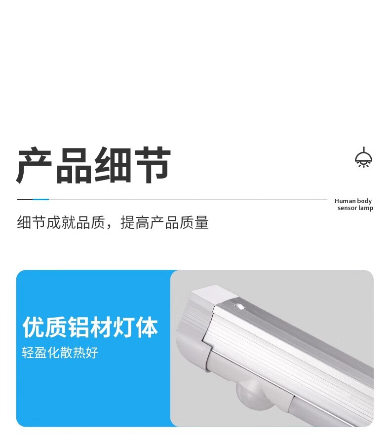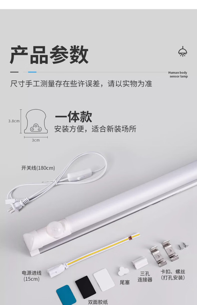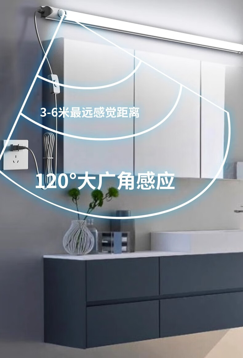 拉伯塔阳台人体感应灯管led吸顶灯厕所浴室卫生间过道走廊玄关插电壁灯 【接线款】0.6m9W-白光 人体感应灯管【全亮全灭+光控】