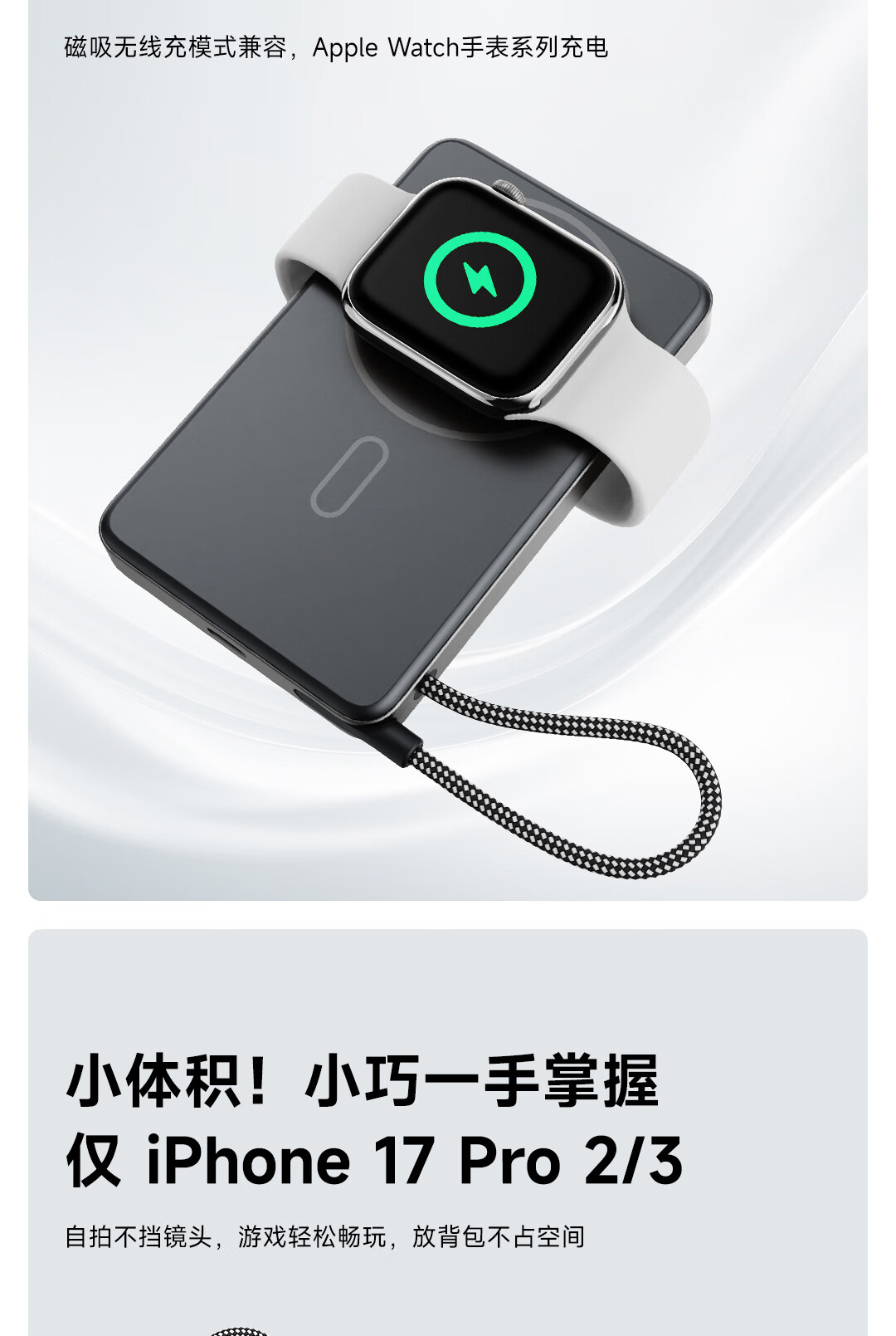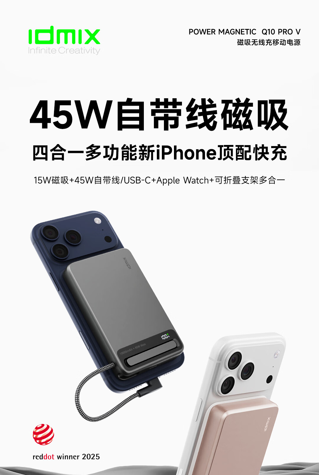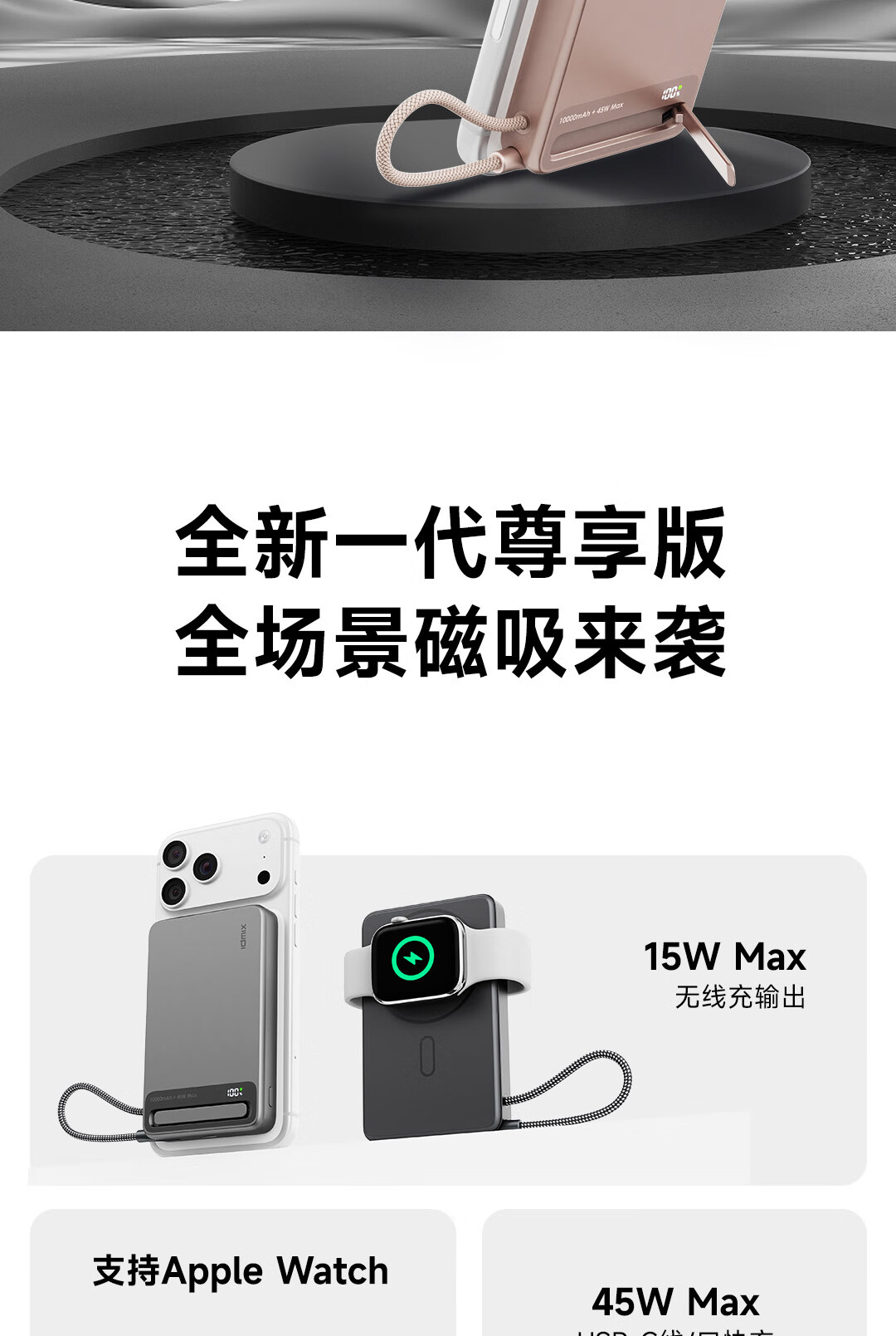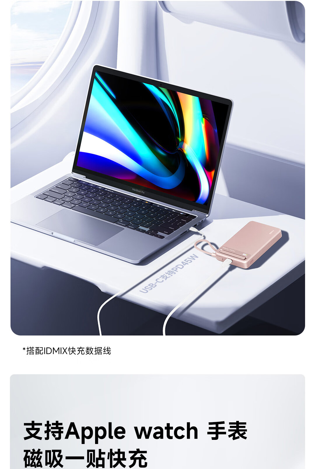 IDMIX自带线磁吸充电宝45W快充适用iPhone17苹果16可携登机Apple watch手表Apple watch笔记本移动电源 【苹果专卖店在售同款】沙漠金