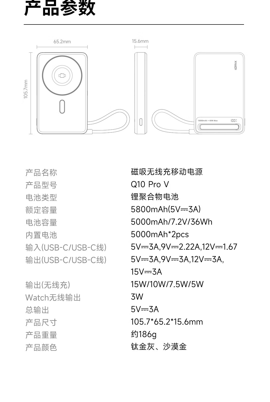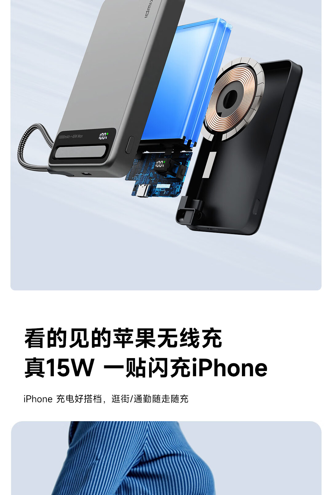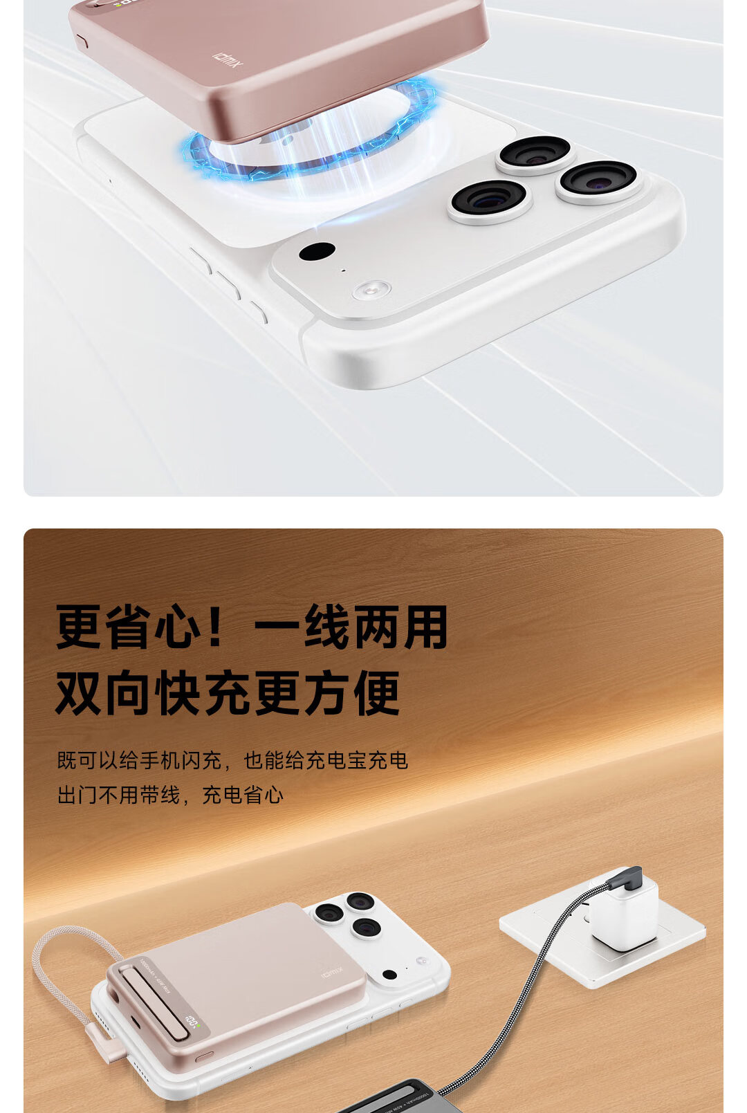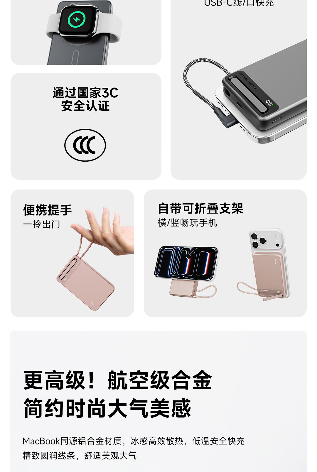 IDMIX自带线磁吸充电宝45W快充适用iPhone17苹果16可携登机Apple watch手表Apple watch笔记本移动电源 【苹果专卖店在售同款】沙漠金