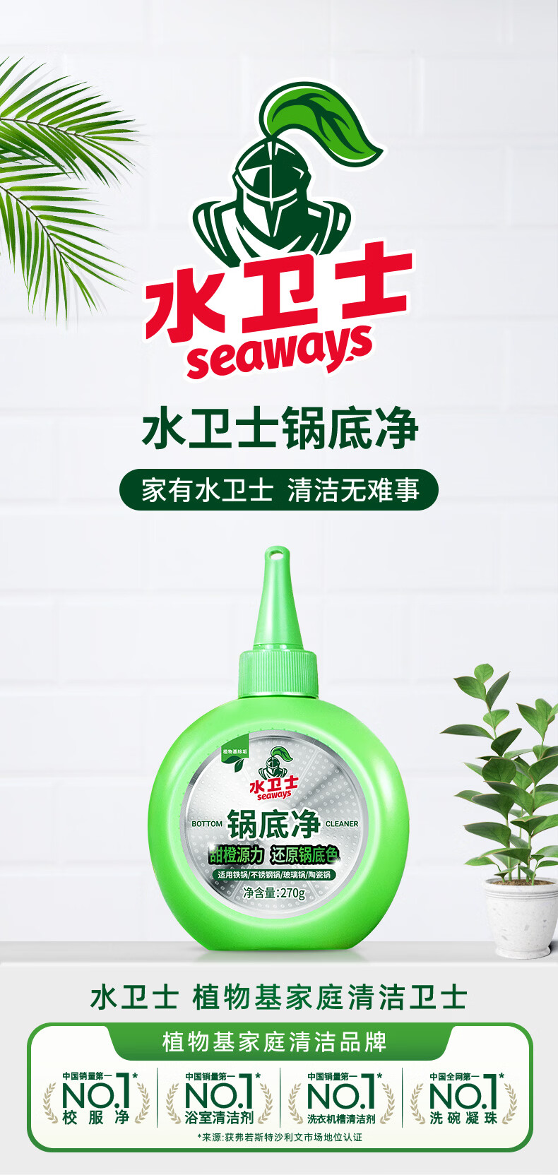 水卫士锅底净270g*2 不锈钢清洁剂锅底除垢神器厨房清洁膏强力去污540g 【实惠装】锅底净270g*2瓶