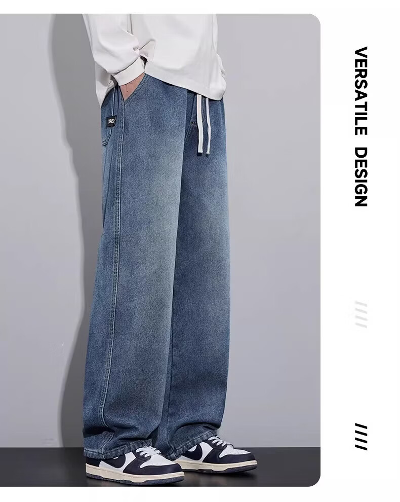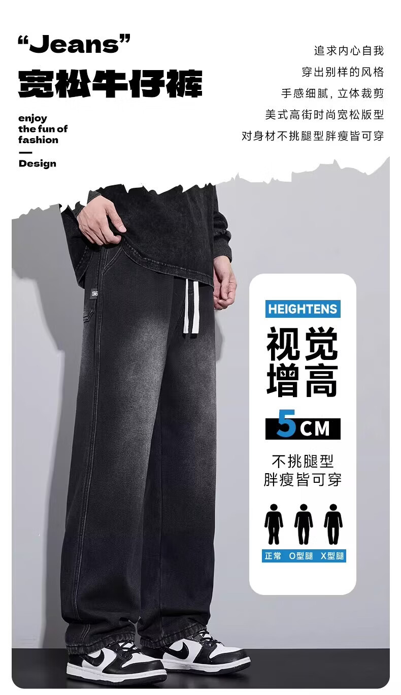 真维斯(Jeanswest)加绒加厚牛仔裤男冬季宽松直筒水洗复古防风保暖休闲长裤子 黑灰色常规【水洗耐磨】 S 建议100-110斤