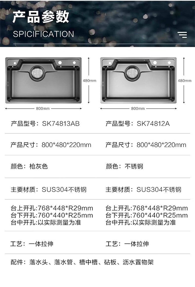 摩恩(MOEN)枪灰色日式多功能水槽套装厨房洗菜盆洗碗槽洗碗池304不锈钢单槽