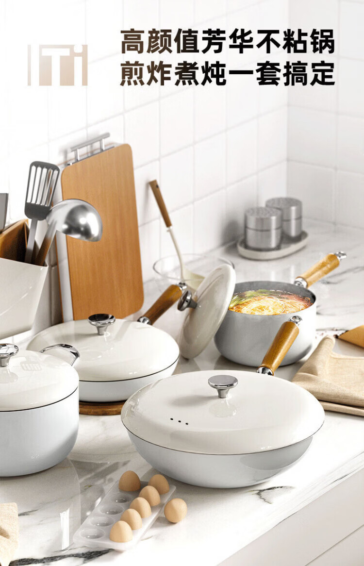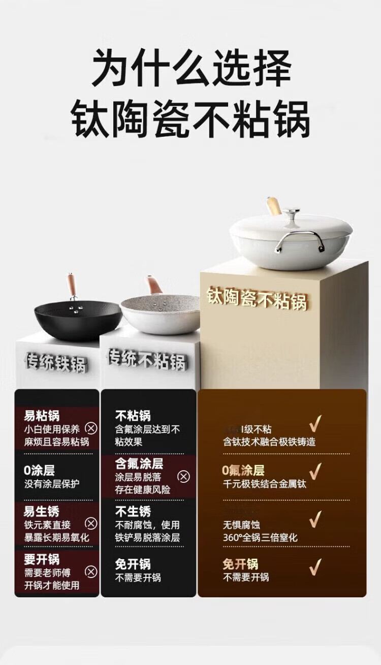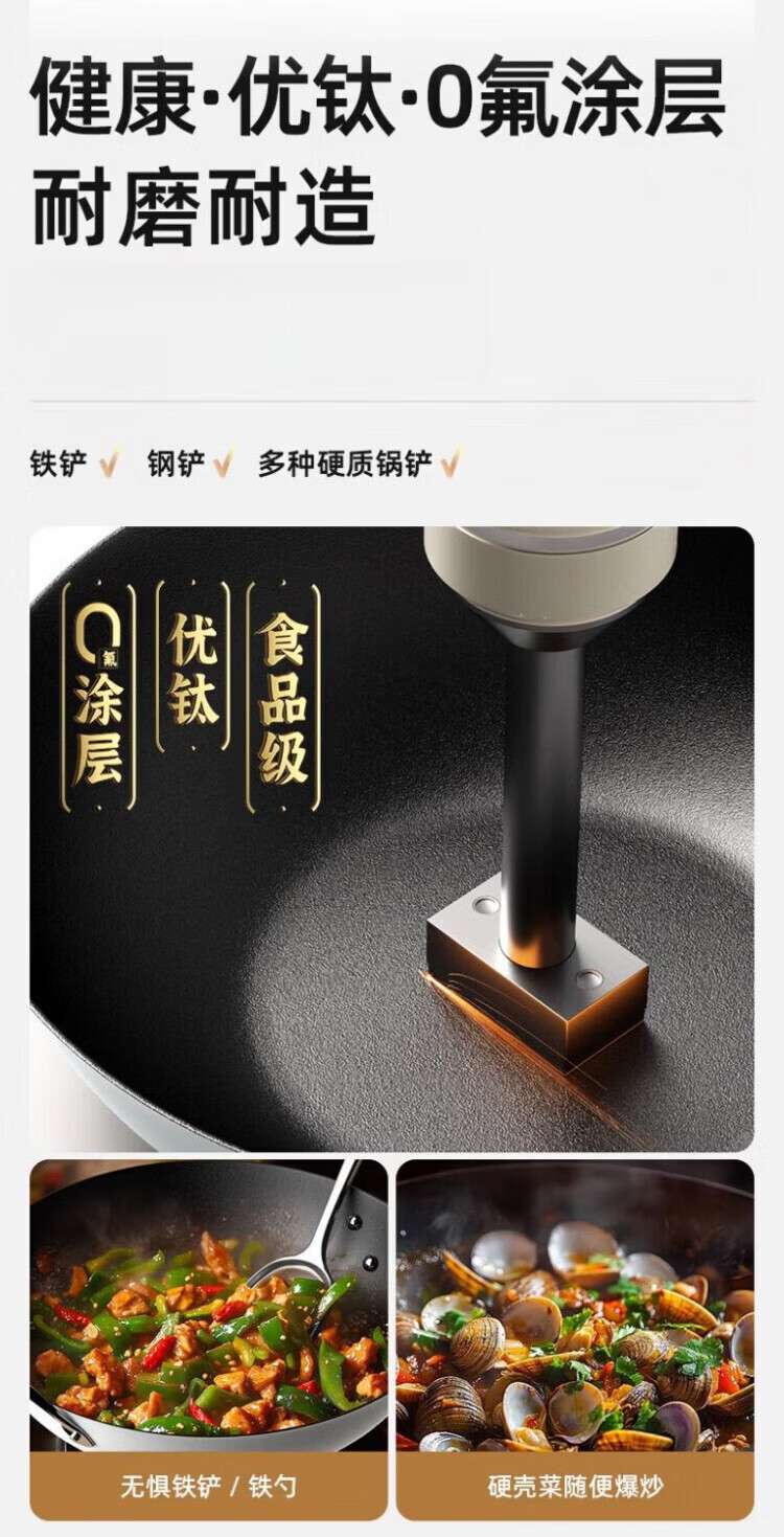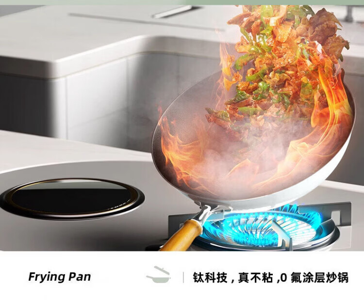 OCMOGO日本品牌有钛炒锅家用平底不粘炒菜锅0氟涂层电磁炉燃气灶通用 炒锅【带盖】 30cm