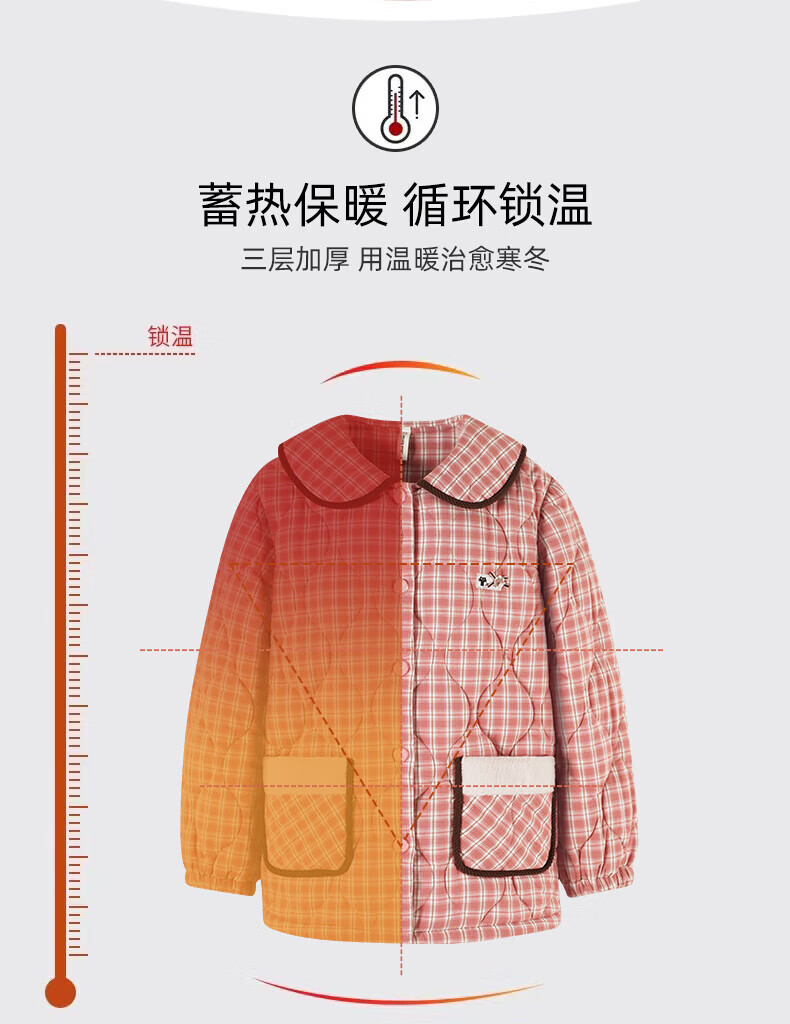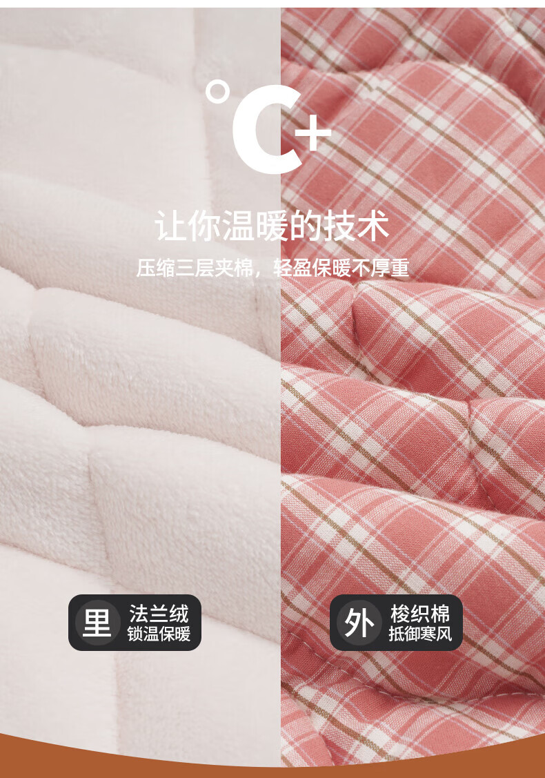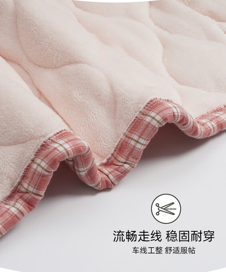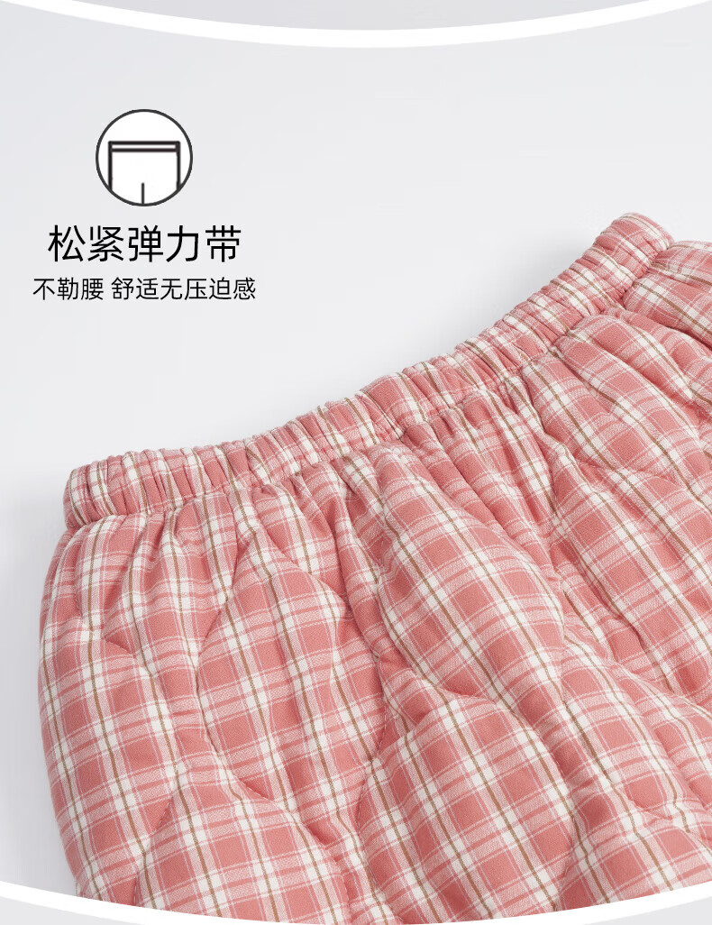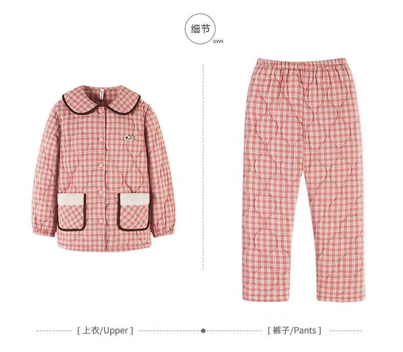 允织睡衣女冬季三层加厚加绒梭织纯棉夹棉袄秋冬款珊瑚绒高级感家居服 68045-桃粉 M (160) :建议90-110斤穿着