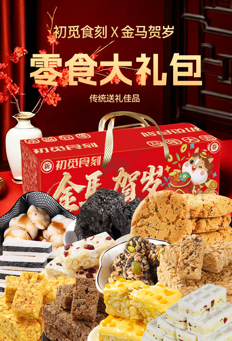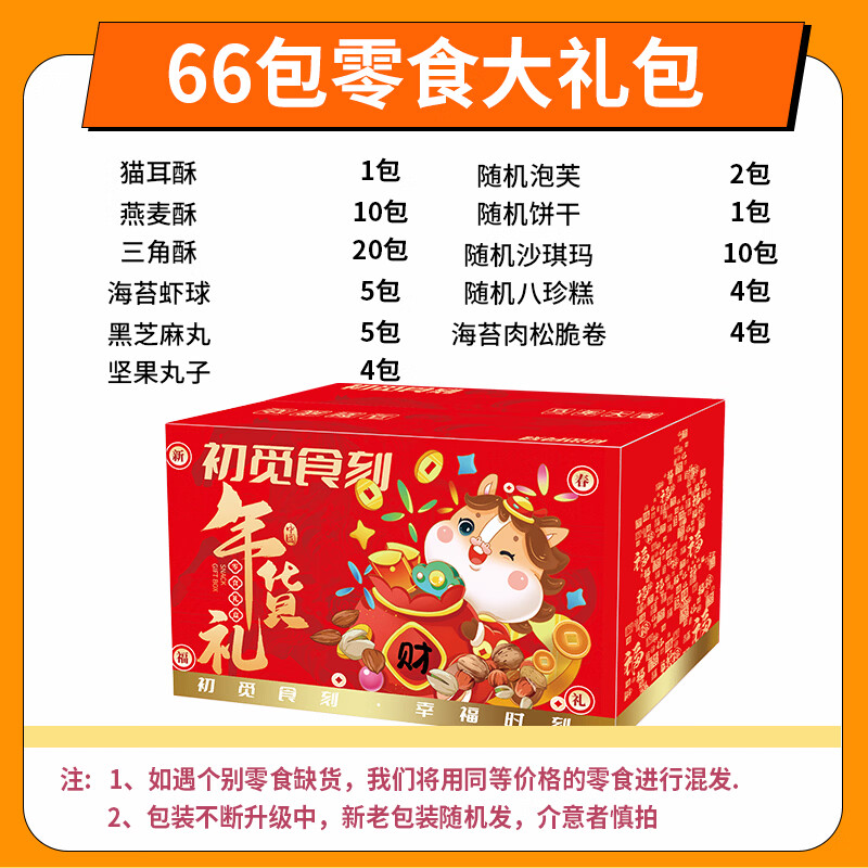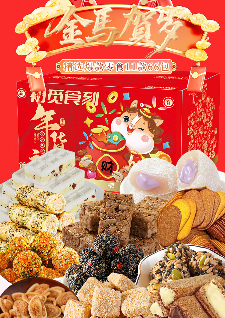 【送礼甄选】【三只松鼠同厂】零食大礼包中式糕点组合年货送礼 【年货礼】11款共66包(每箱约400g) 1箱装