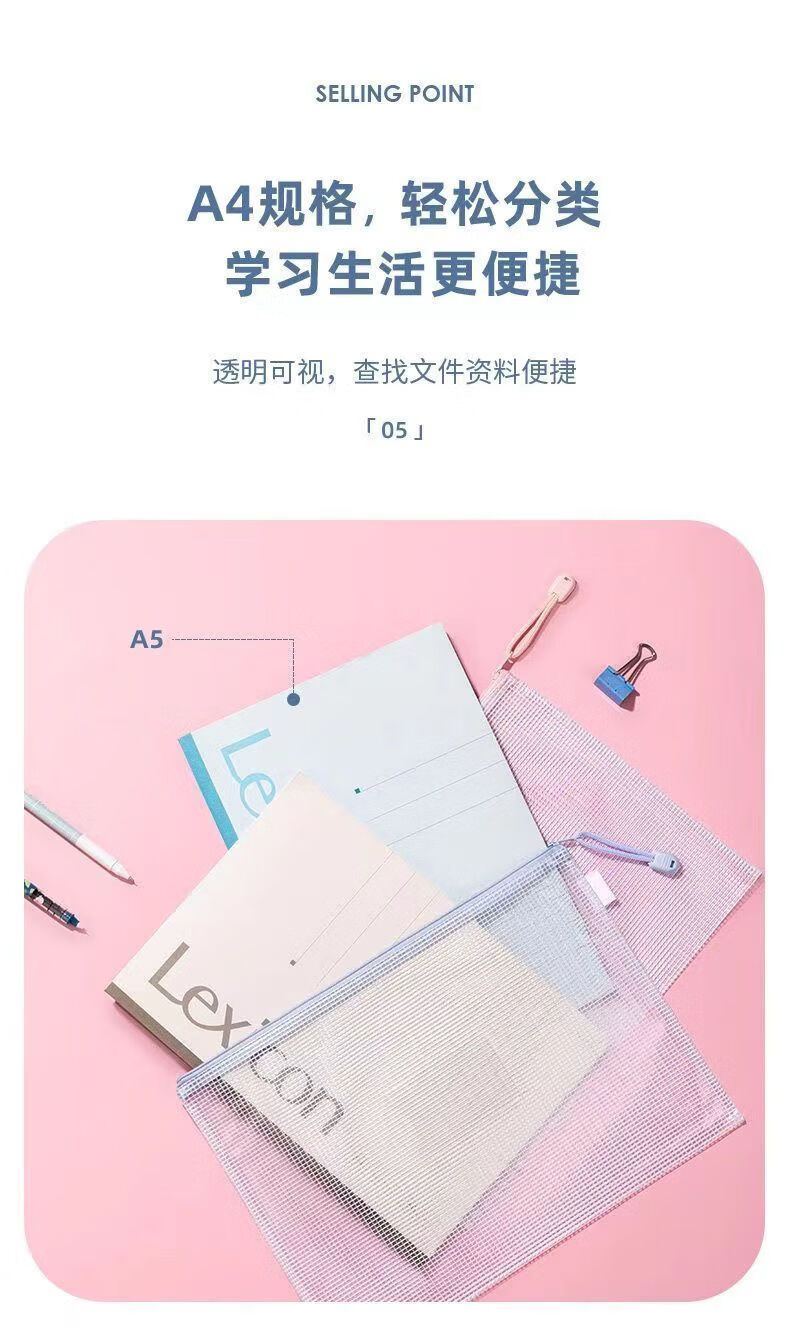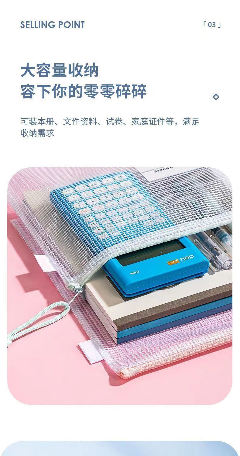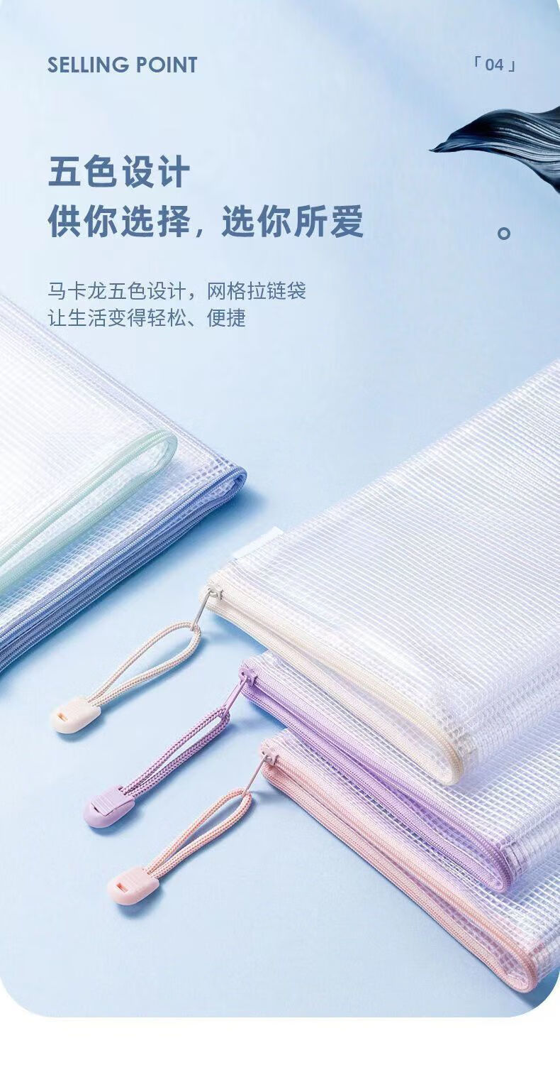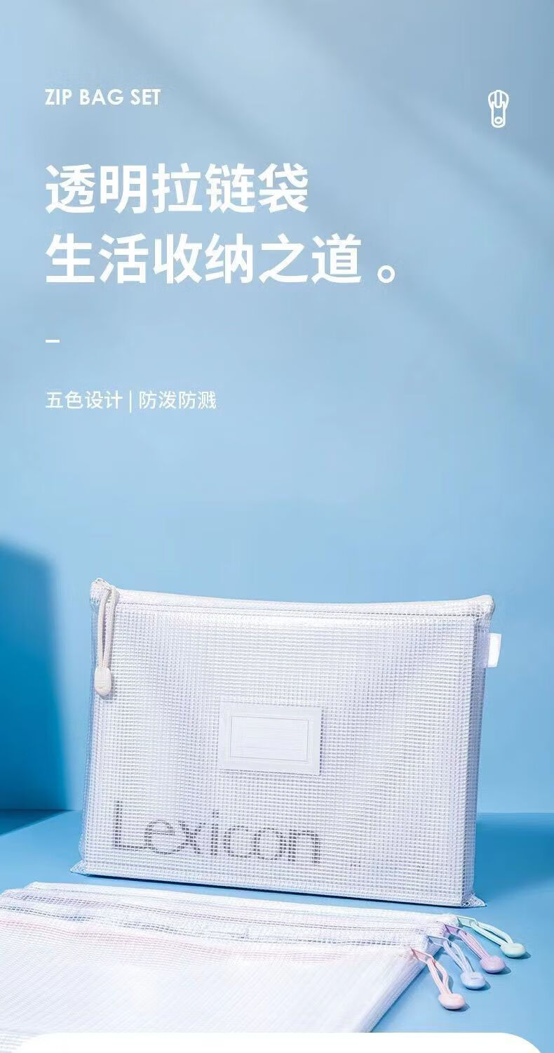a4文件袋拉链式透明考试收纳袋学生大容量资料袋加厚防水资料书袋 套装【升级加厚款】马卡龙色系(5个装)