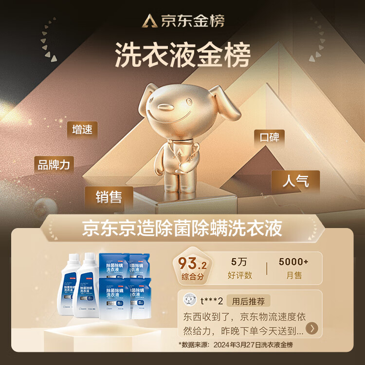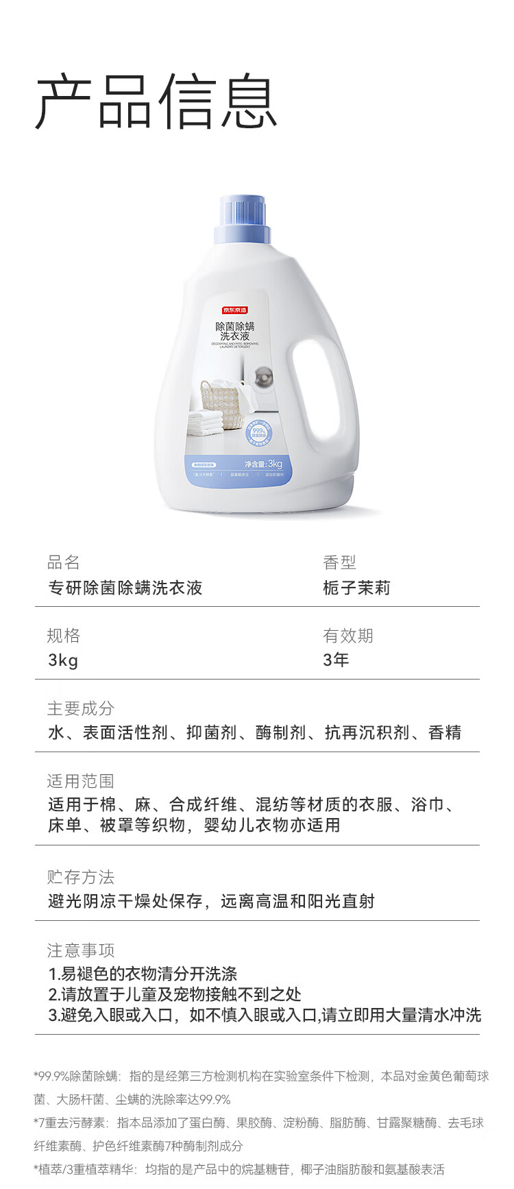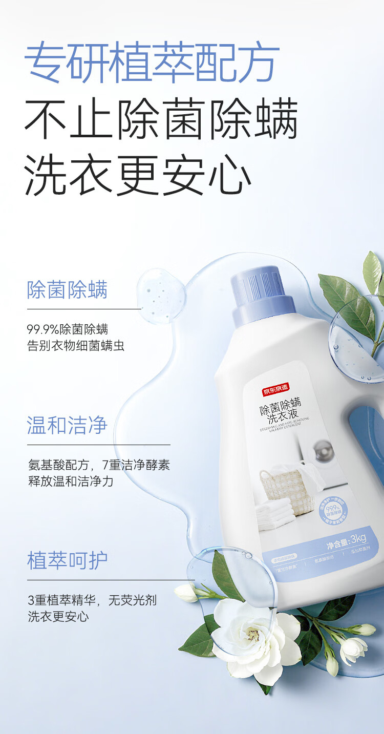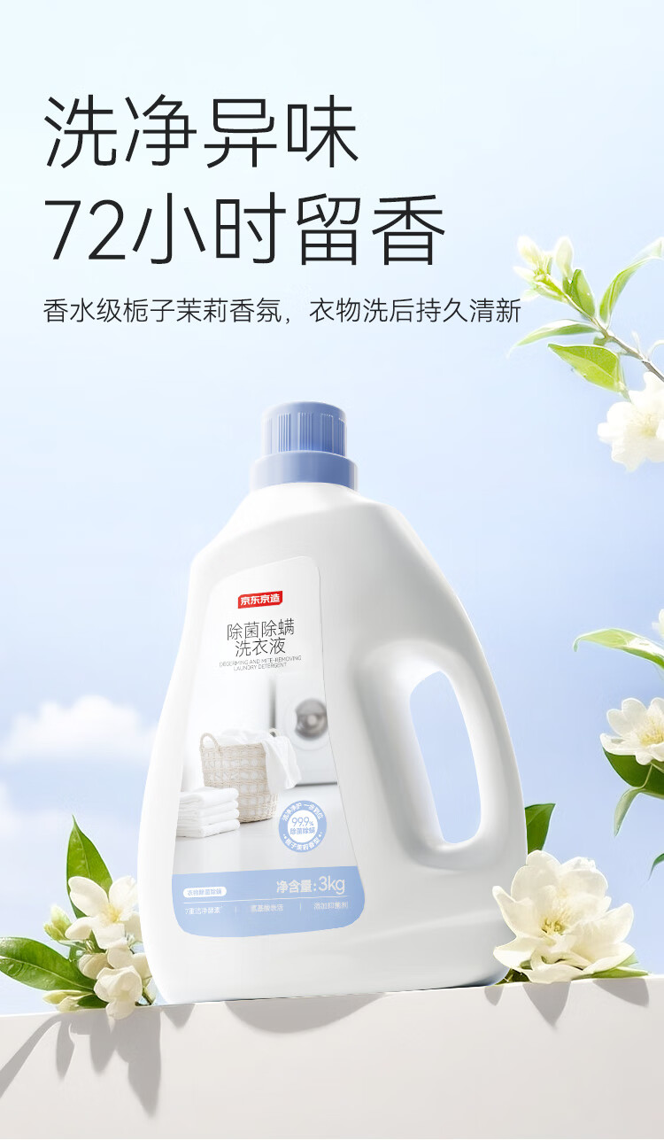京东京造 天然植萃洗衣液20斤(3kg*2瓶+1kg*4袋)除菌除螨99.9% 留香洗衣精