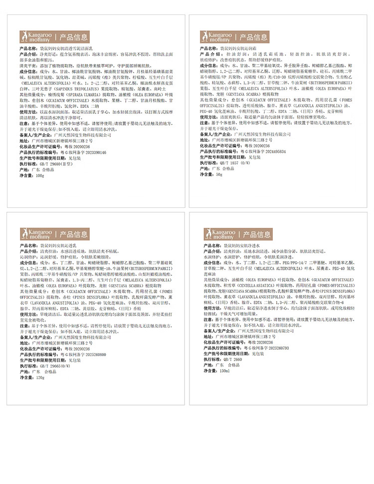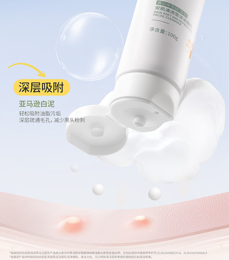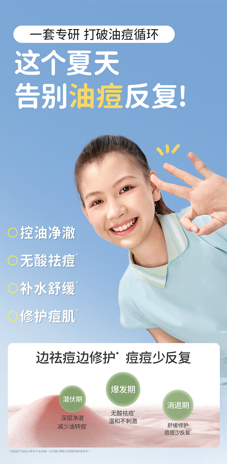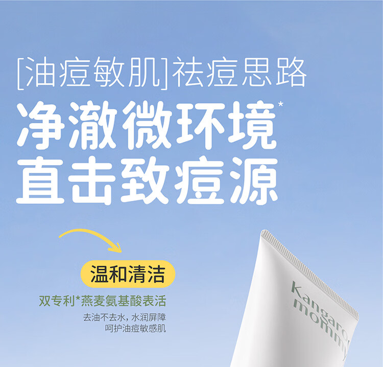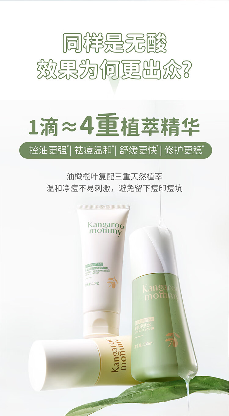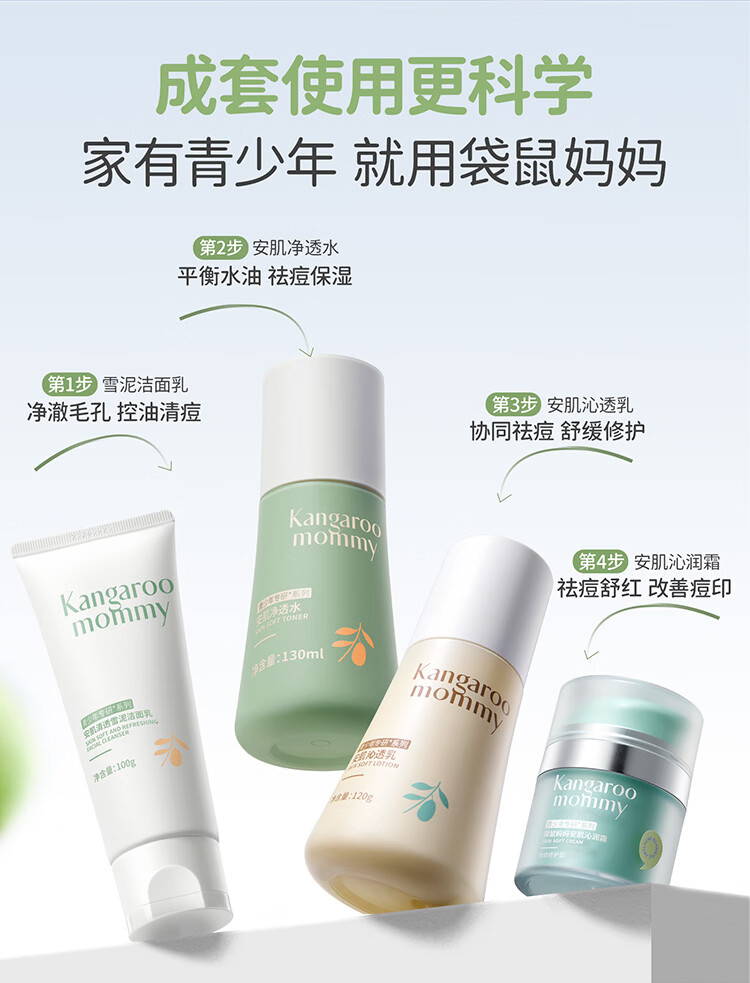 袋鼠妈妈青少年护肤套装 控油祛痘12-18岁青春期洁面水乳+祛痘面霜4件套