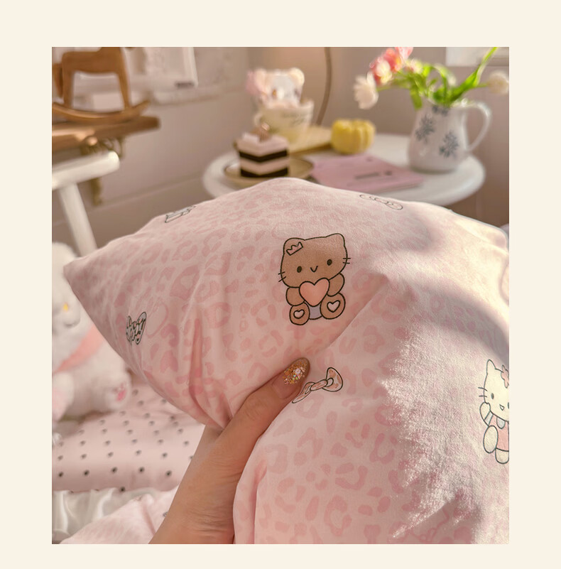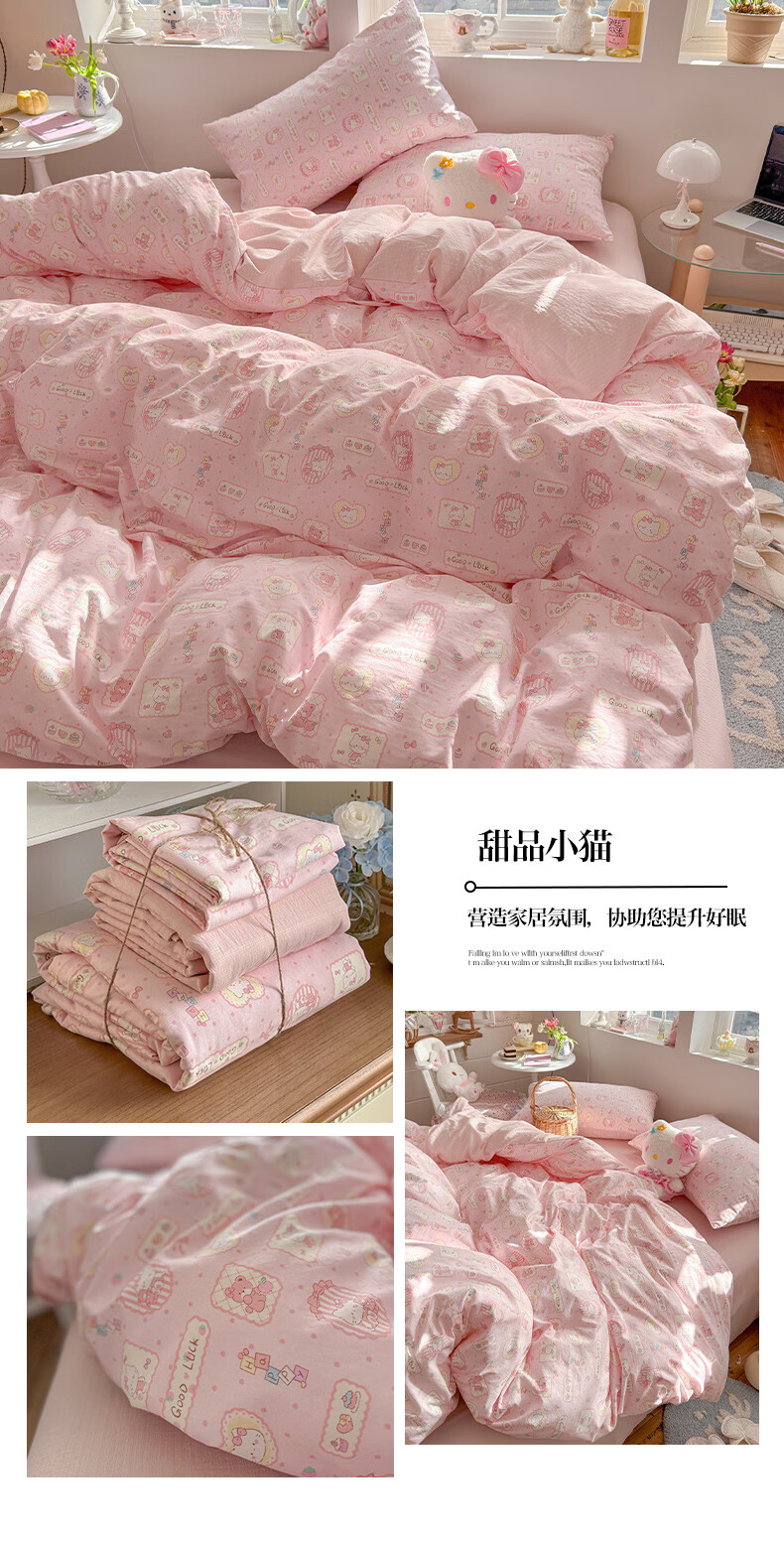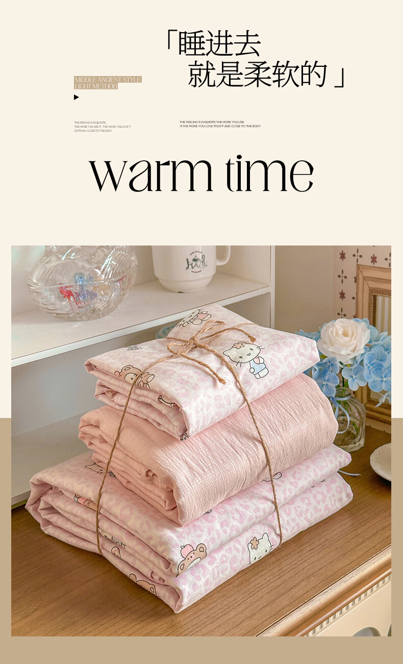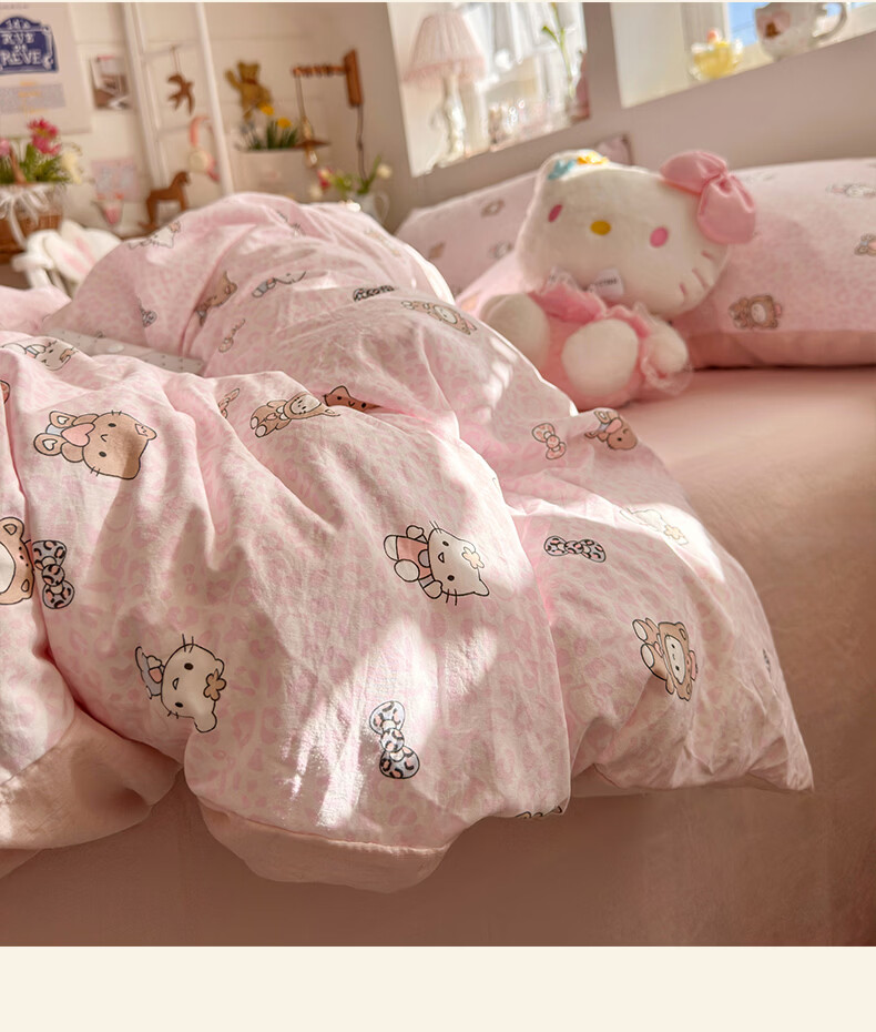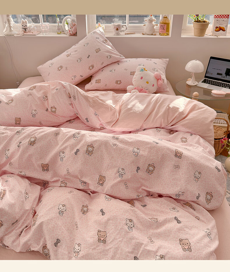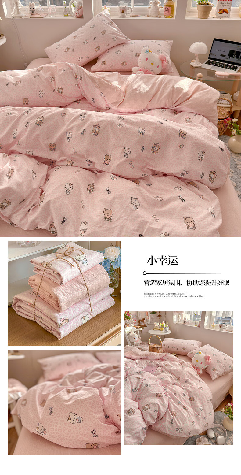 一默四件套2026年A类古法水洗仿棉云感纱被套床单床笠宿舍床上四件套 俏皮豹纹-kt-粉 2.0m床 床单款 (被套200*230cm) 四件套