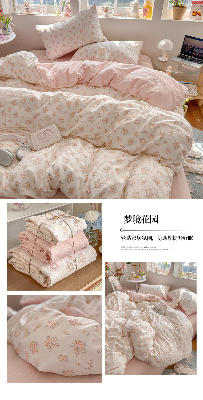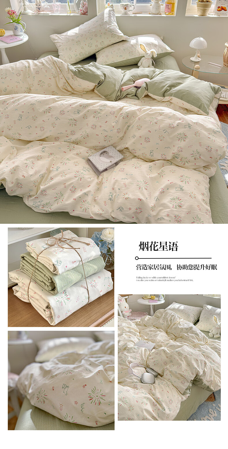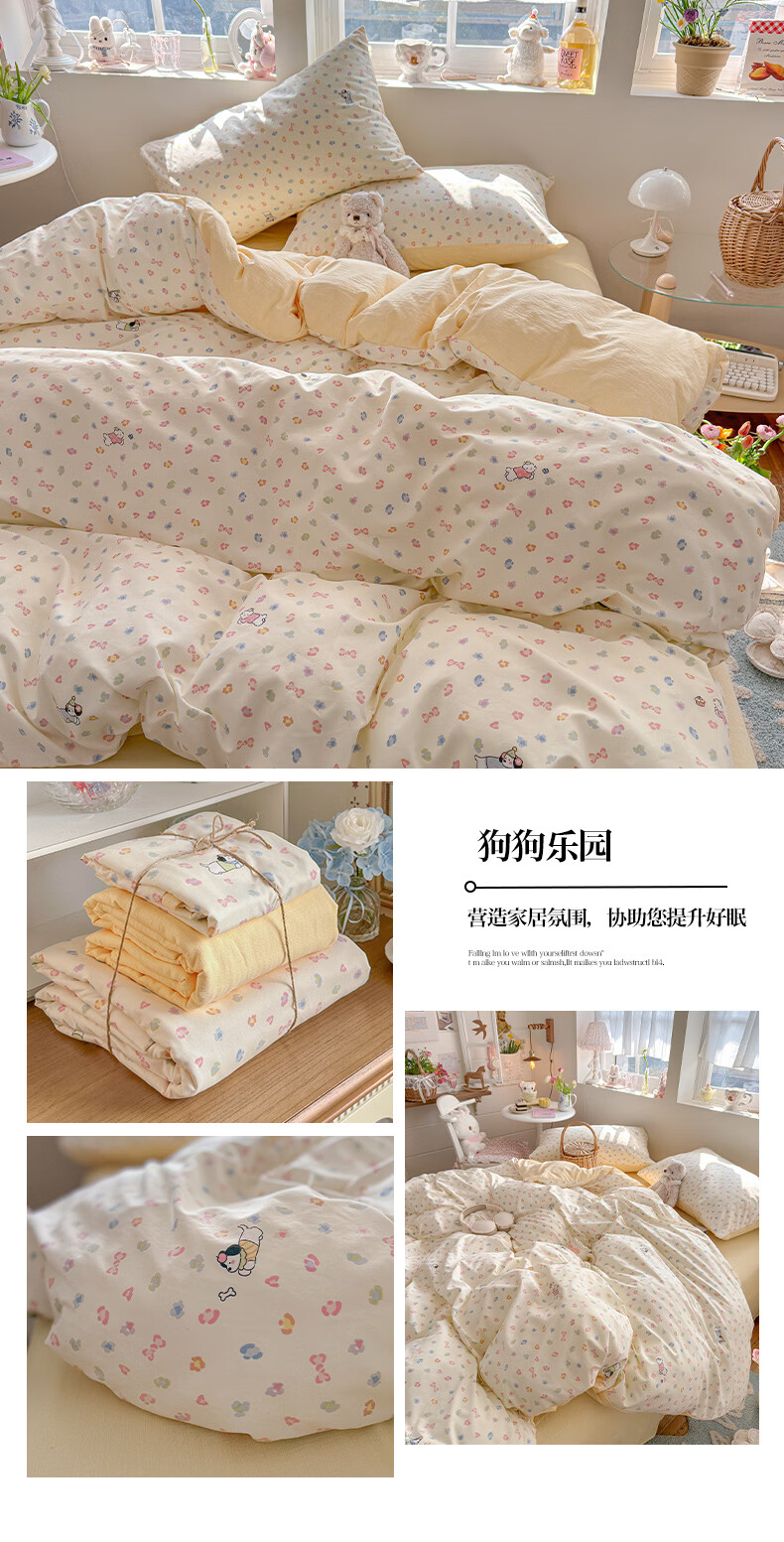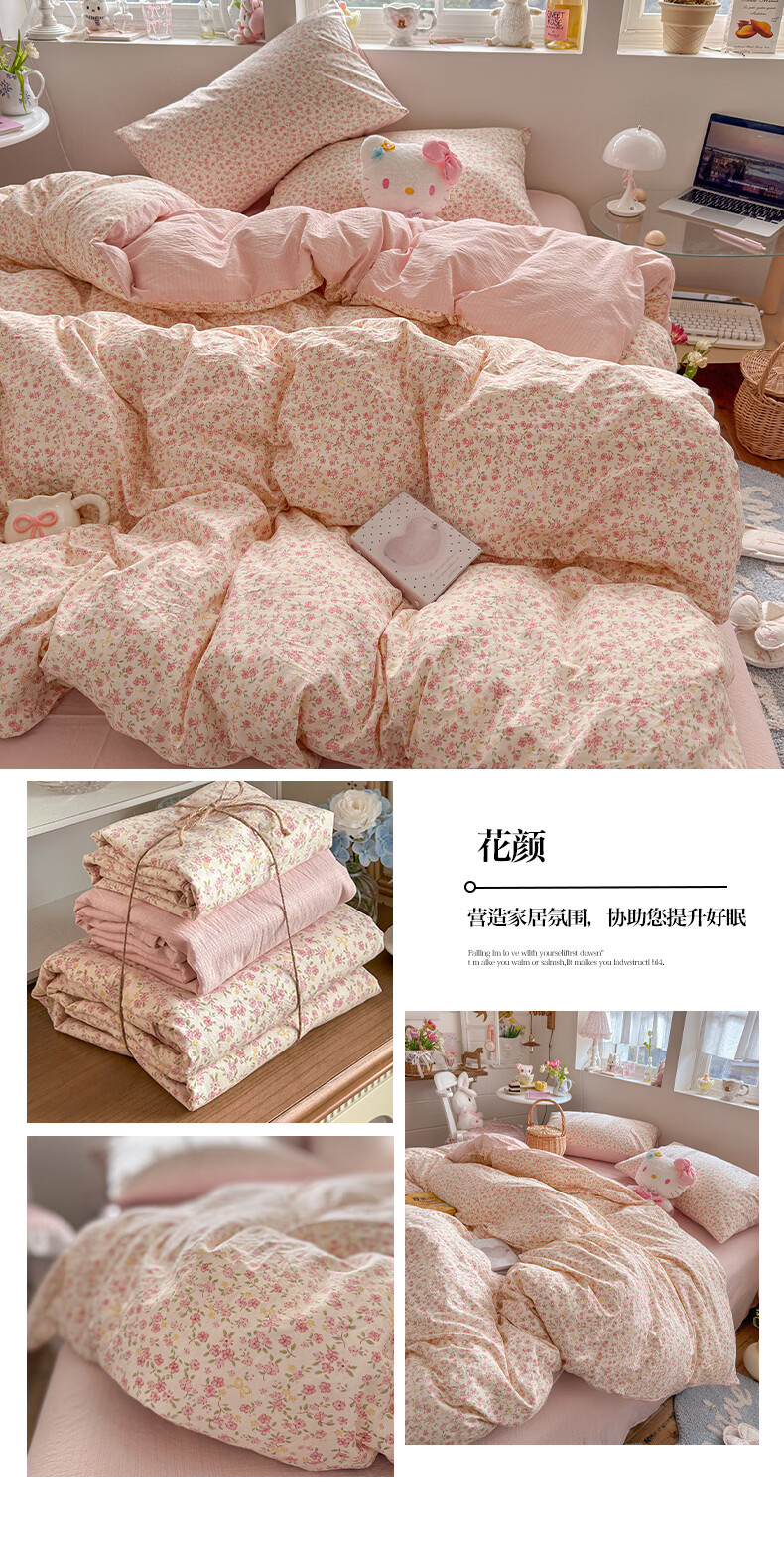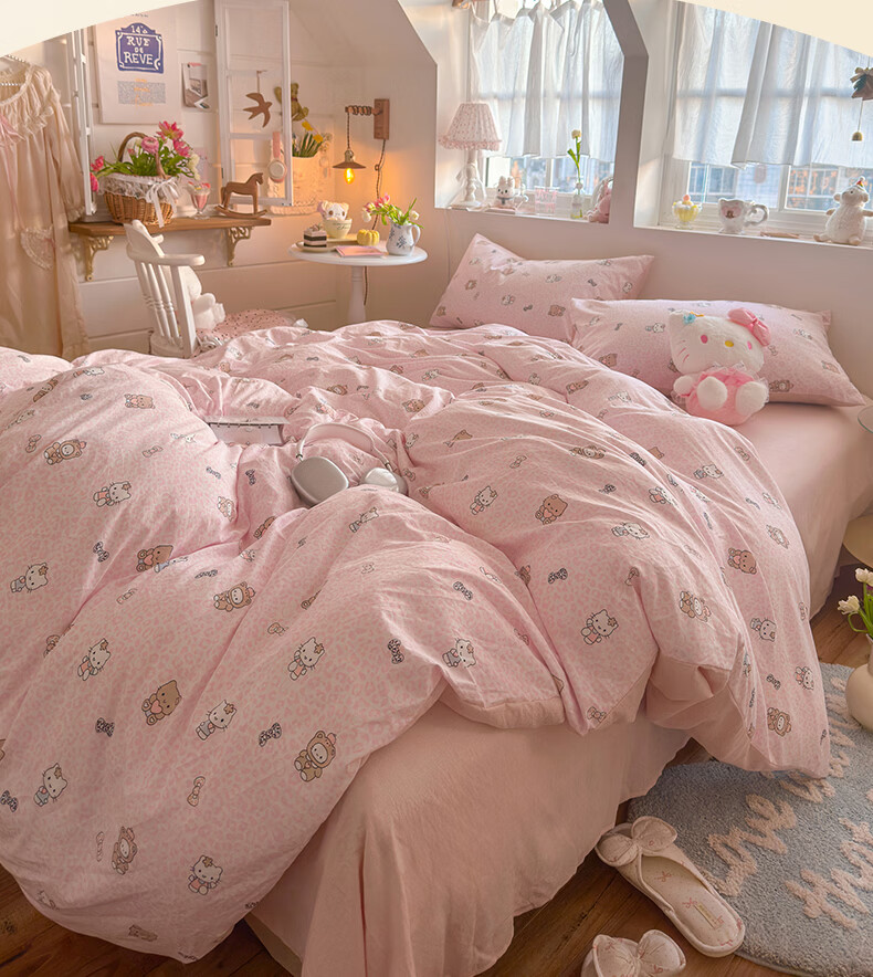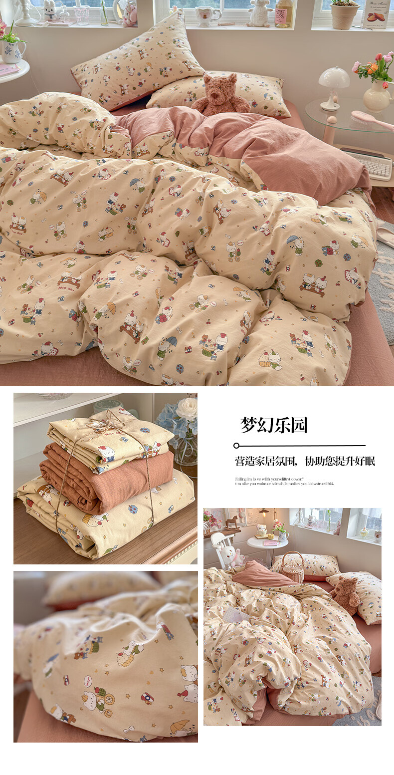 一默四件套2026年A类古法水洗仿棉云感纱被套床单床笠宿舍床上四件套 俏皮豹纹-kt-粉 2.0m床 床单款 (被套200*230cm) 四件套