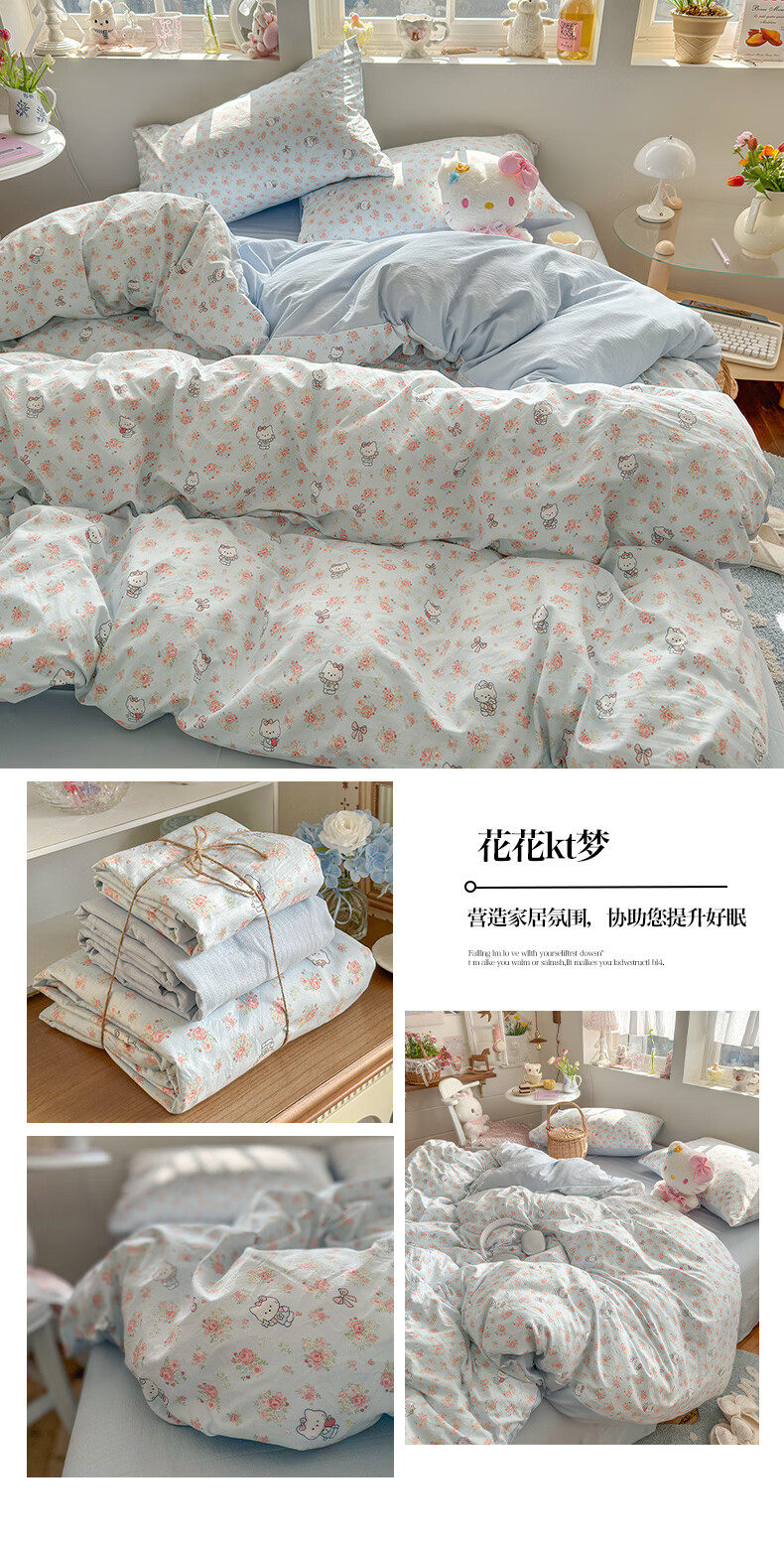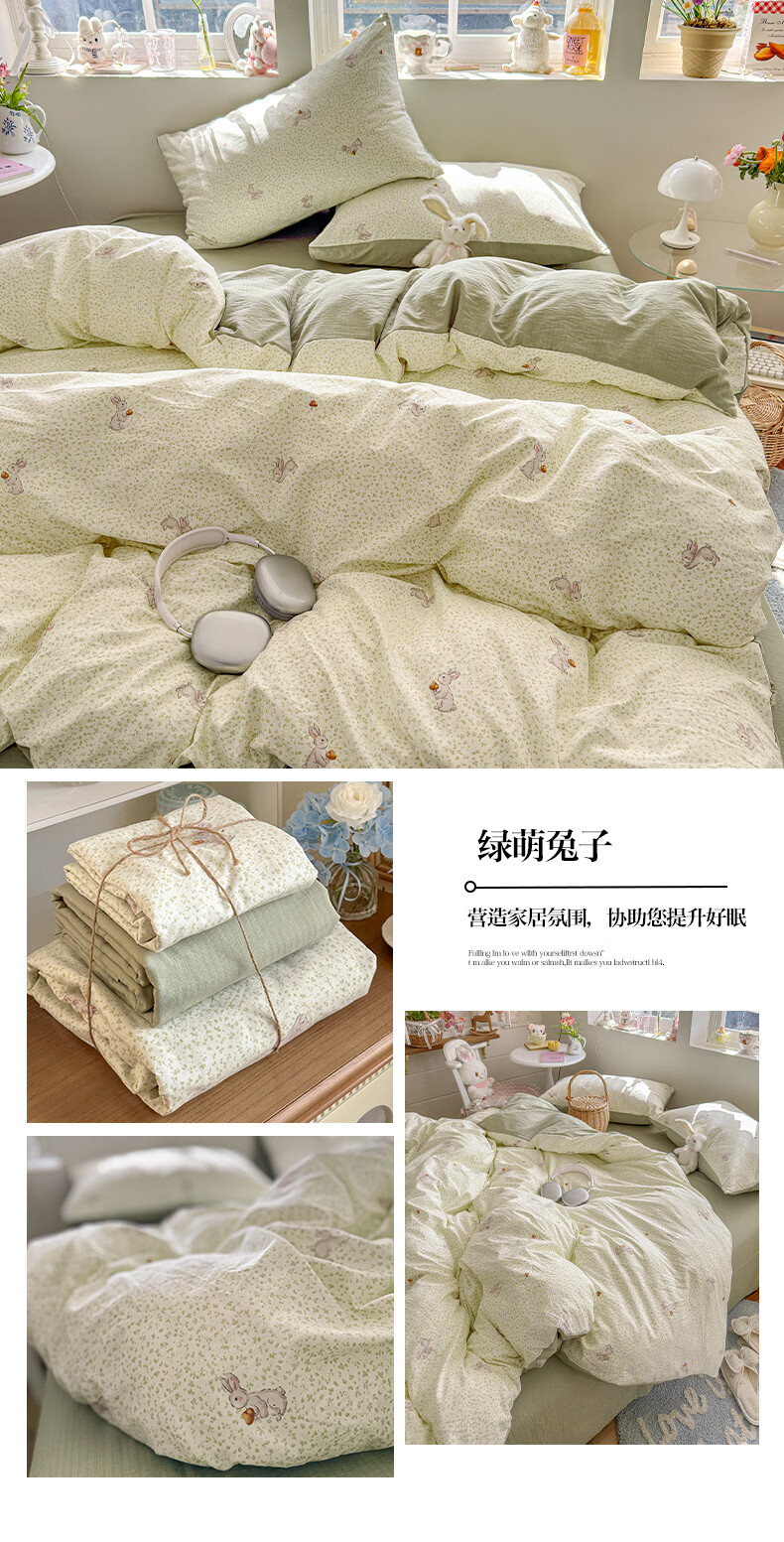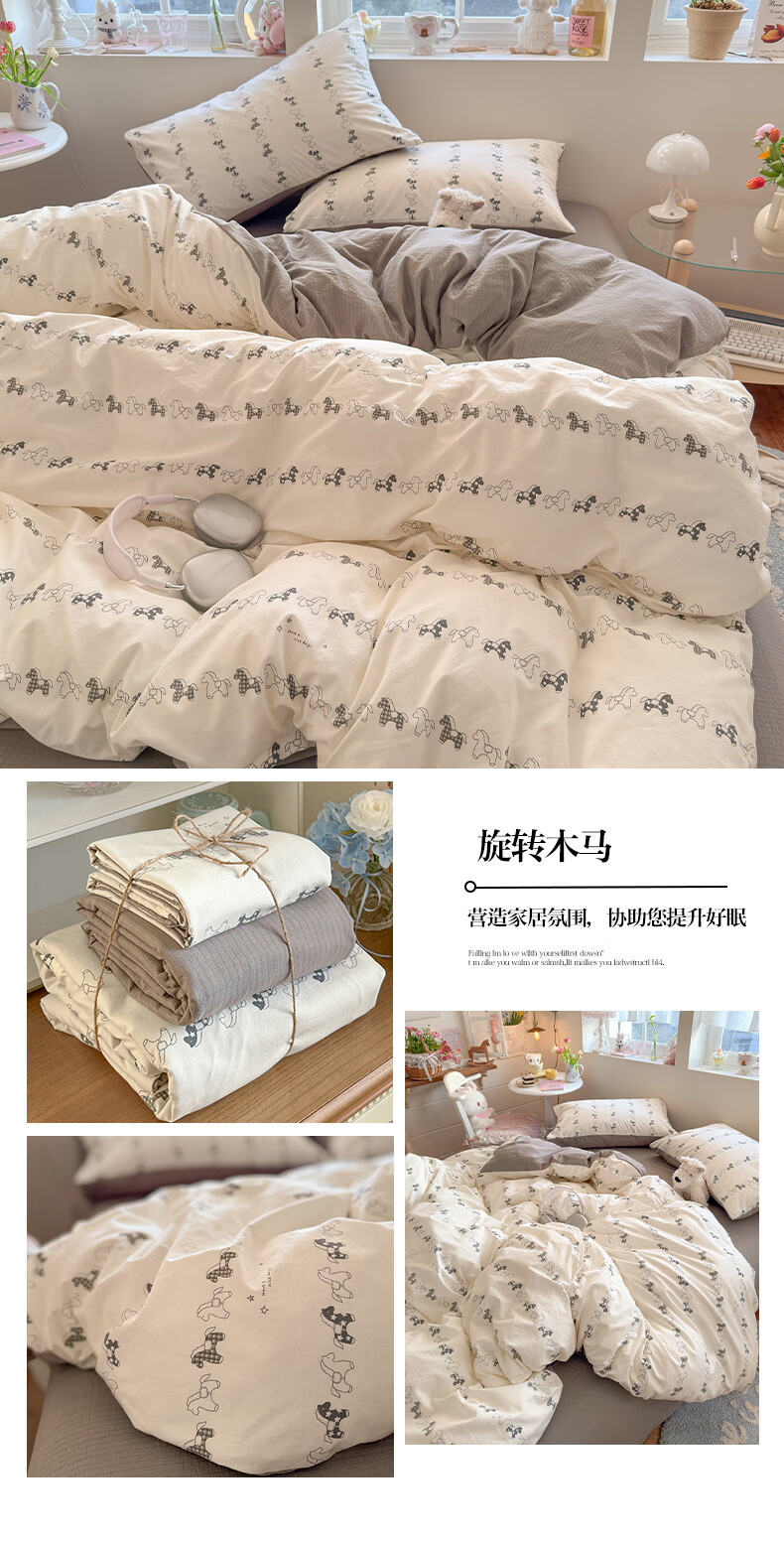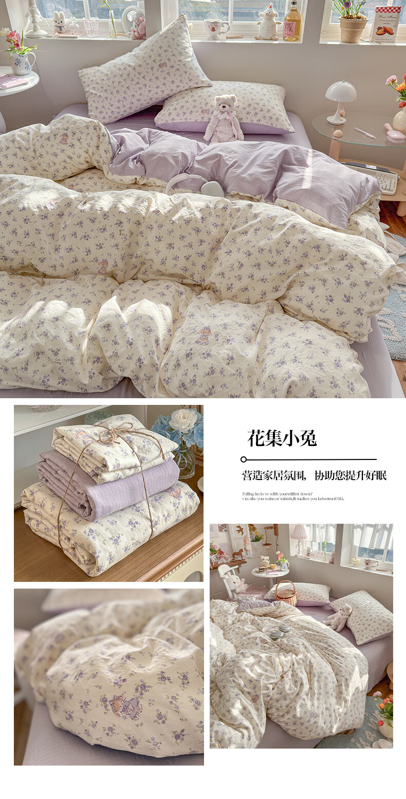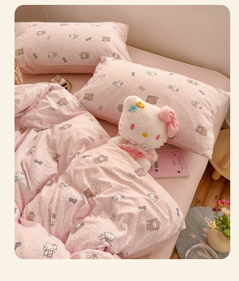 一默四件套2026年A类古法水洗仿棉云感纱被套床单床笠宿舍床上四件套 俏皮豹纹-kt-粉 2.0m床 床单款 (被套200*230cm) 四件套