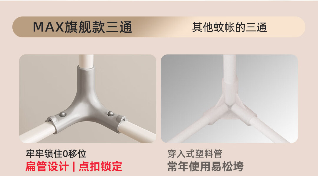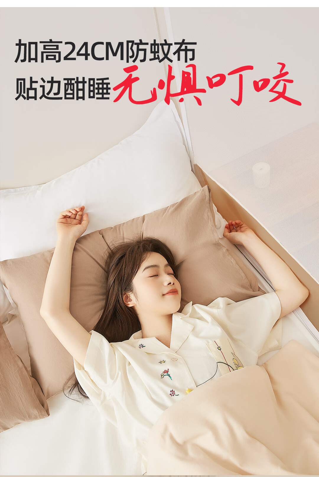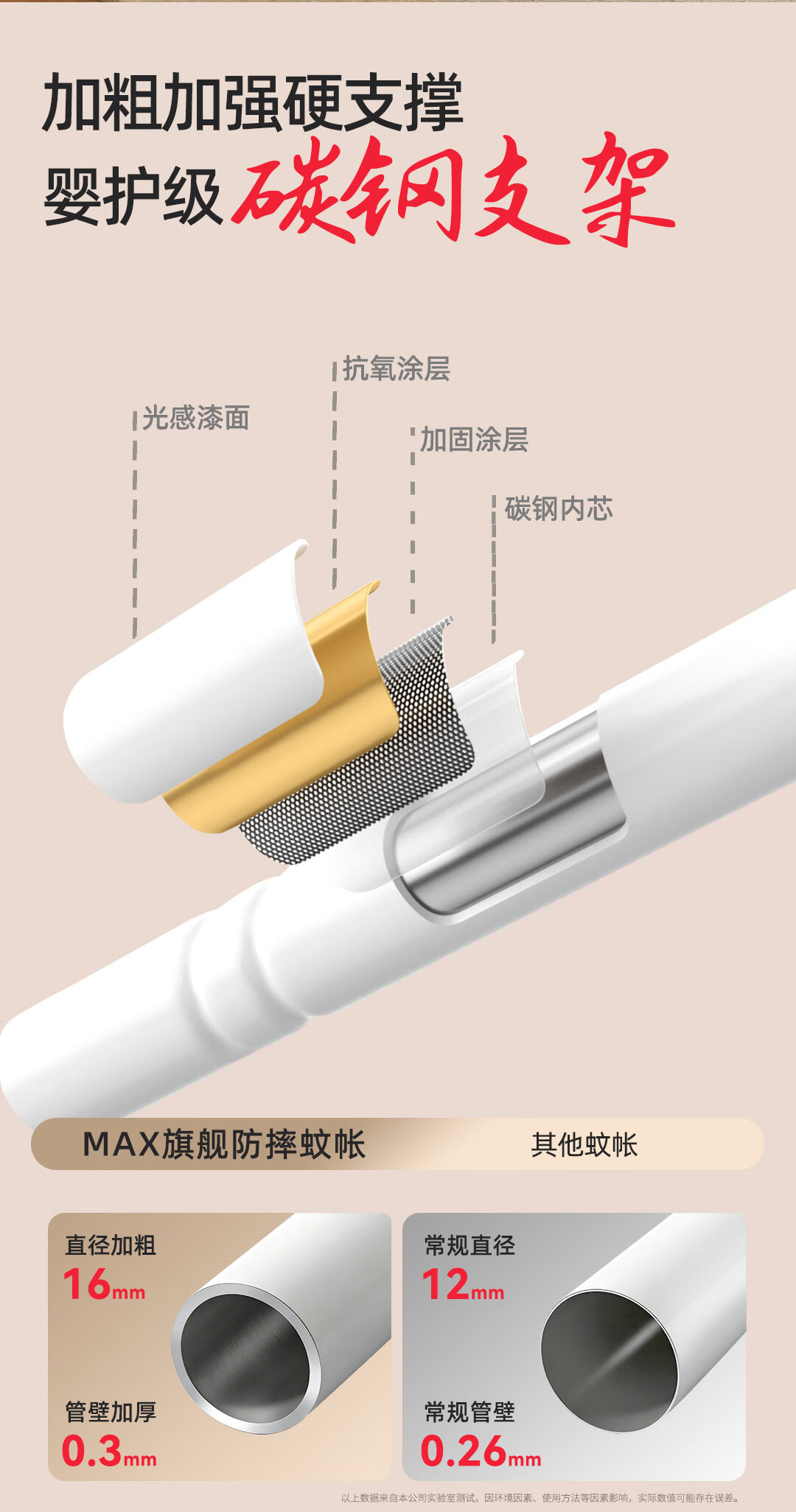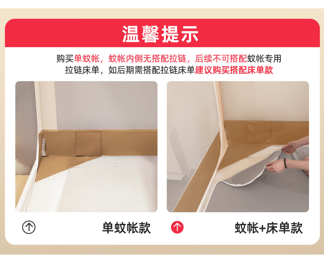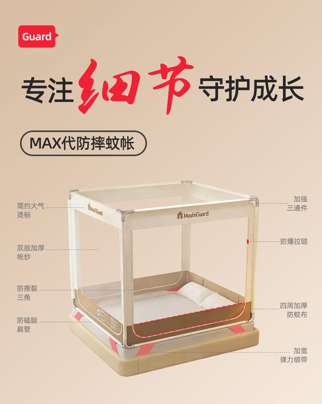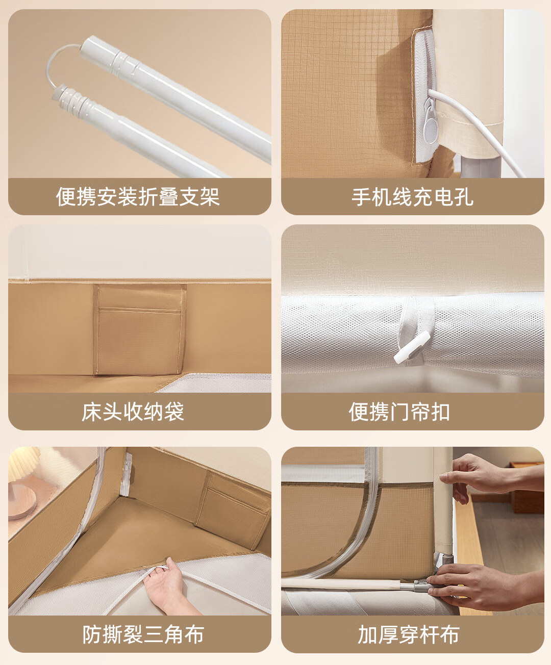 高睿2026新款防摔蚊帐婴儿防止掉床新型稳固支架家用卧室母婴回底坐床 米咖色+绑带【7A级抗菌帐纱】升级防摔蚊帐+防尘顶 适用1.8*2.0m床【大力士三通-免拼接支架】