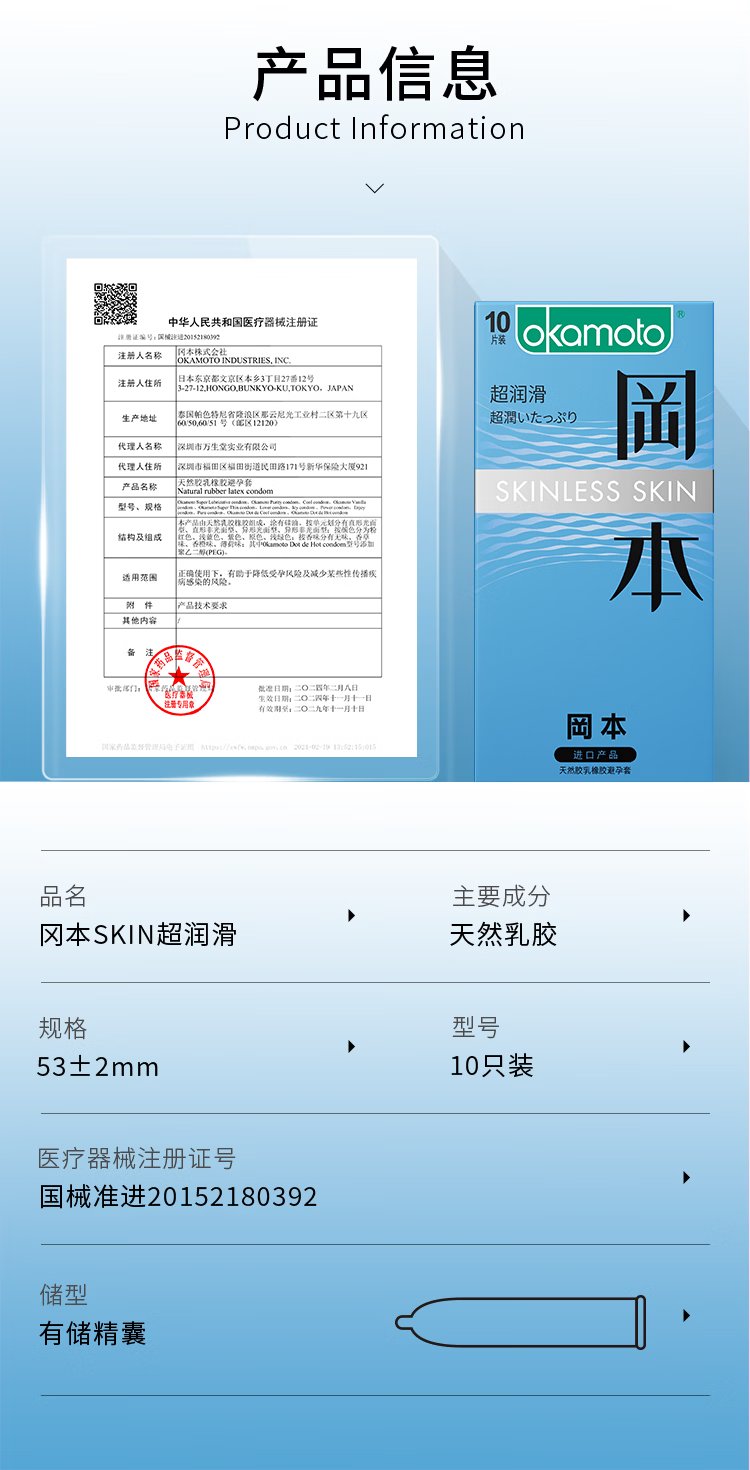 冈本(OKAMOTO)避孕套 skin超薄润滑肤感安全套套成人计生用品 双重愉悦【共30片】无感裸入亲密体验