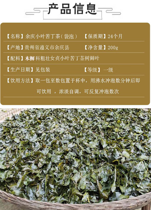 得青山5包 贵州特产得青山余庆小叶苦丁茶 袋泡茶 一级200g/包 200g*5袋 五大袋