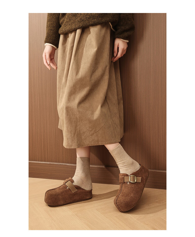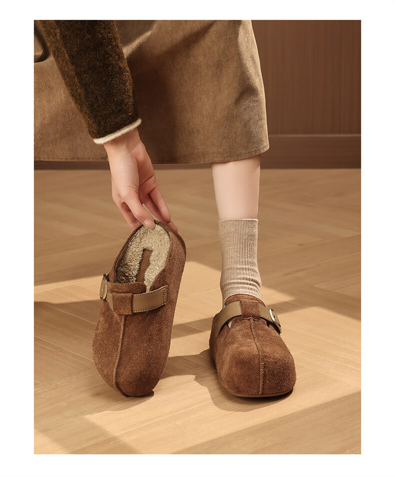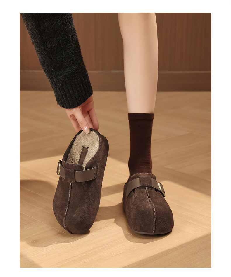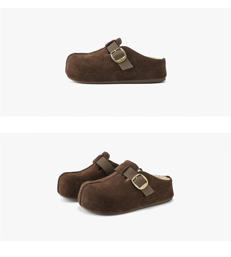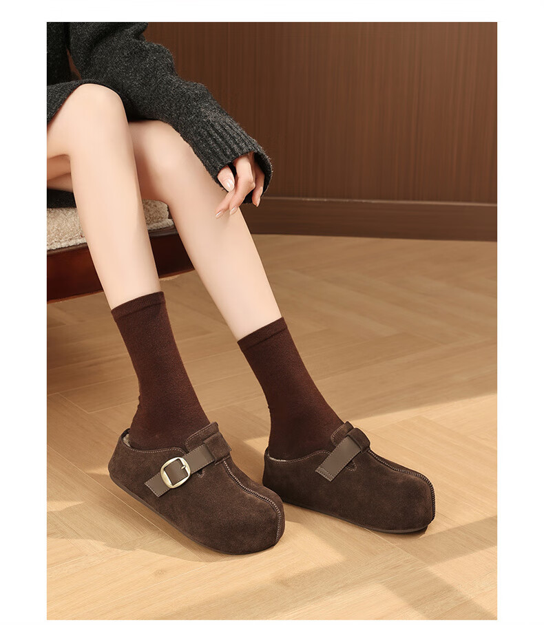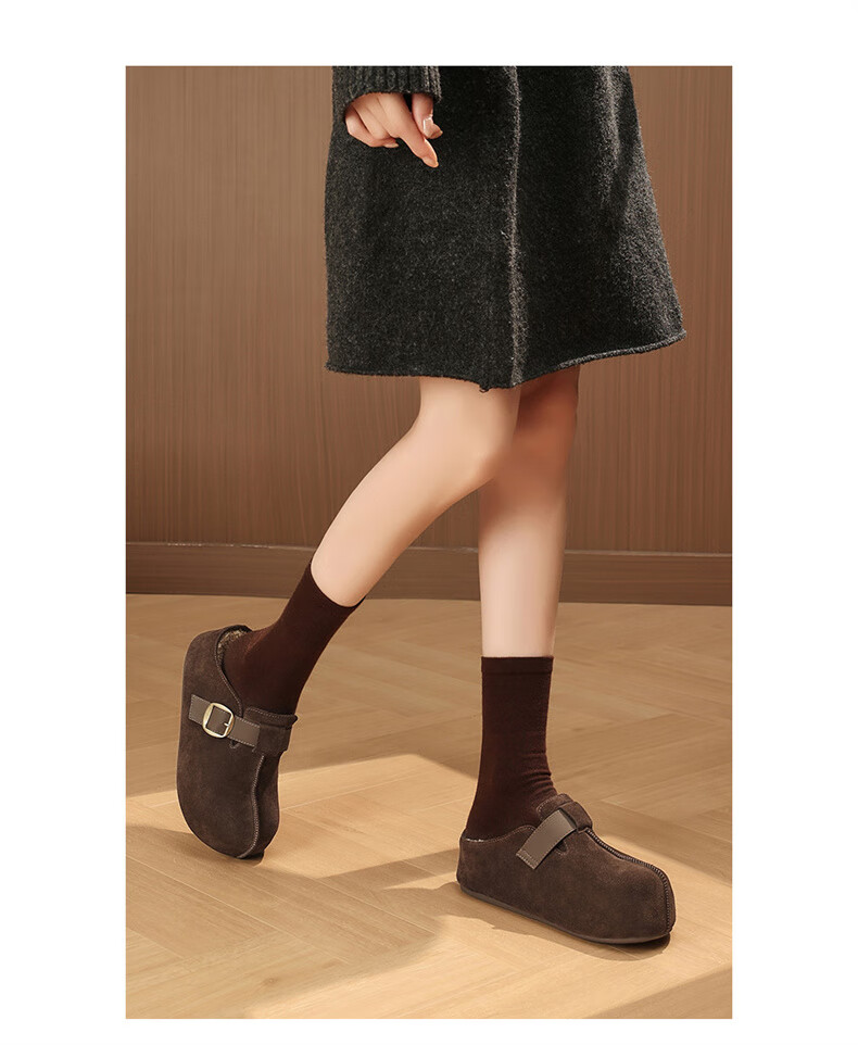 妙丽勃肯鞋女厚底复古加绒时尚保暖潮流2025冬季新款包头半拖鞋 咖色 37 (235mm) 标准码