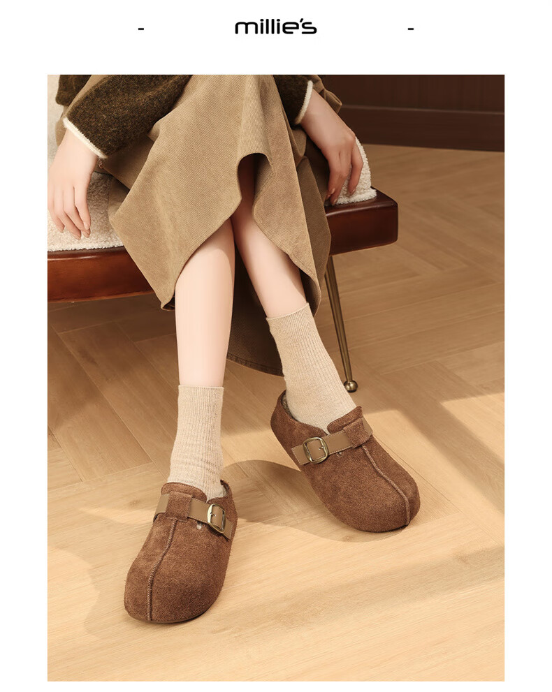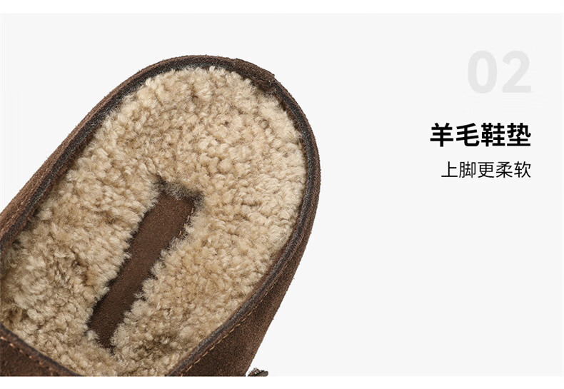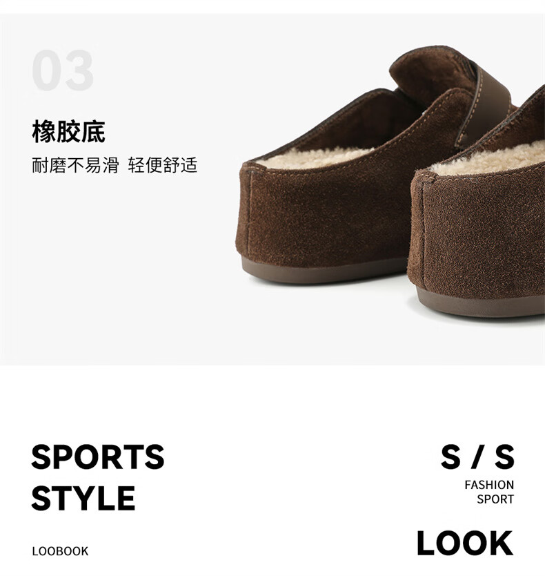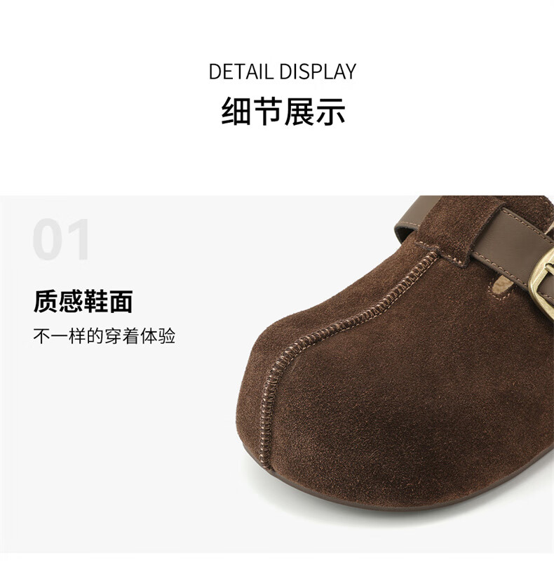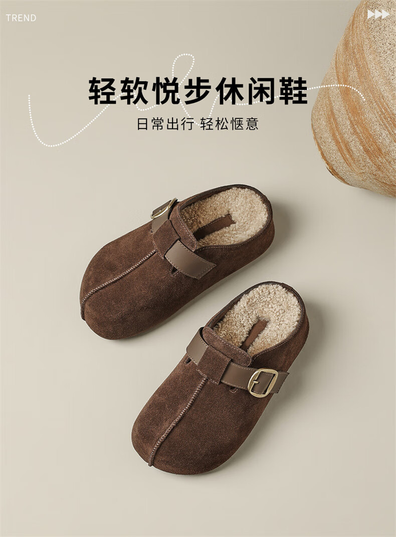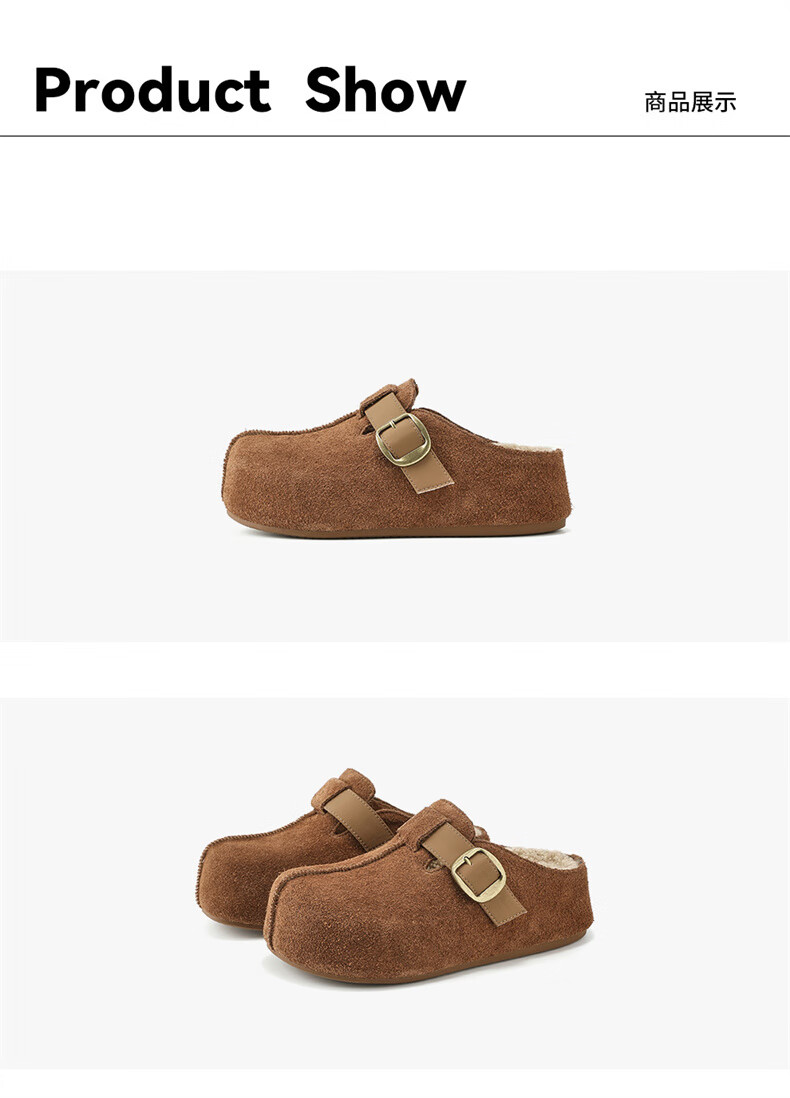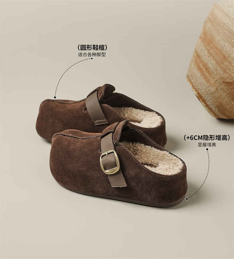 妙丽勃肯鞋女厚底复古加绒时尚保暖潮流2025冬季新款包头半拖鞋 咖色 37 (235mm) 标准码