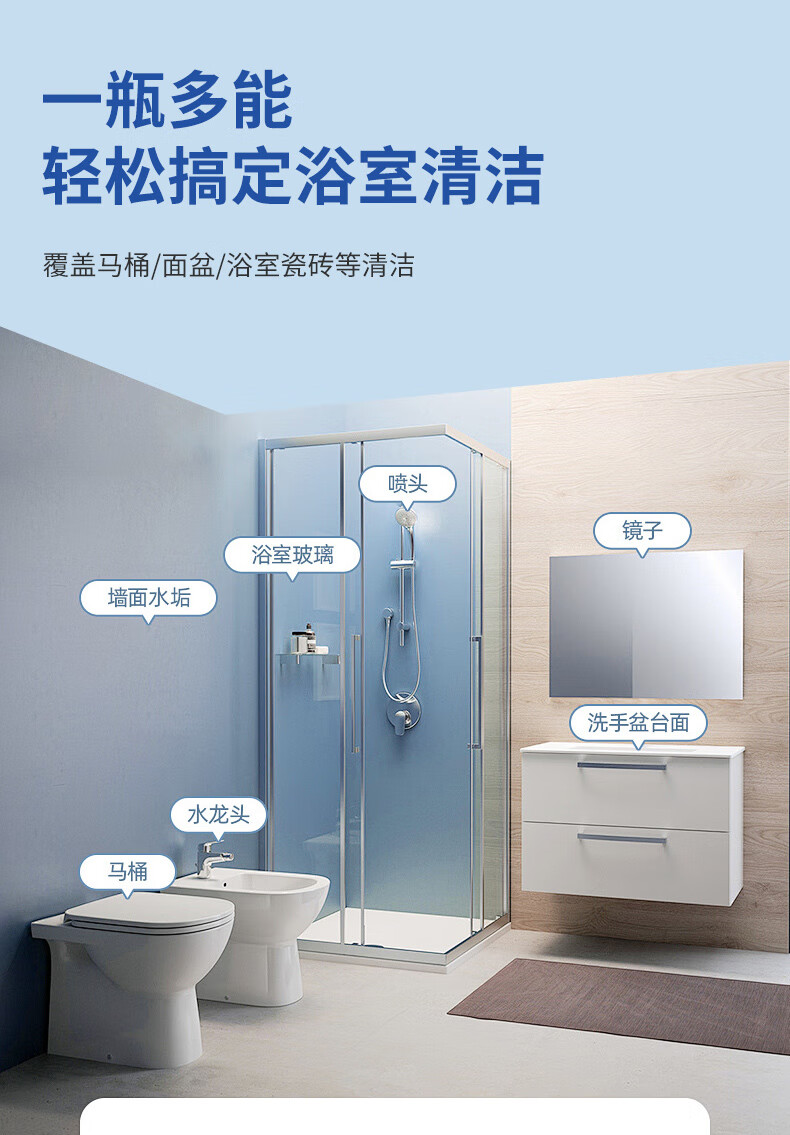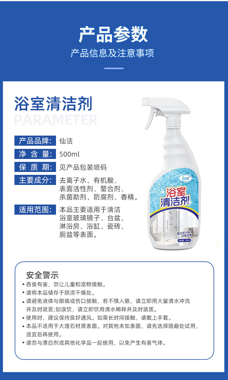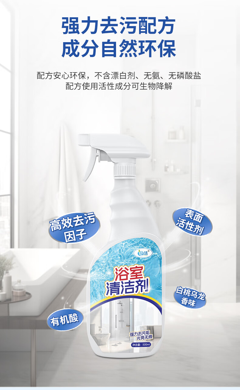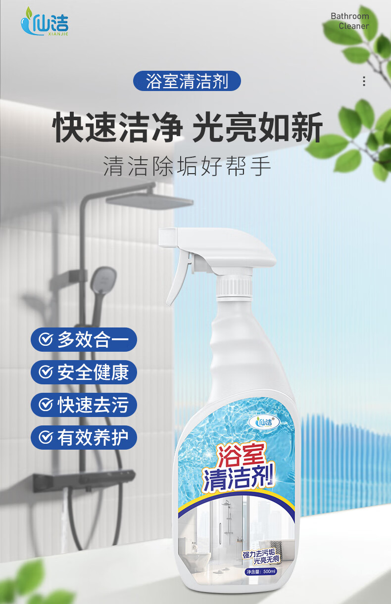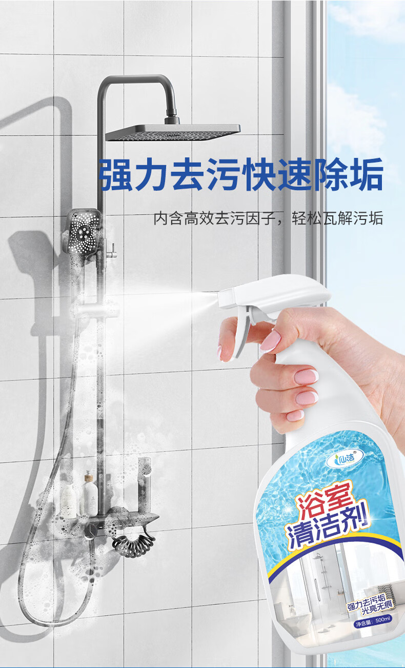 仙洁 浴室清洁剂瓷砖玻璃除水垢渍卫生间龙头清洗剂地砖强力去污抑菌 浴室清洁剂500ml*2