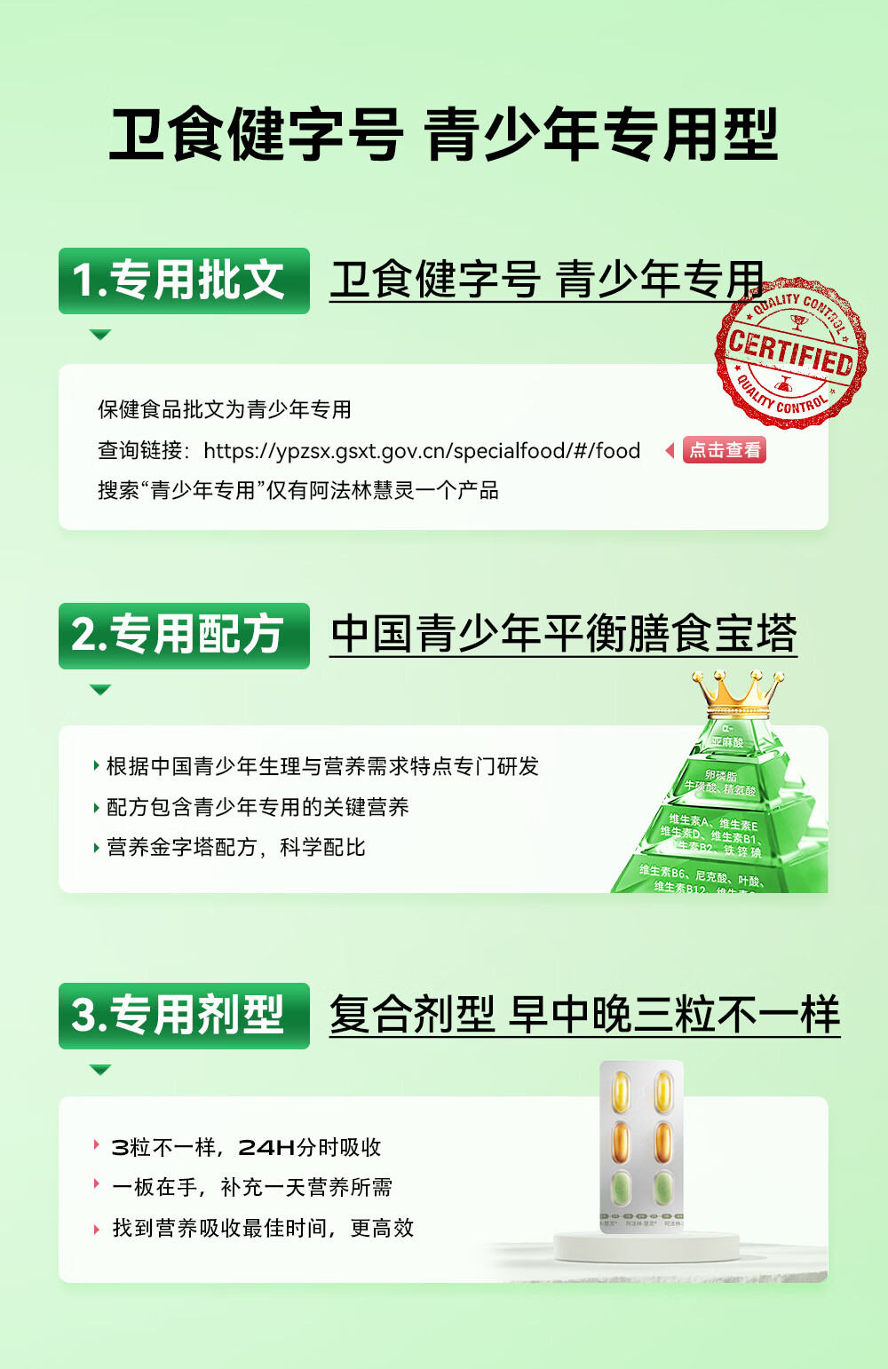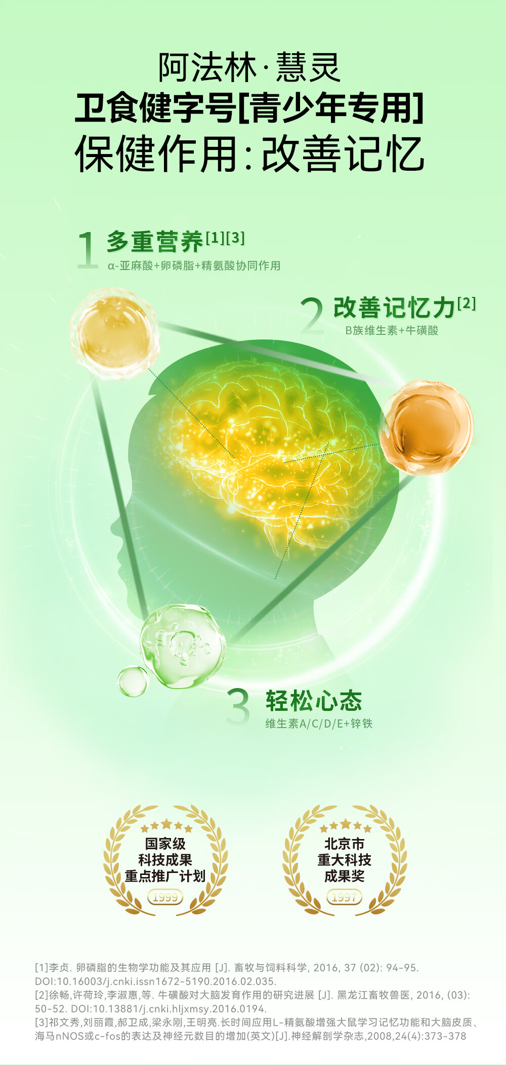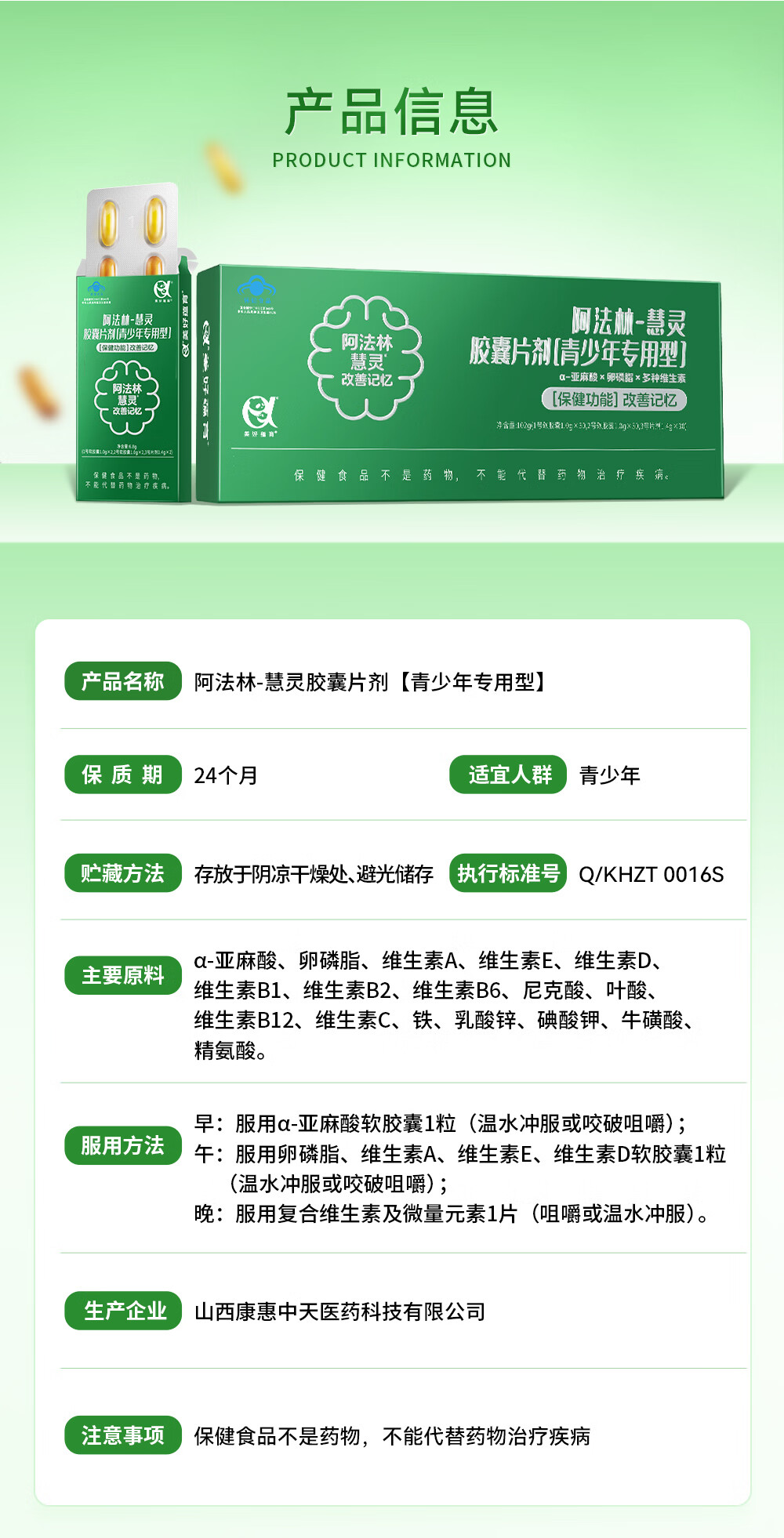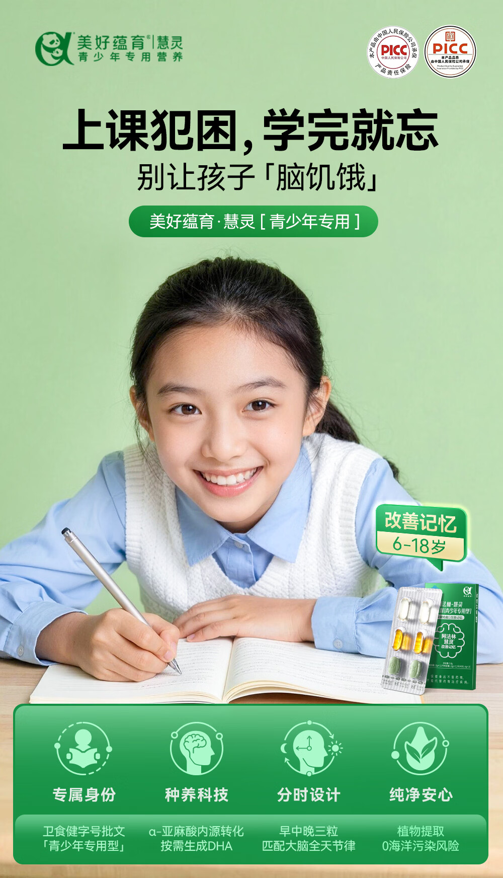 美好蕴育慧灵dha补脑改善记忆力学生青少年6-18岁学习备考考试营养补充品 1盒