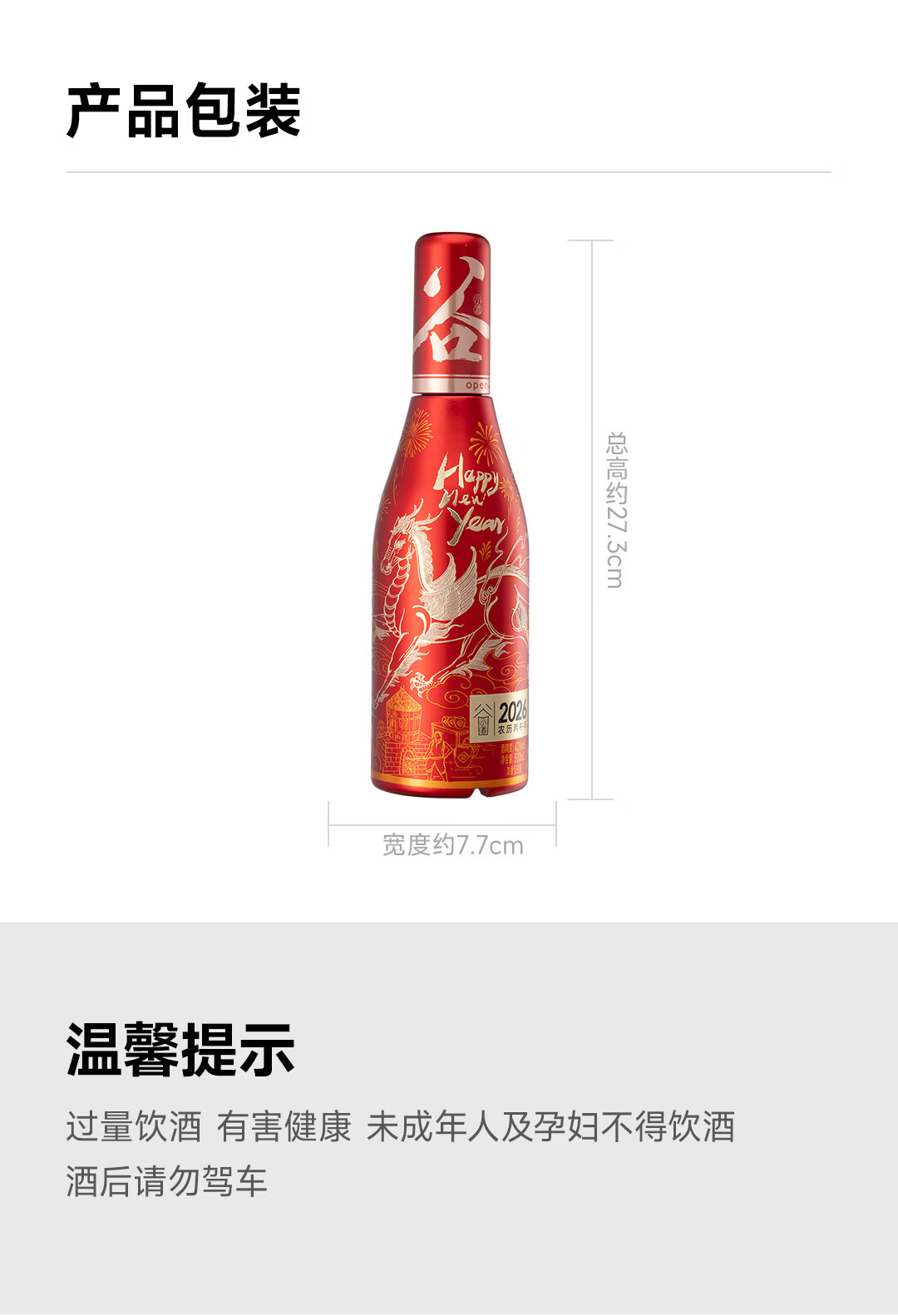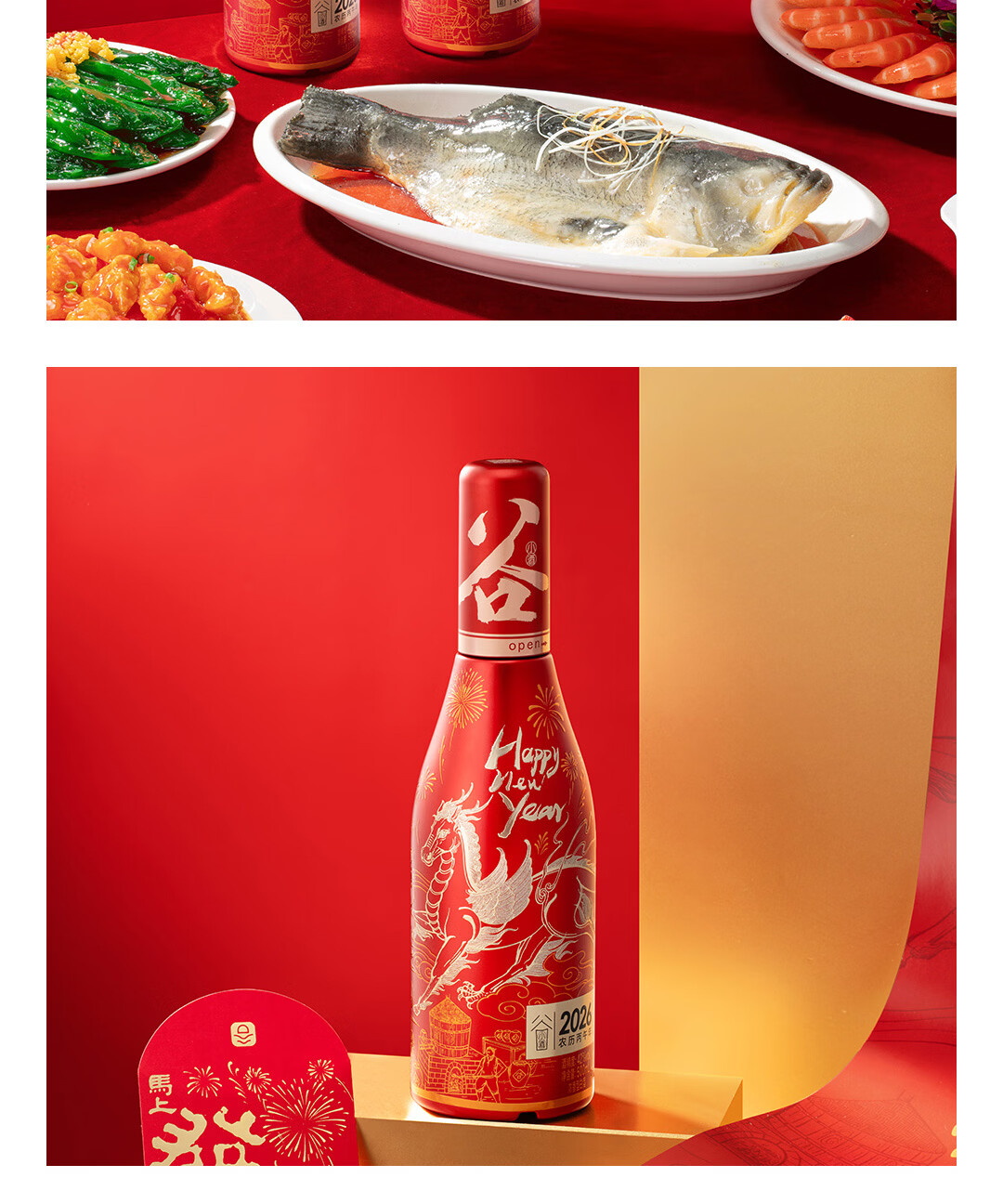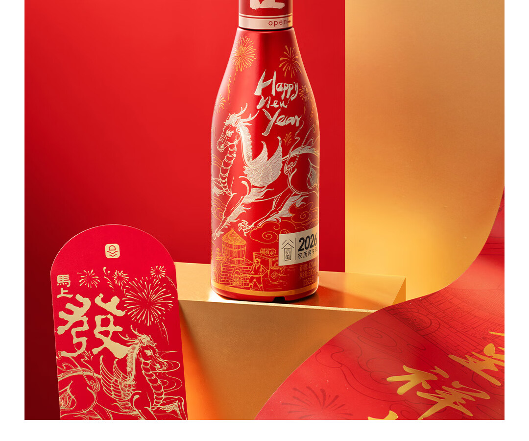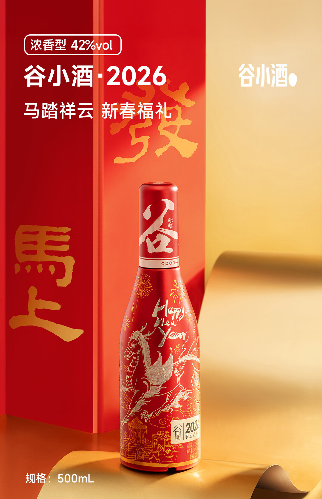 谷小酒2026马年生肖酒 42度浓香型 500ml*1瓶 新春酒礼品浮雕祥文收藏酒 42度 500mL 1瓶 【2026马年限定】双瓶送礼袋