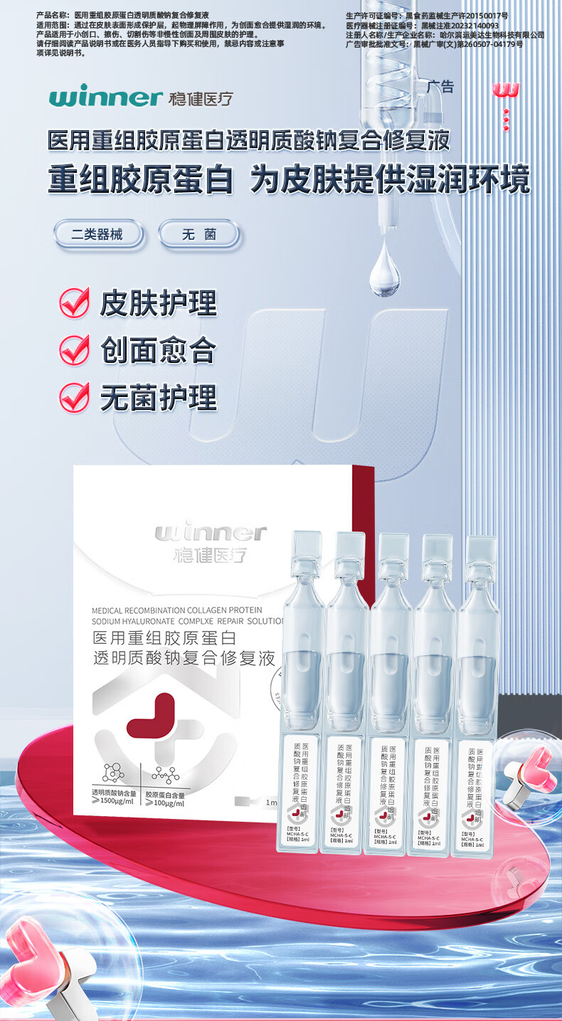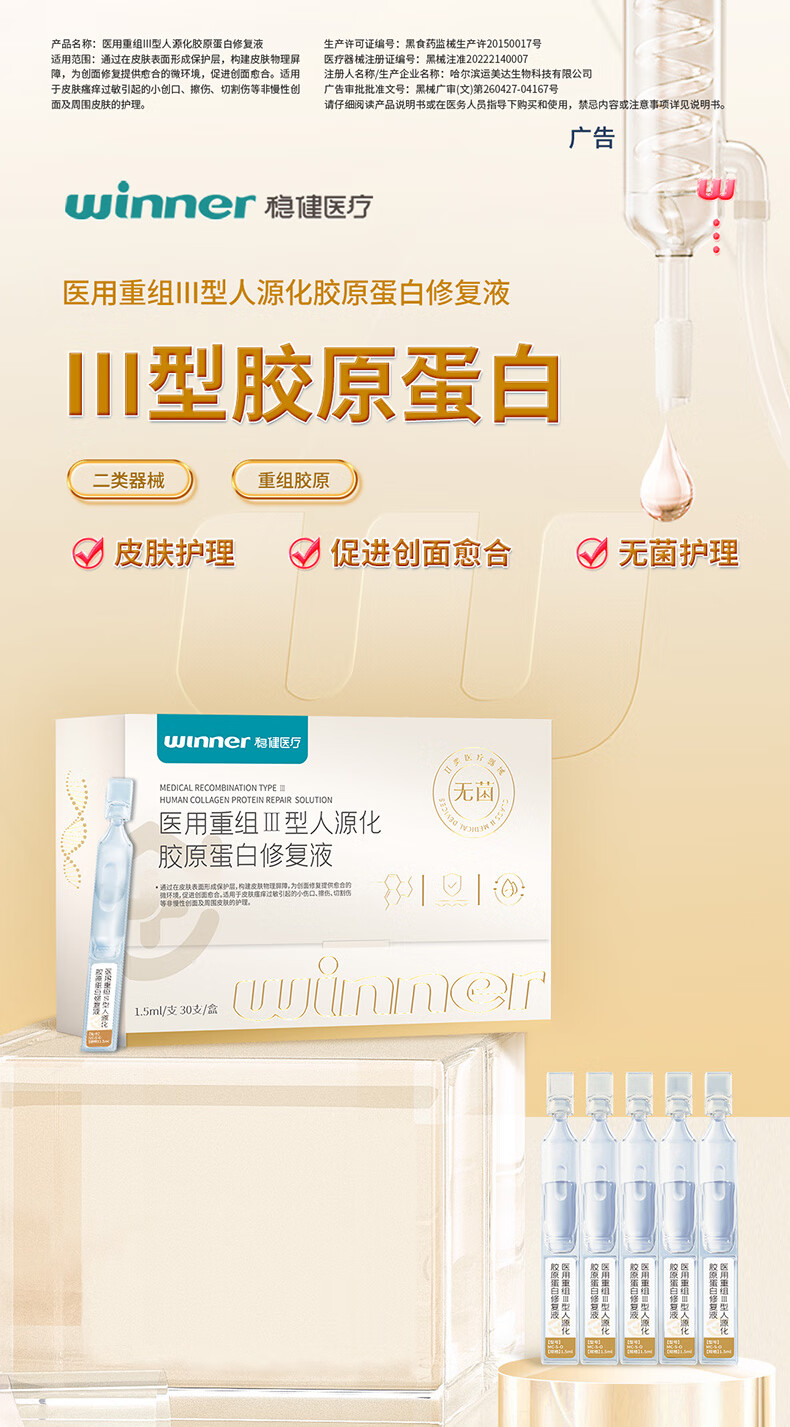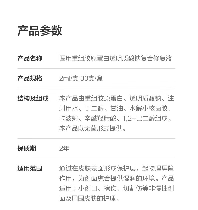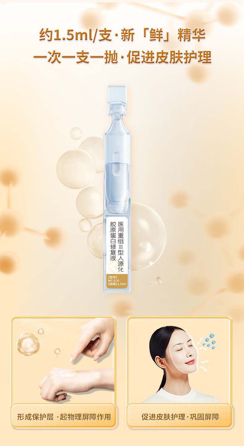 恒品医用重组Ⅲ型人源化胶原蛋白修护液械字号敷料术后修复创面促愈 医用级次抛【1盒30支】修复屏障