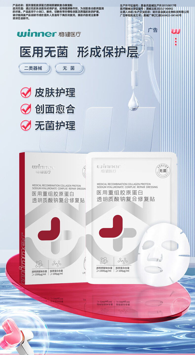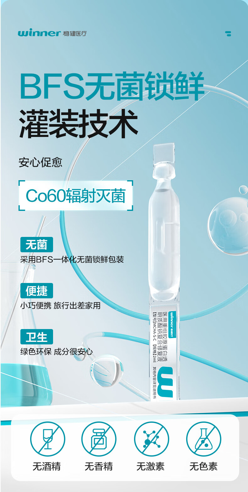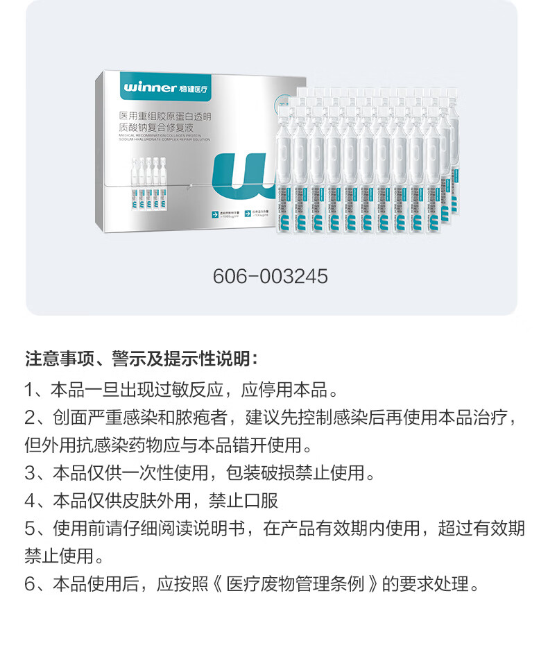 恒品医用重组Ⅲ型人源化胶原蛋白修护液械字号敷料术后修复创面促愈 医用级次抛【1盒30支】修复屏障