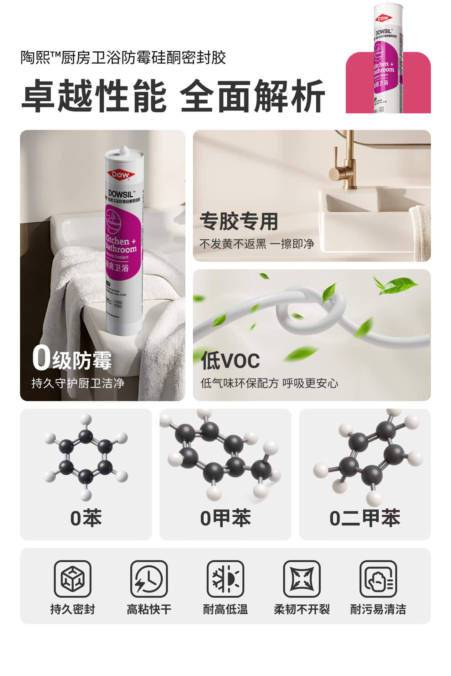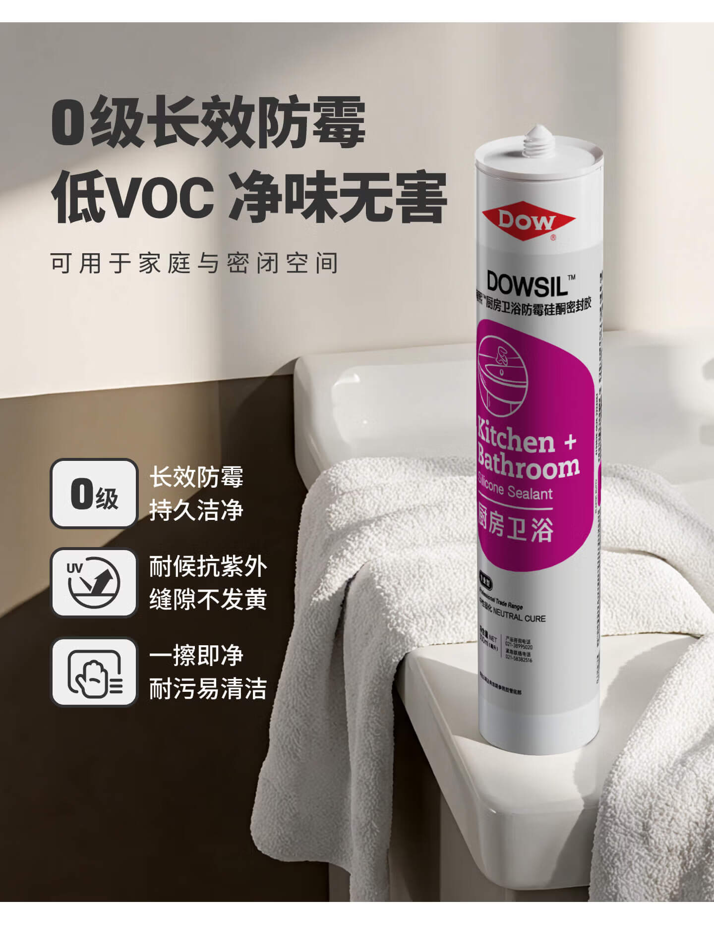 陶熙道康宁玻璃胶防霉防水厨卫专用快干防水密封胶马桶水盆收边美容胶 白色*1支(无工具包)