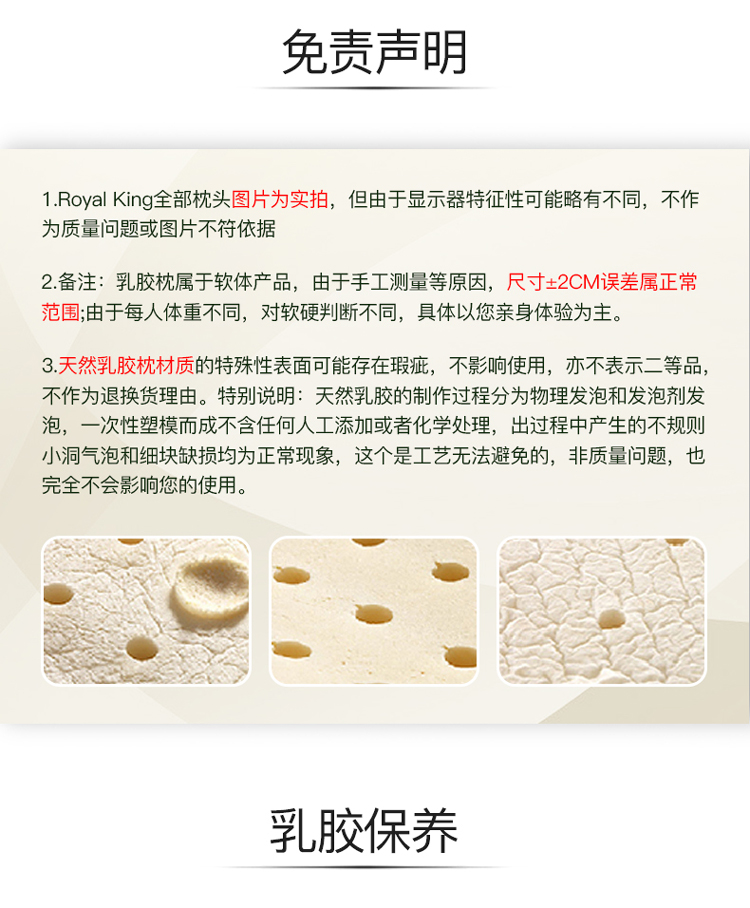 ROYAL KING泰国皇家原装进口天然乳胶枕特拉雷物理发泡工艺马鞍枕