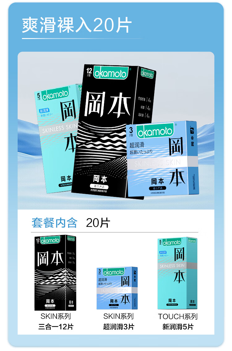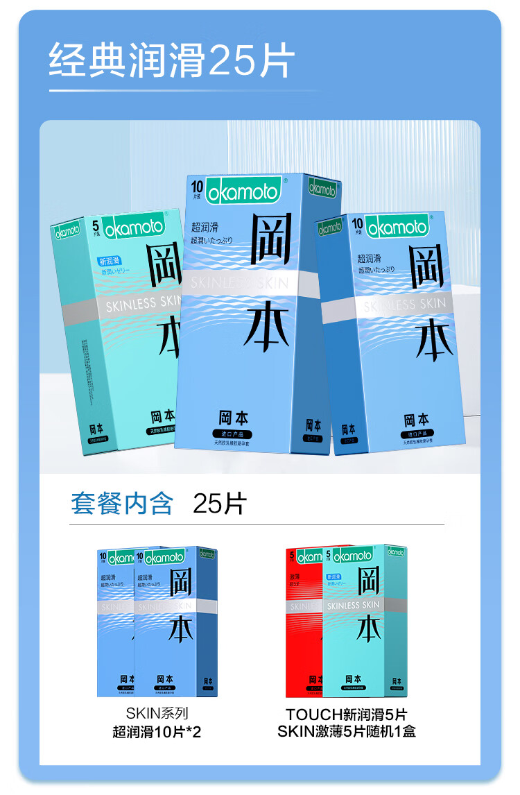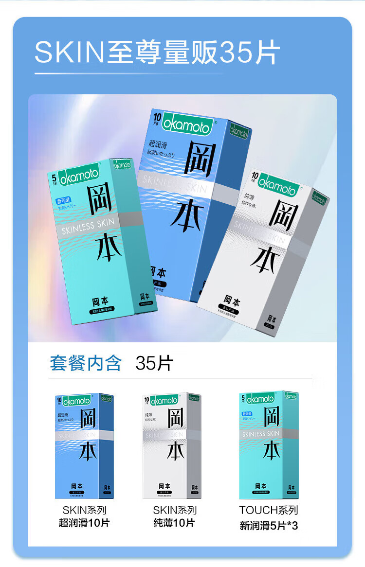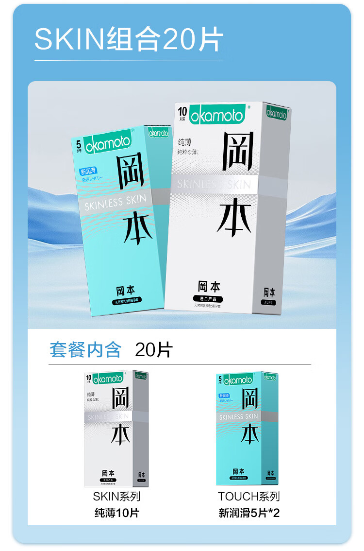 冈本(OKAMOTO)避孕套 skin超薄润滑肤感安全套套成人计生用品 双重愉悦【共30片】无感裸入亲密体验