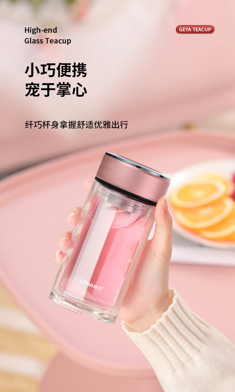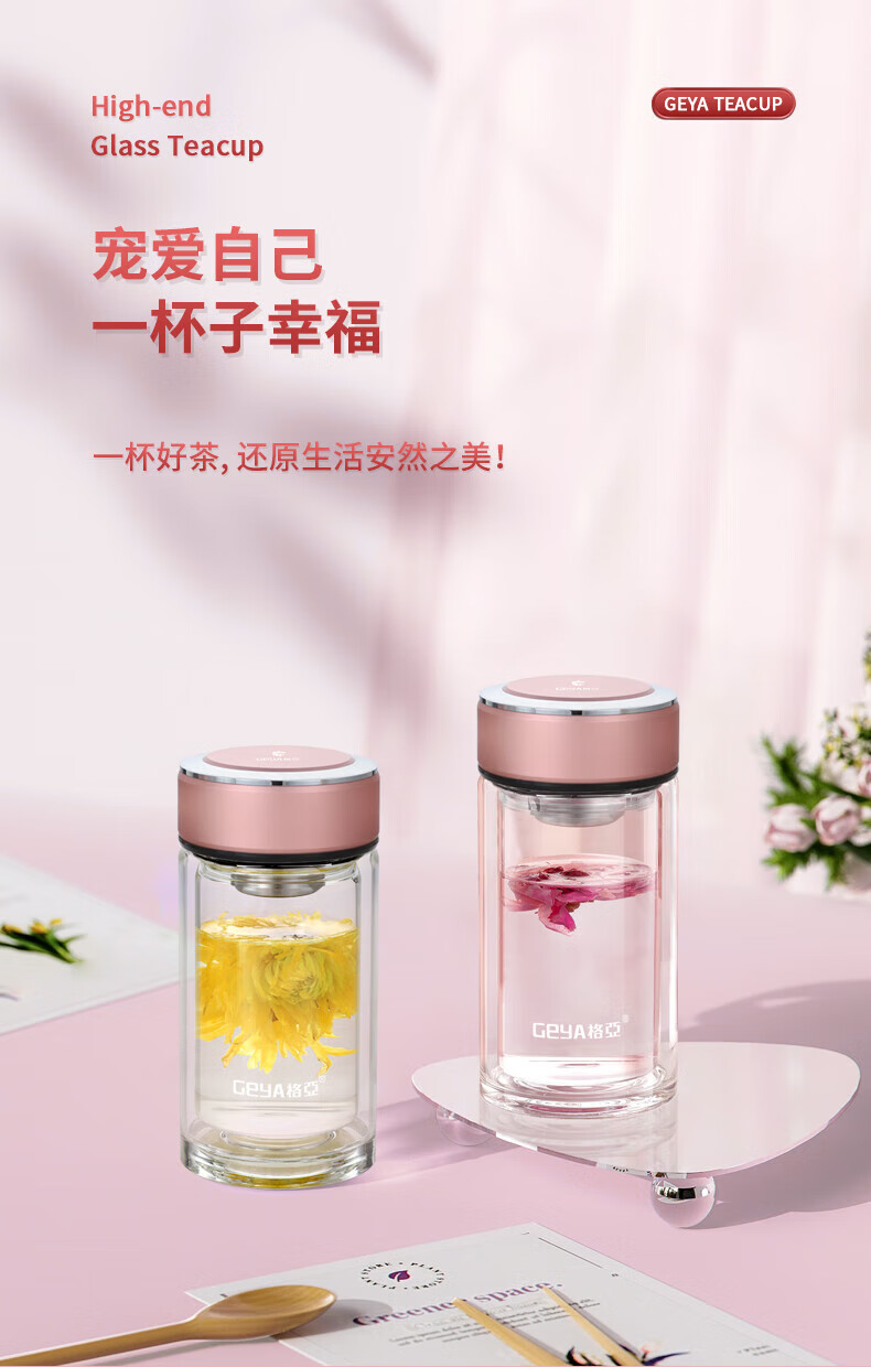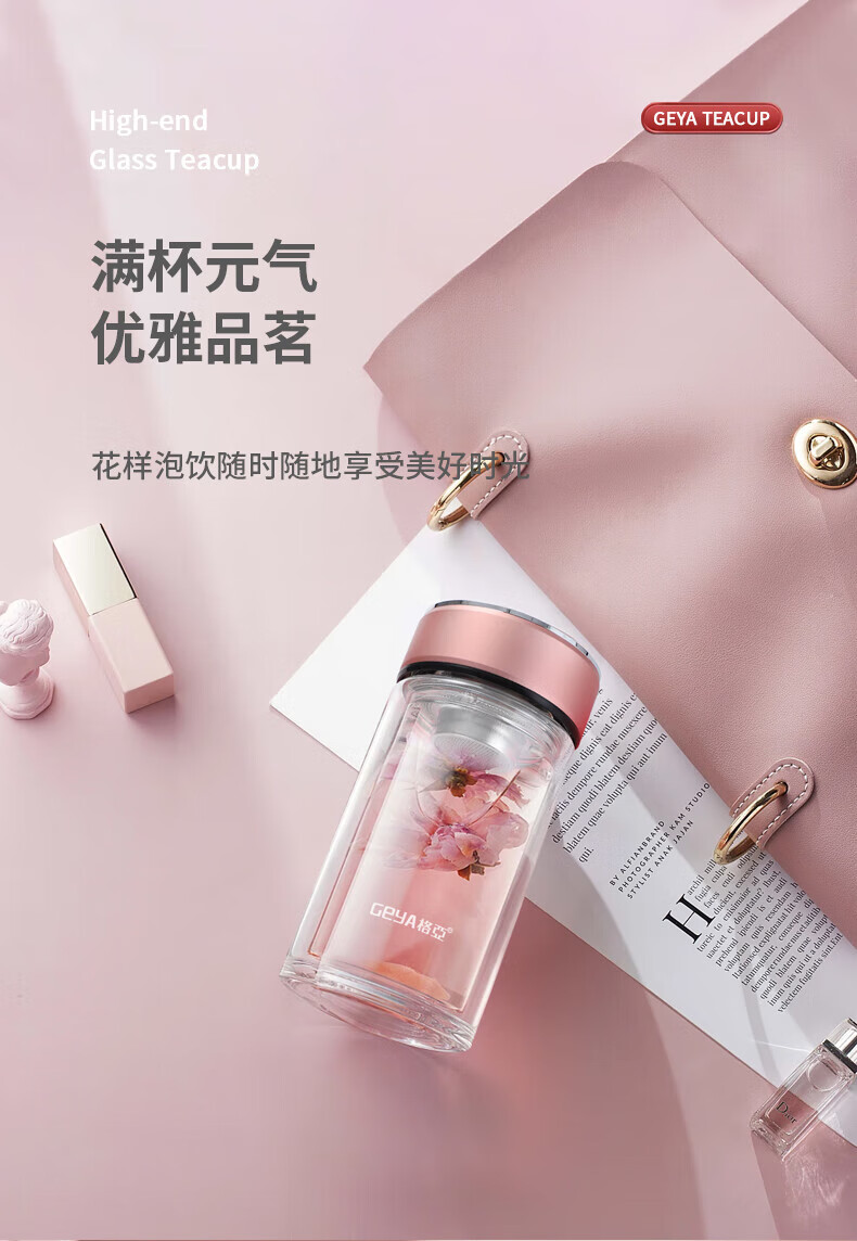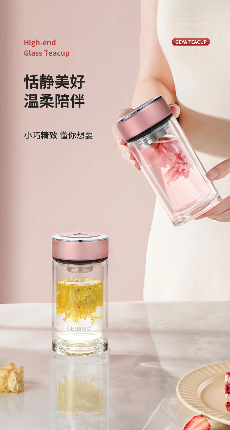 格亚(GEYA)双层玻璃杯泡茶杯女士家用喝水杯小巧迷你水杯便携玻璃水杯礼盒装 女神花茶杯260ml 礼盒装