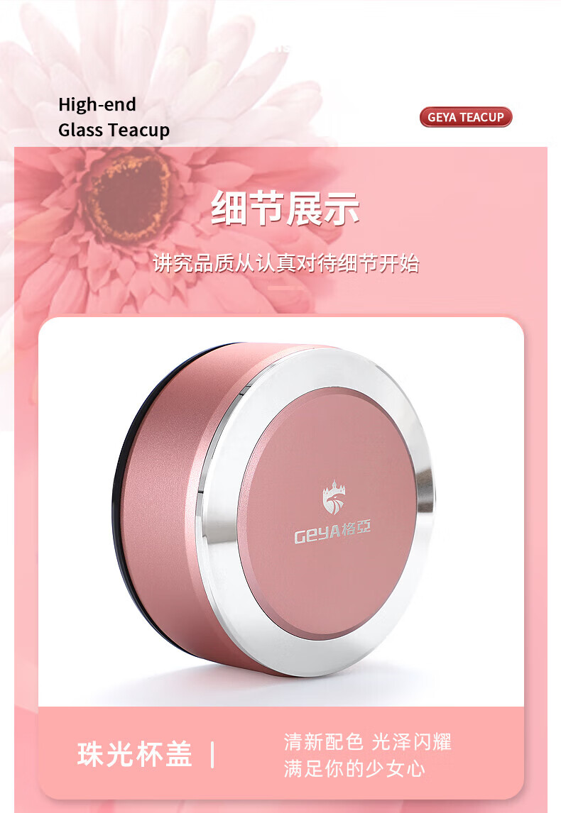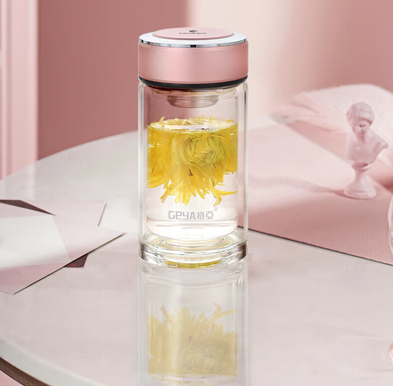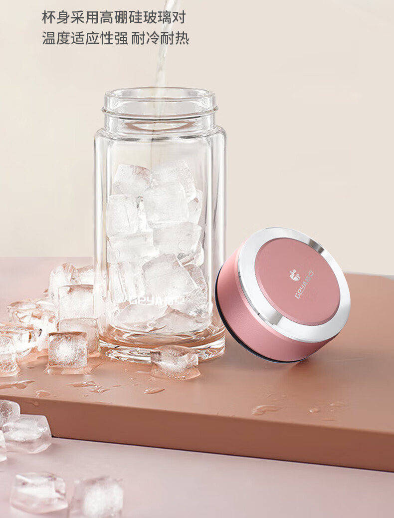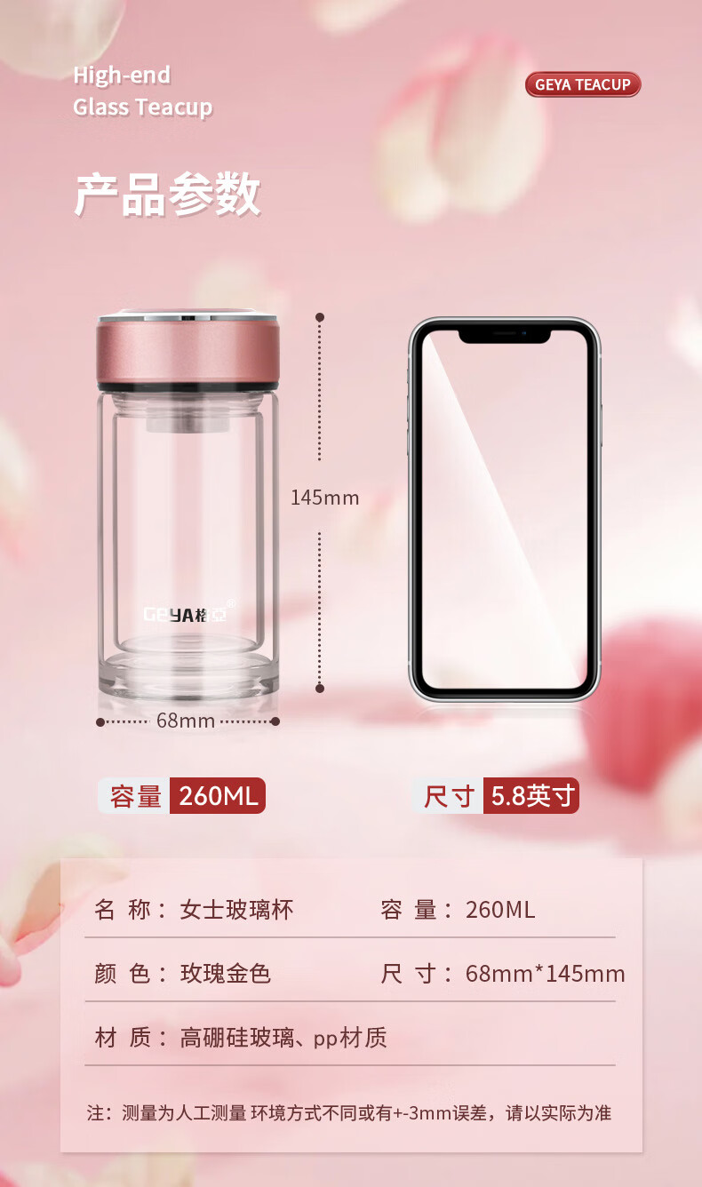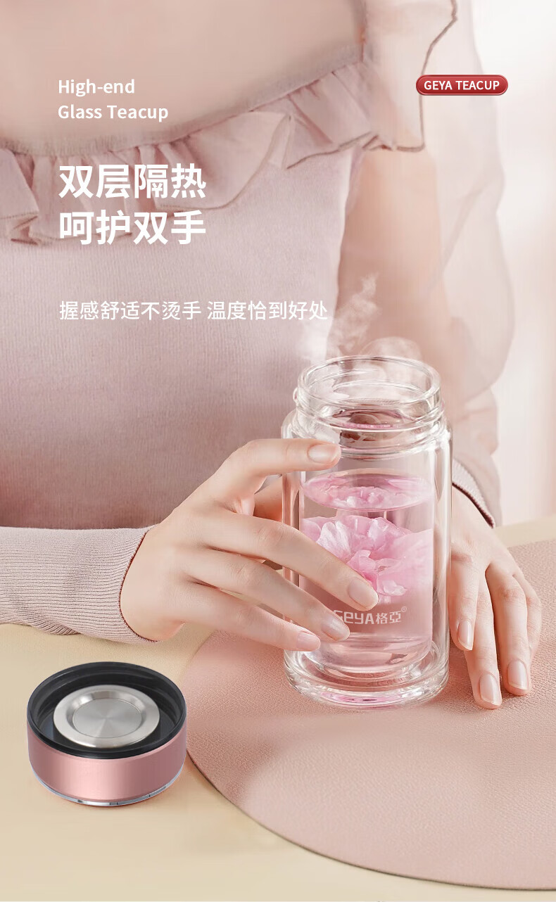 格亚(GEYA)双层玻璃杯泡茶杯女士家用喝水杯小巧迷你水杯便携玻璃水杯礼盒装 女神花茶杯260ml 礼盒装
