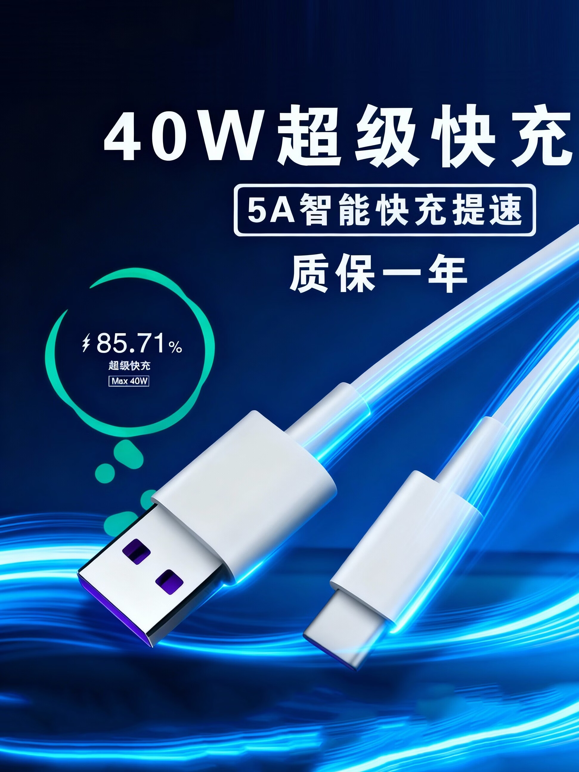 适用华为40W数据线5A超级快充nova5 6 7pro充电线mate30pro荣耀30s手机p30 p40pro数据线加长 【2米线+2米线】同长两条优惠装 华为专用线