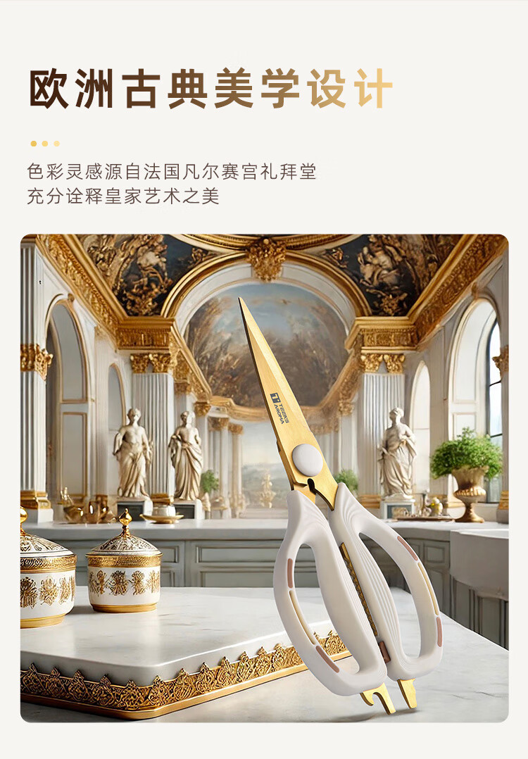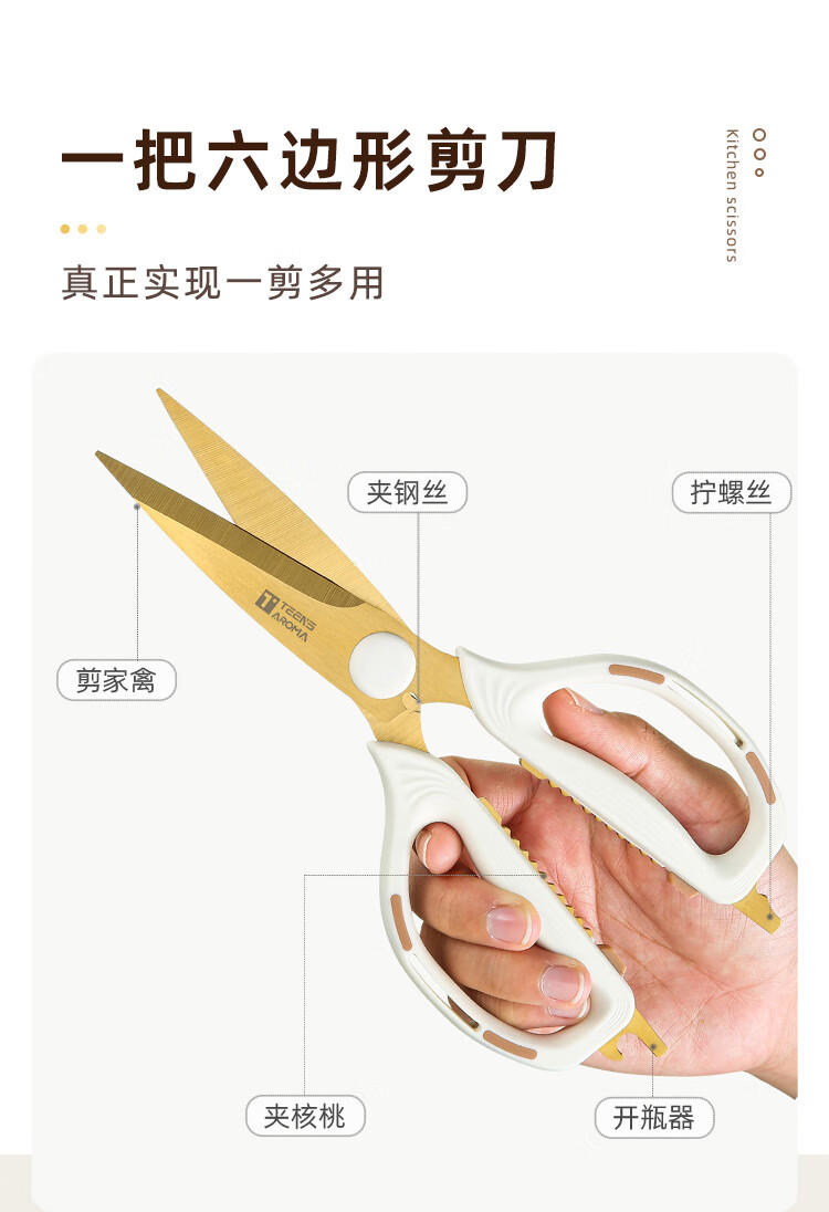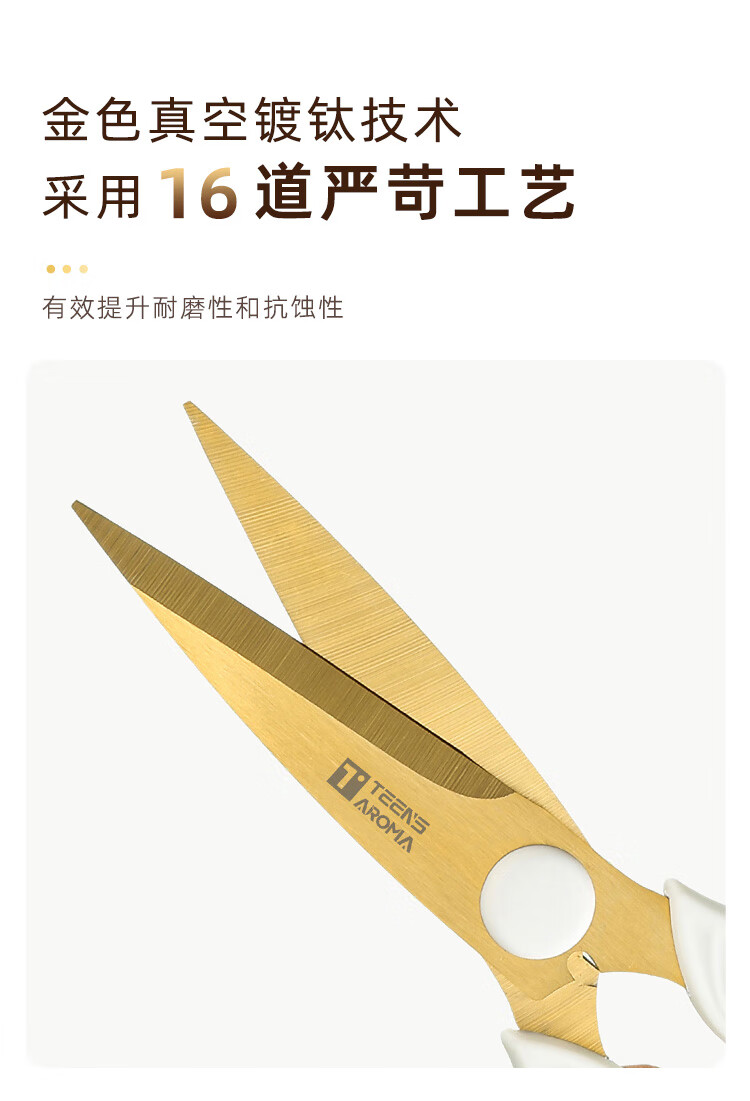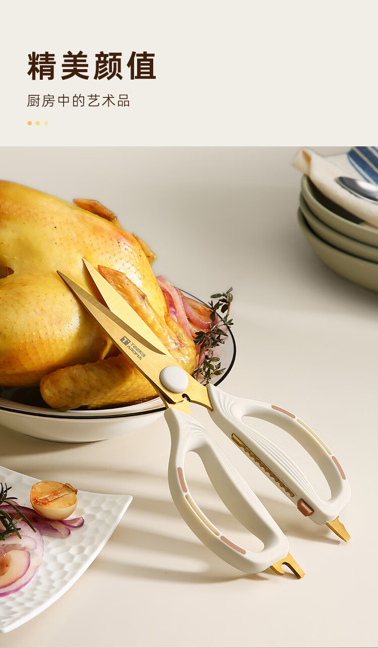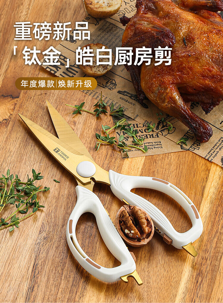 特恩斯.菲韵特恩斯钛金厨房剪刀家用大号多功能不锈钢防锈锋利鸡骨鱼骨剪子 钛金皓白