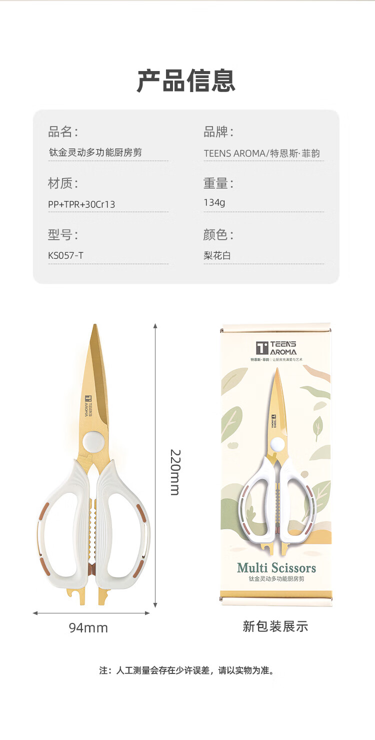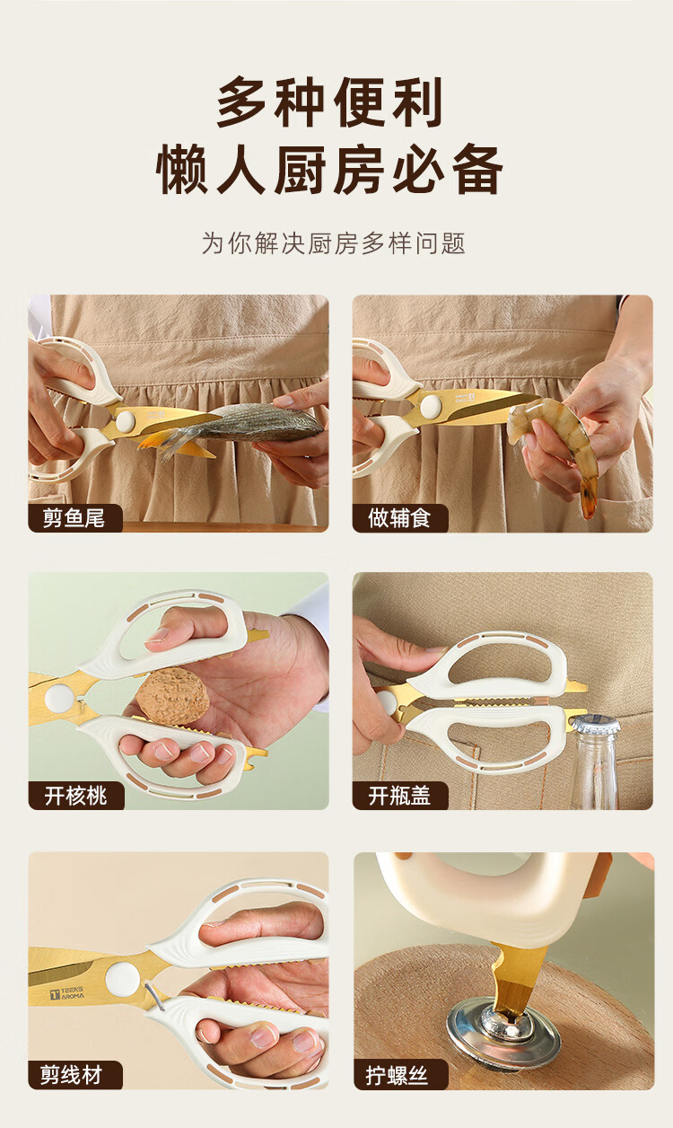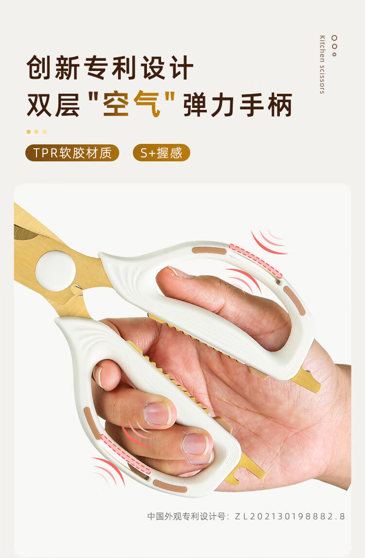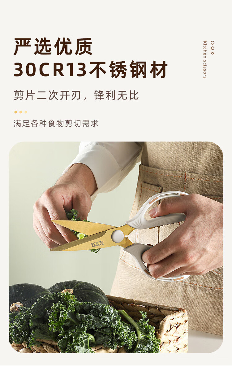 特恩斯.菲韵特恩斯钛金厨房剪刀家用大号多功能不锈钢防锈锋利鸡骨鱼骨剪子 钛金皓白