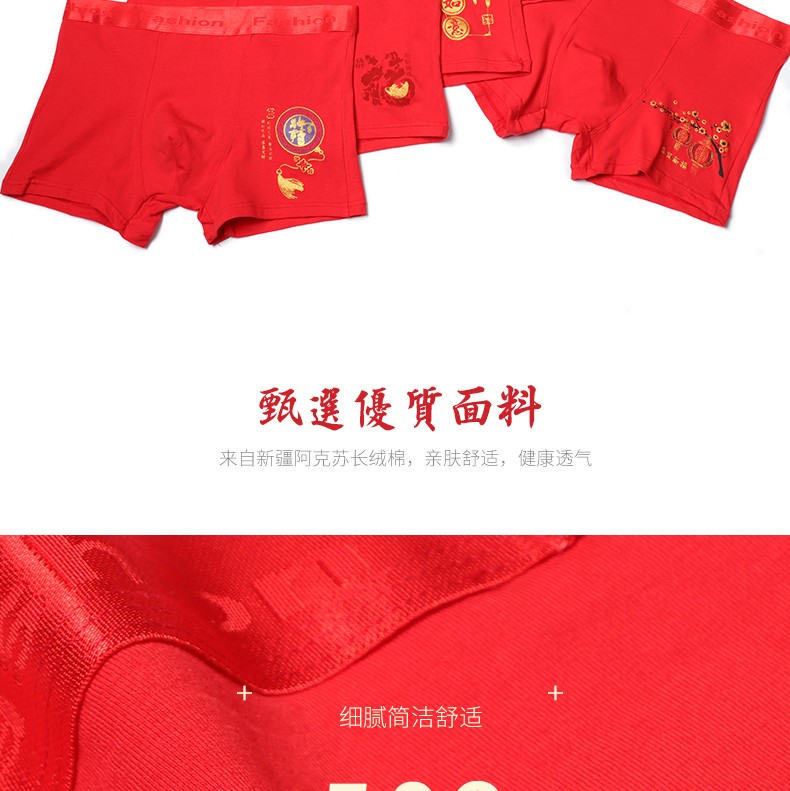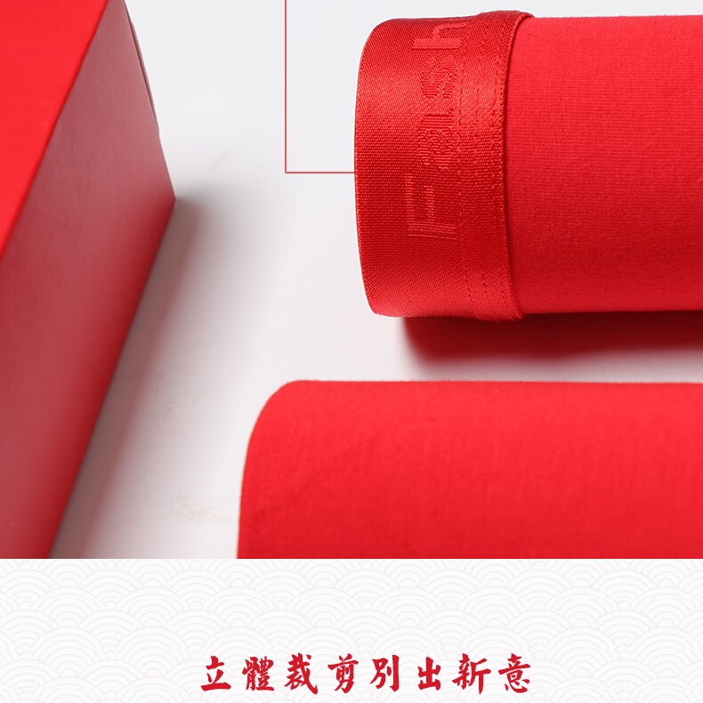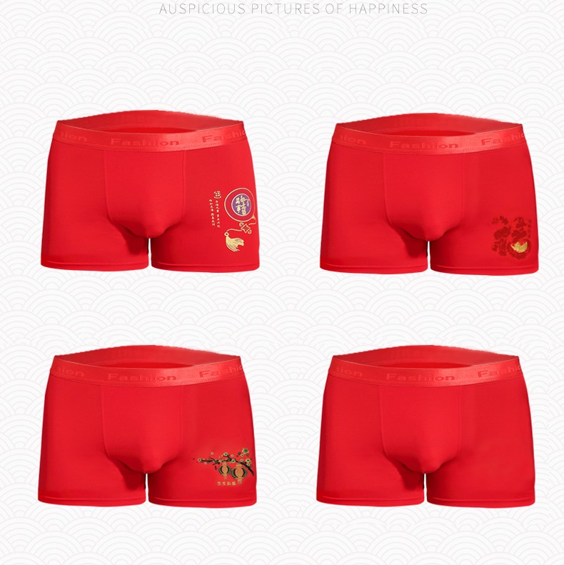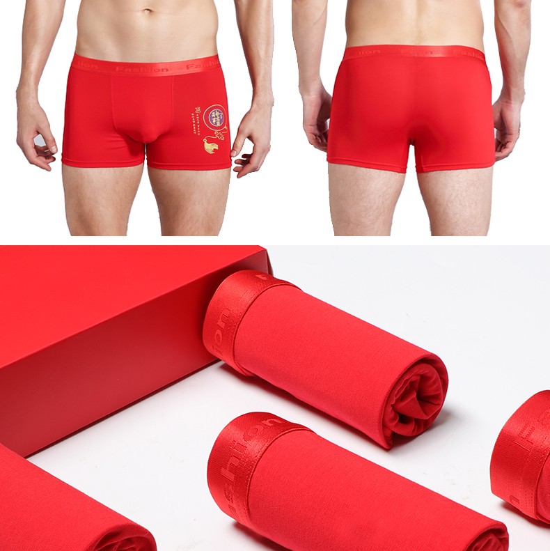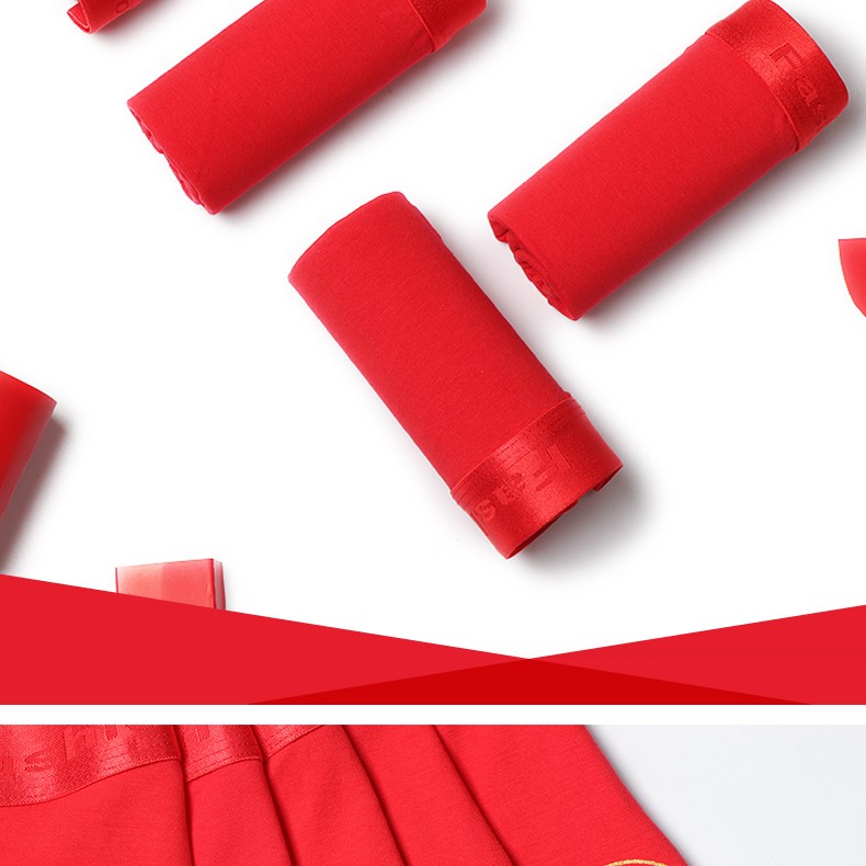 阁啦朵【4条】本命年大红色男士内裤喜庆婚庆男平角裤中腰四角裤礼盒装 组E大红纯色 XXXL