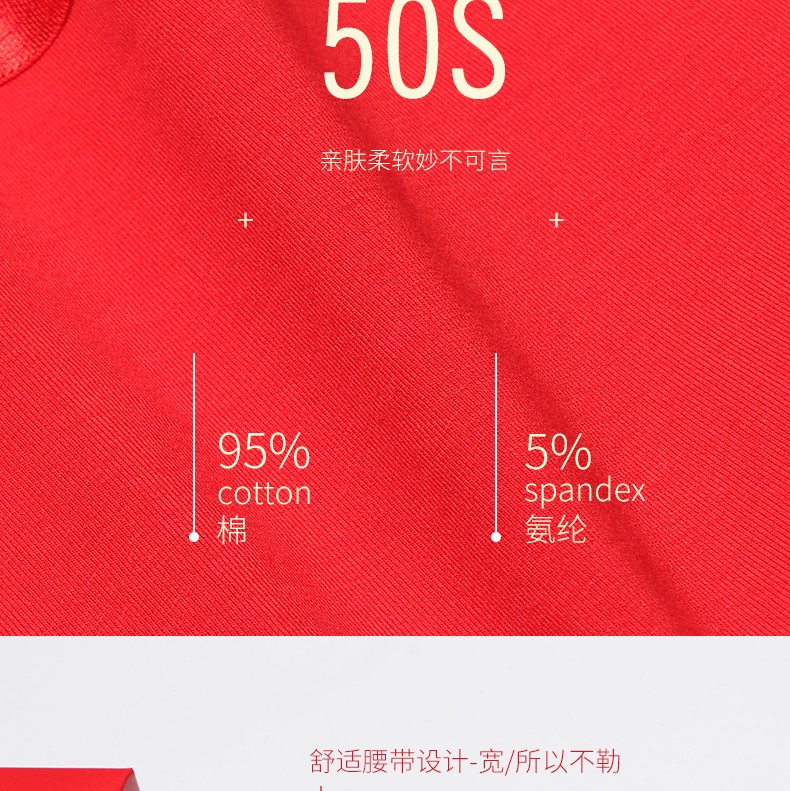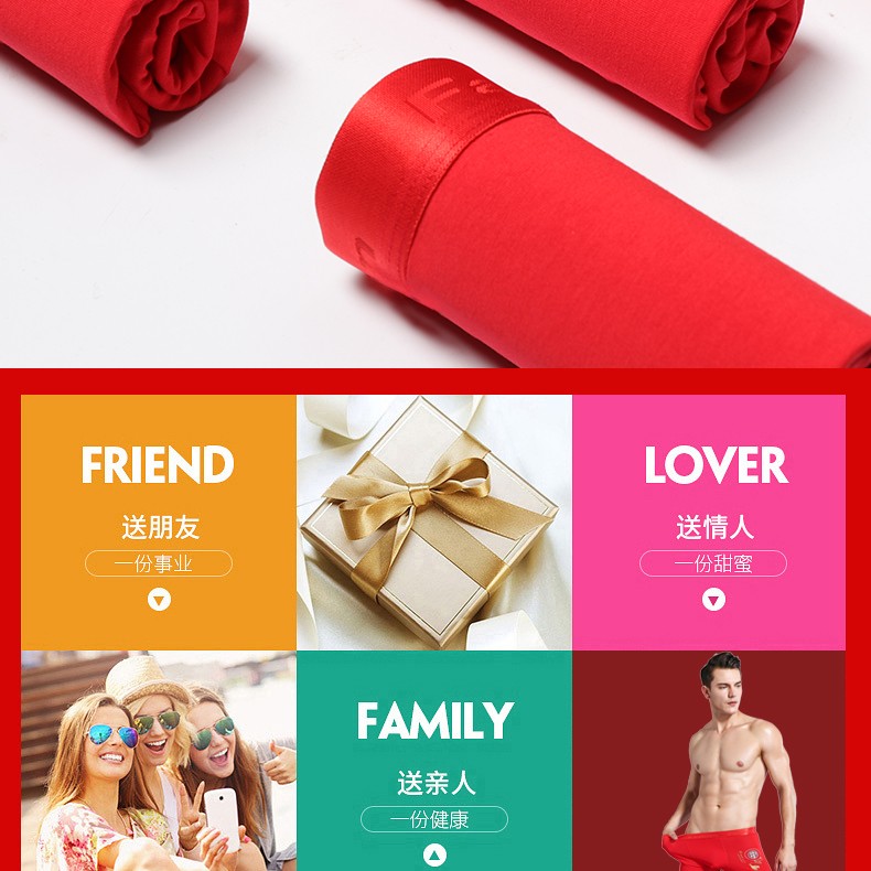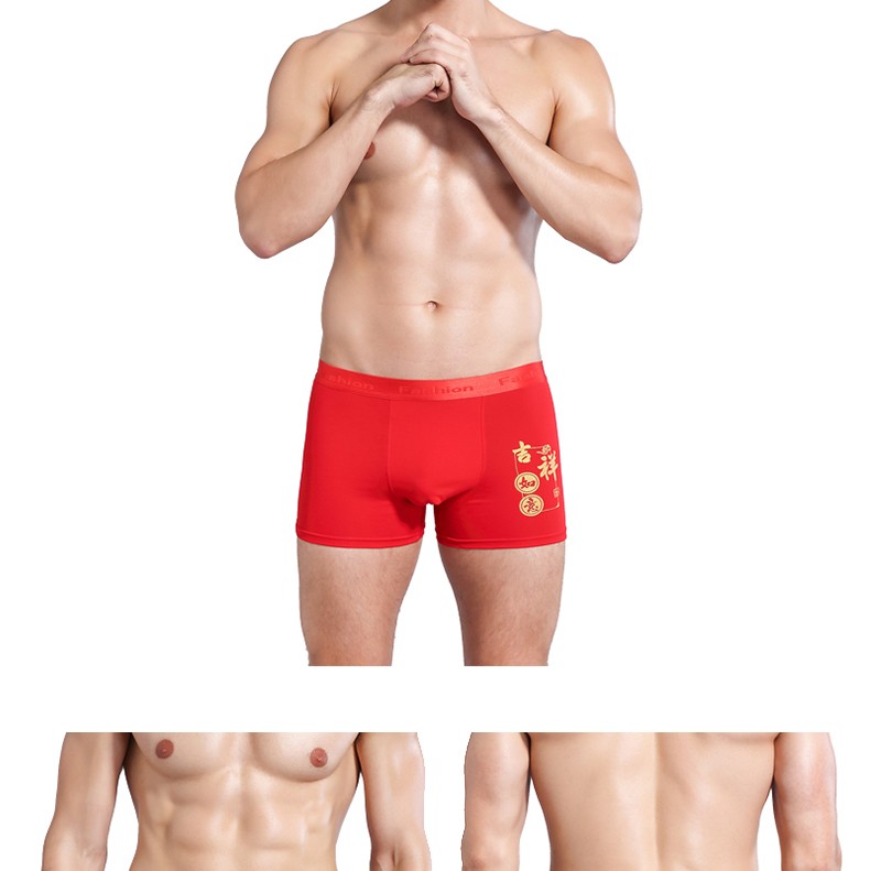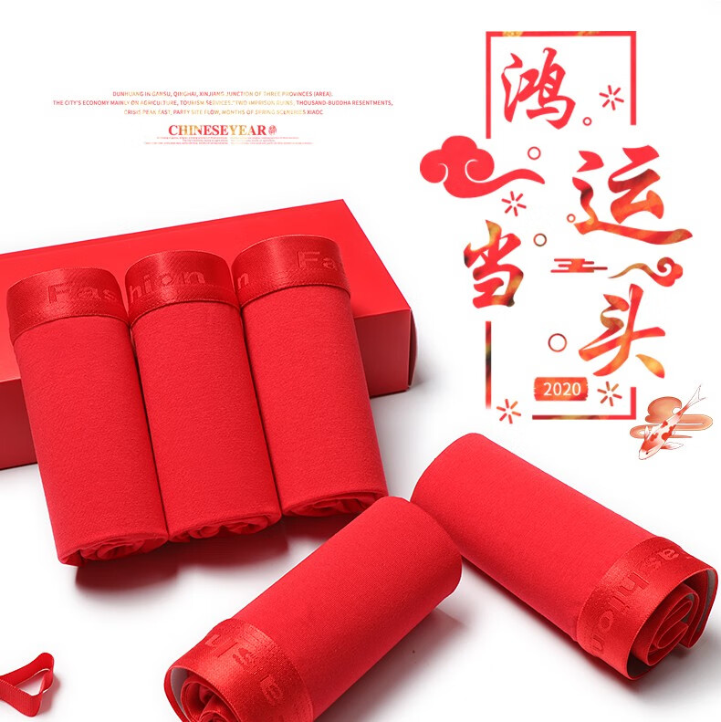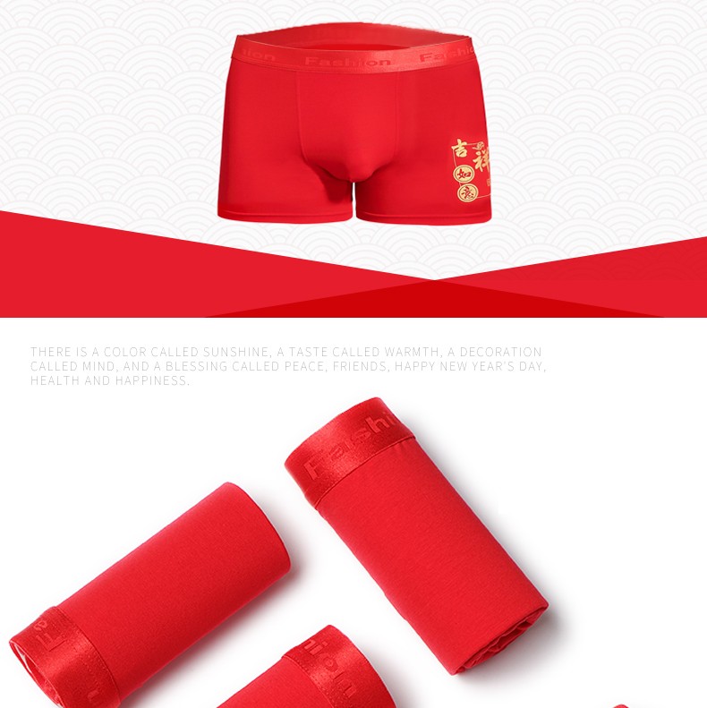 阁啦朵【4条】本命年大红色男士内裤喜庆婚庆男平角裤中腰四角裤礼盒装 组E大红纯色 XXXL