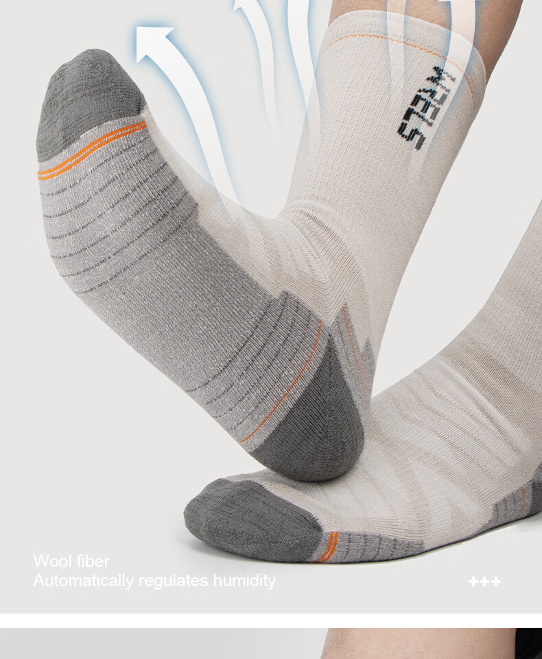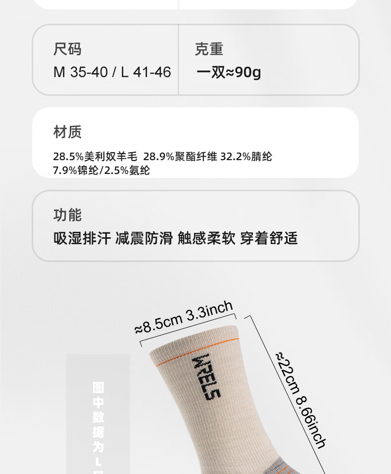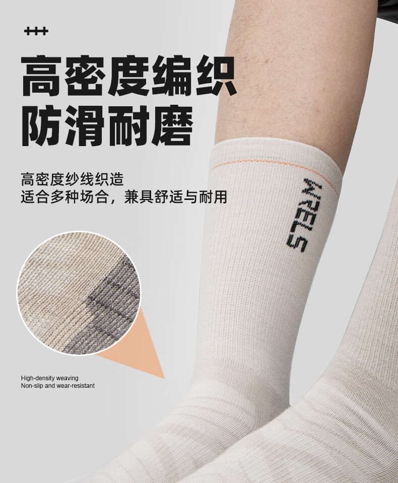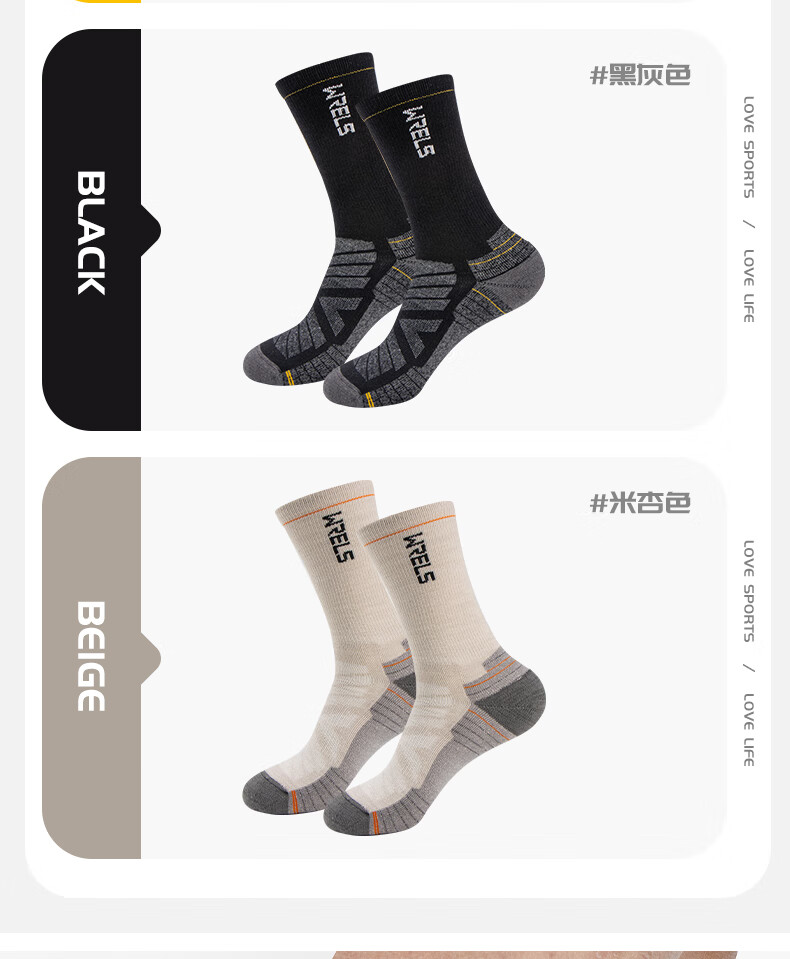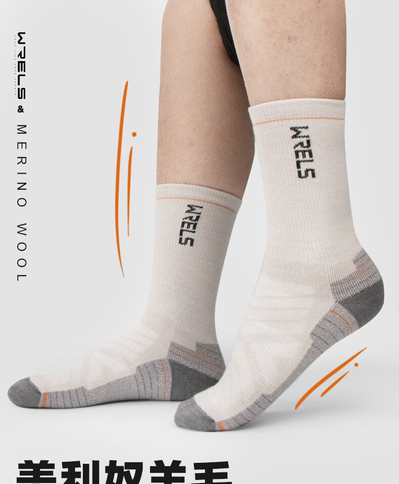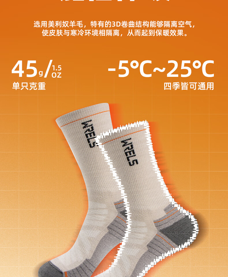WRELS美利奴羊毛袜子男女高筒马拉松徒步跑步袜加厚毛圈防臭透气运动袜 高筒-黑灰色【美利奴羊毛】 M【35-40码】