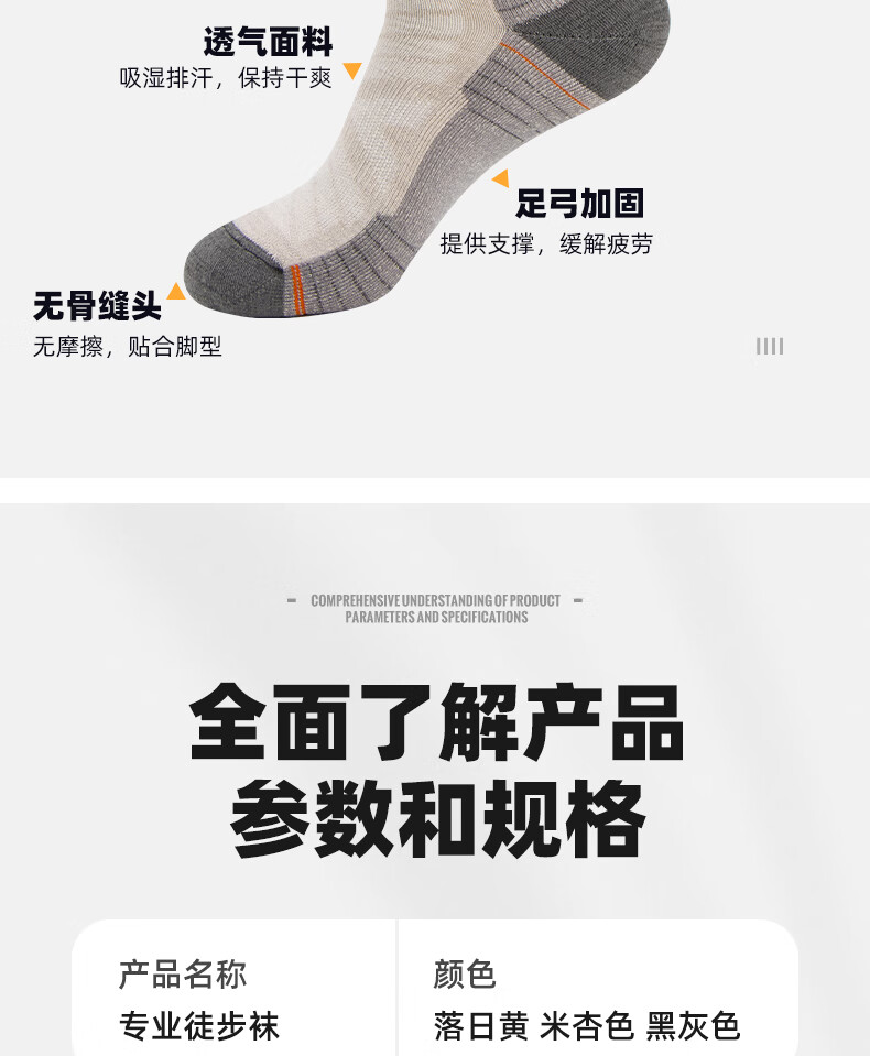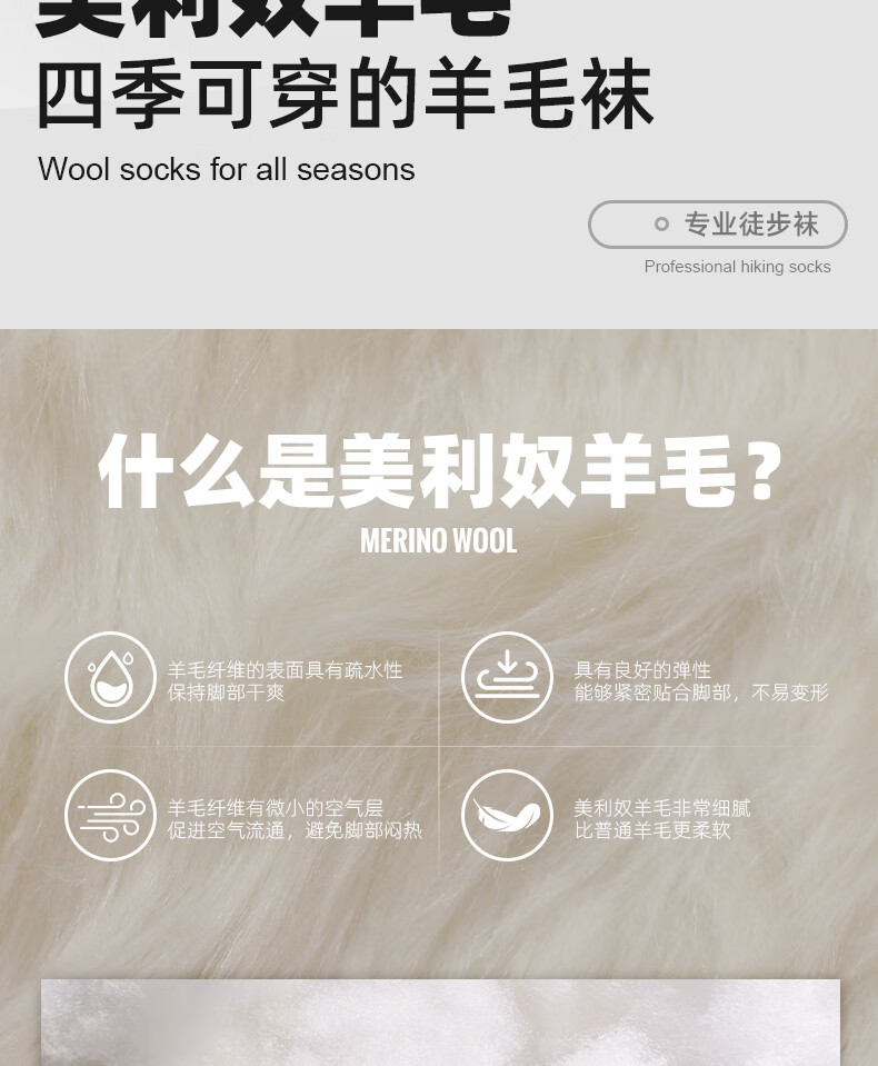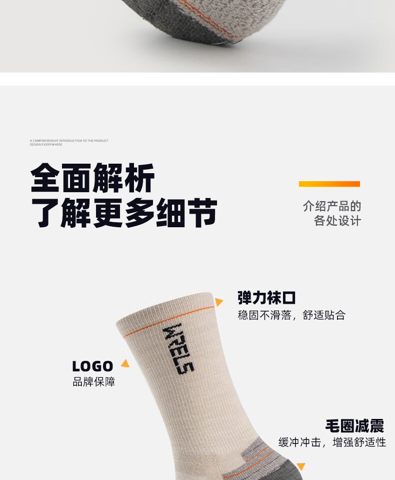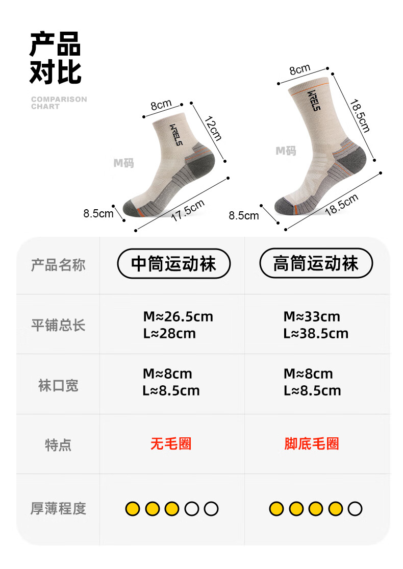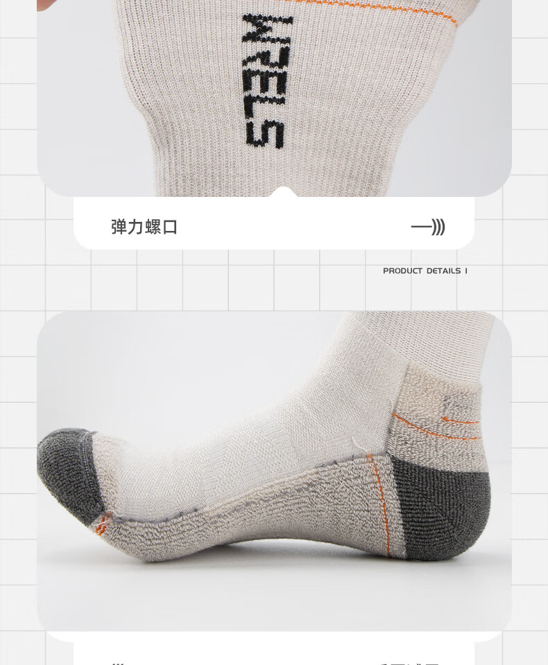 WRELS美利奴羊毛袜子男女高筒马拉松徒步跑步袜加厚毛圈防臭透气运动袜 高筒-黑灰色【美利奴羊毛】 M【35-40码】