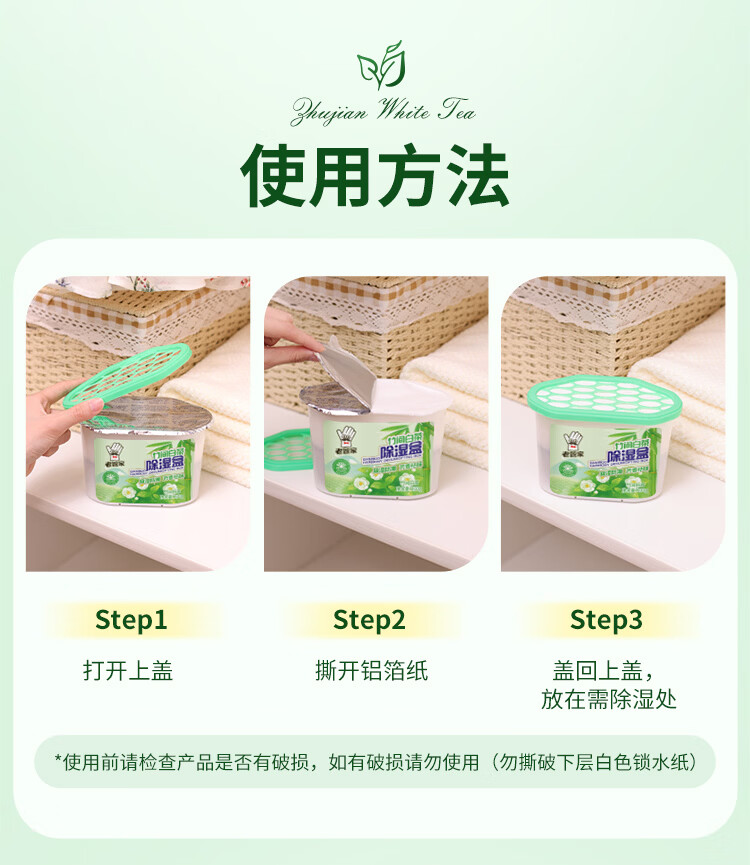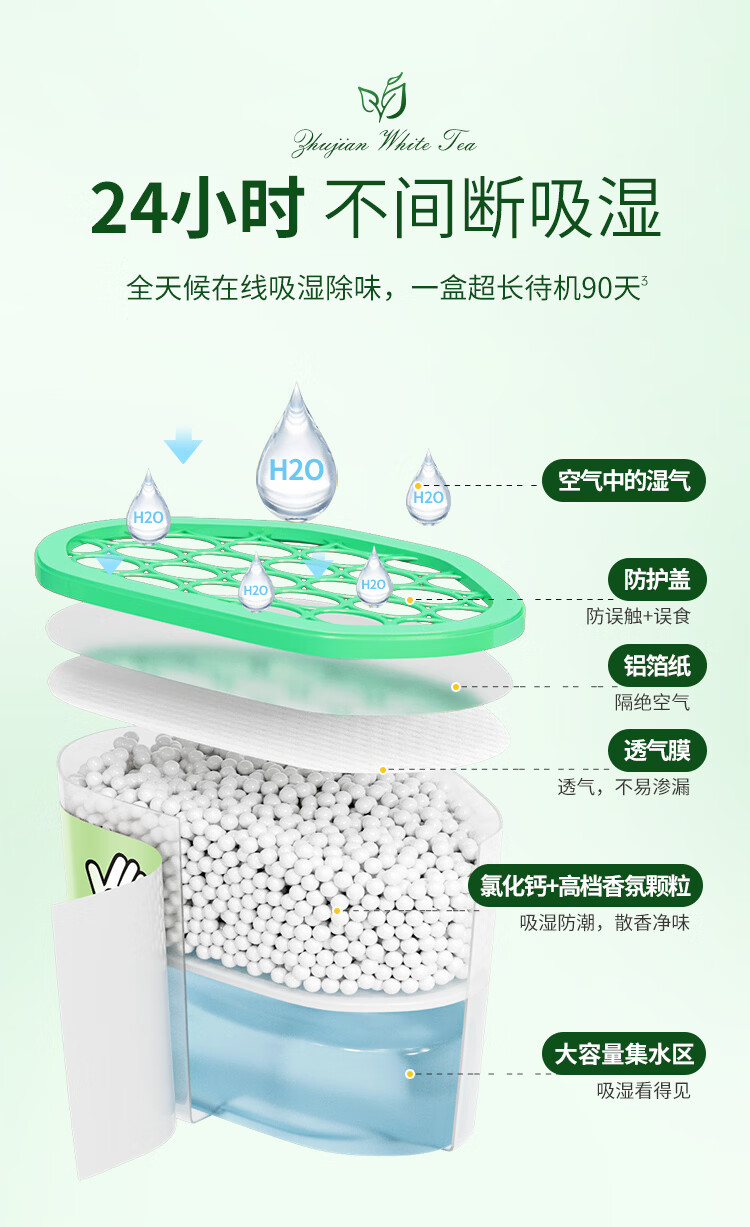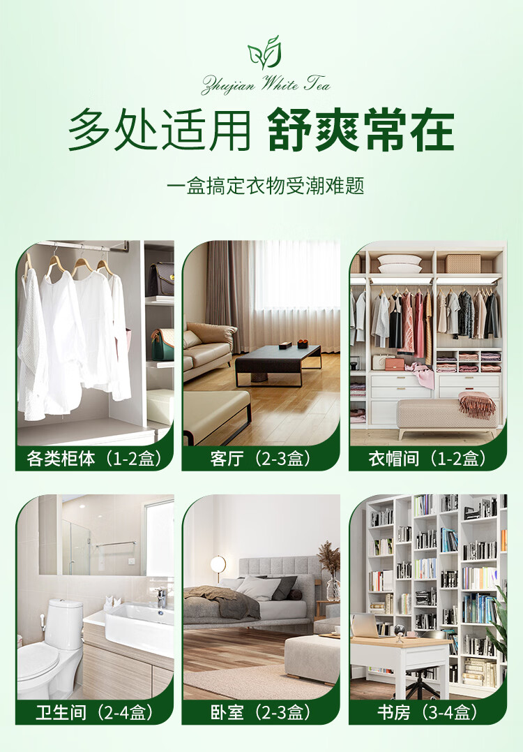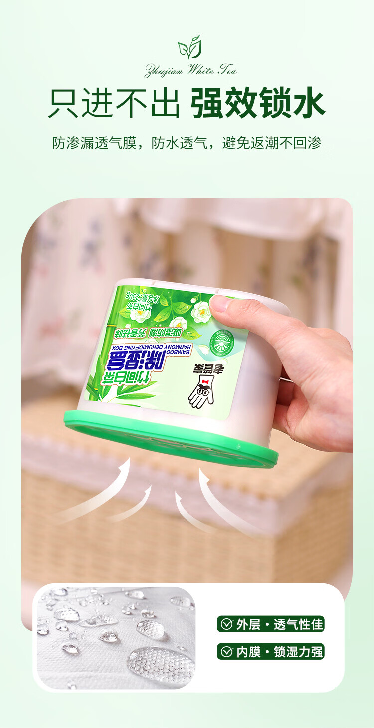 老管家竹间白茶除湿盒230g家用干燥剂室内衣柜房间汽车吸湿袋防霉防潮剂 230g*3盒【日常使用】
