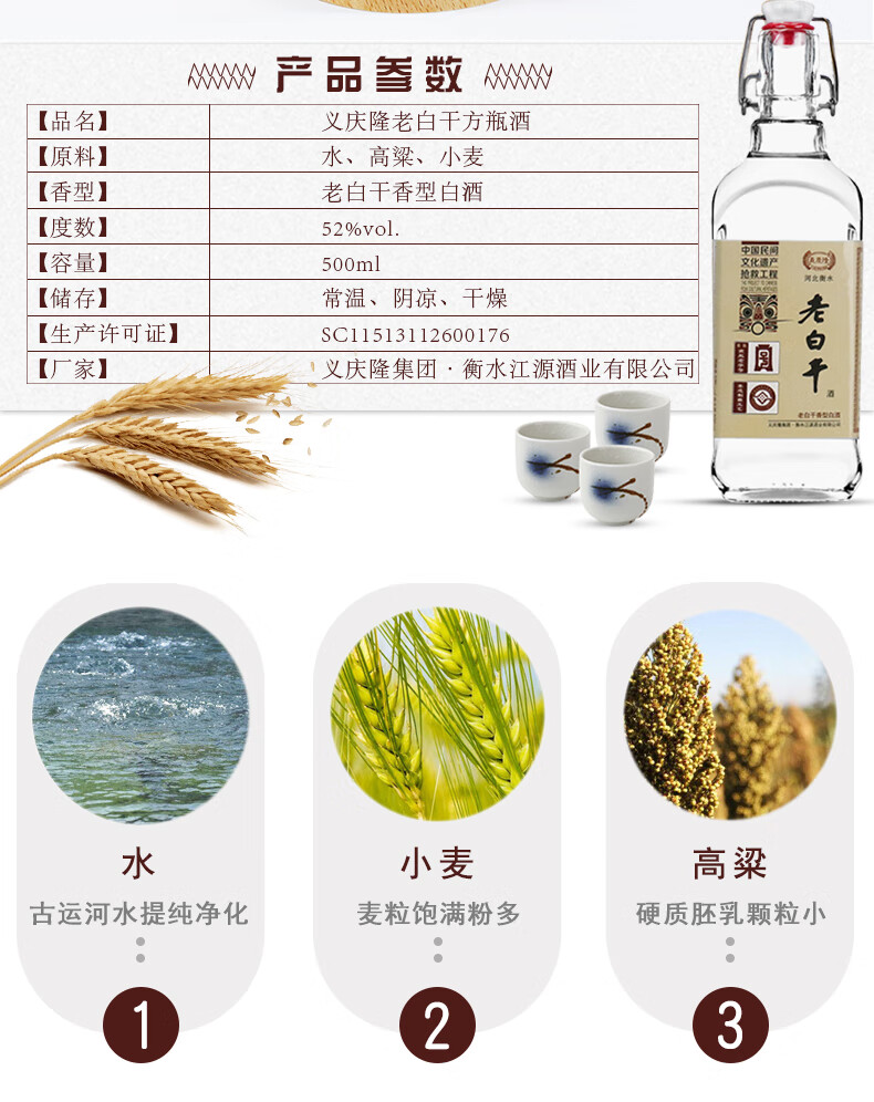 衡记义庆隆老白干52度白酒整箱500ml*4瓶手提礼盒装 小方瓶酒纯粮食酒 52度 500mL 4瓶 小方瓶礼盒装 500ml*4 整箱装
