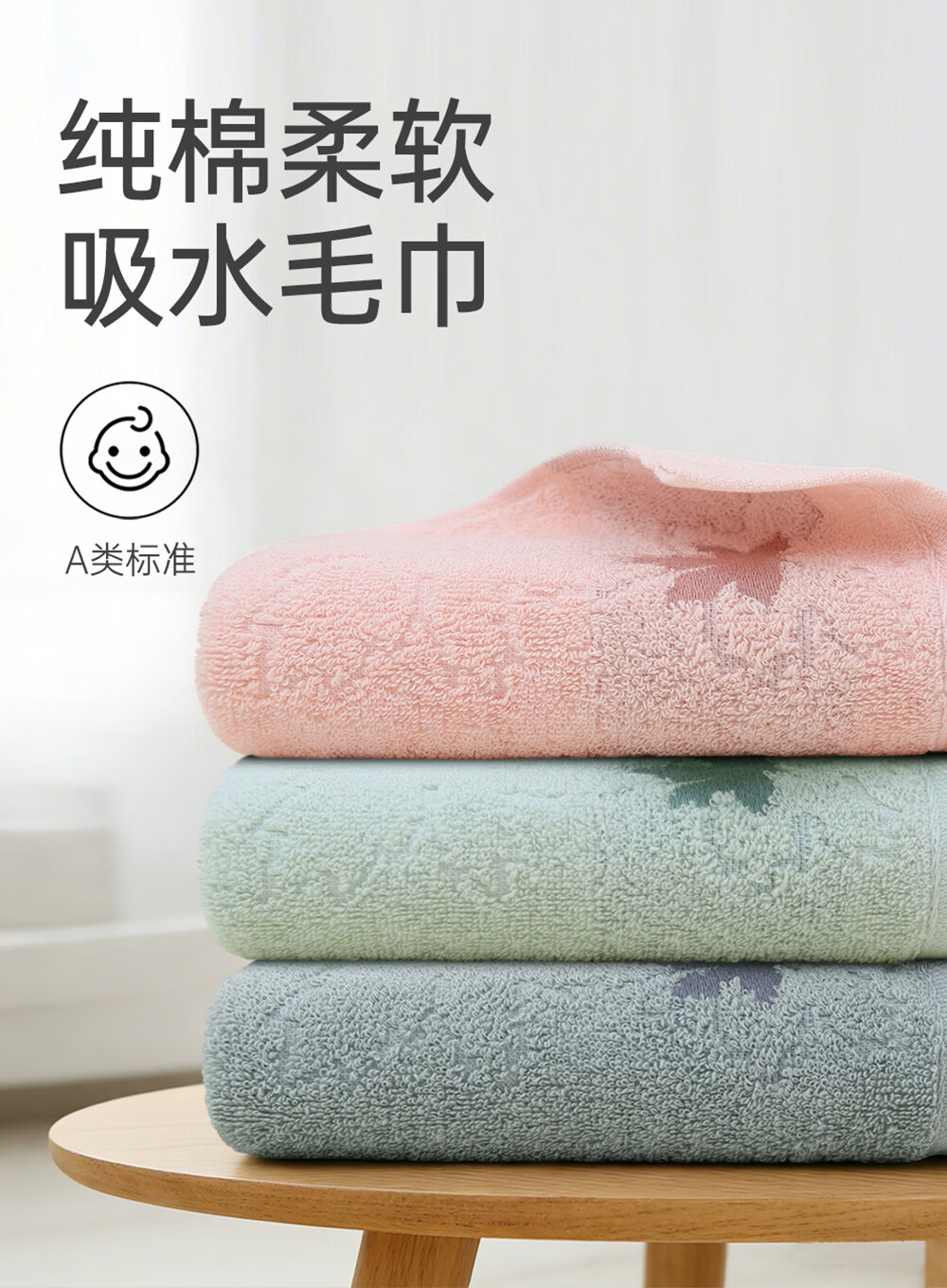 金号(KING SHORE)金号纯棉A类毛巾100%棉素雅清新洗脸洗澡家用面巾70*33.5cm 红色+绿色+灰色 3条