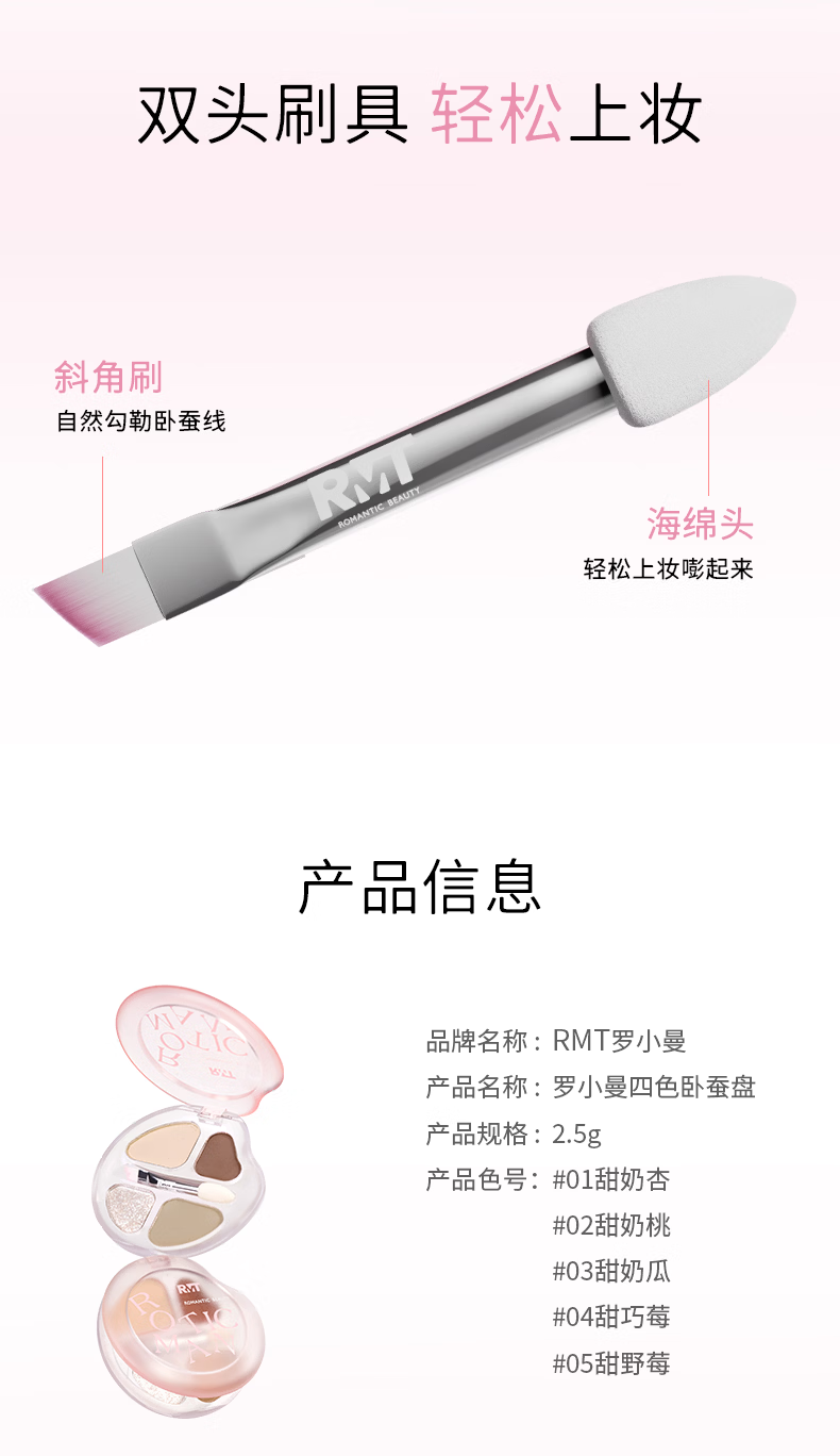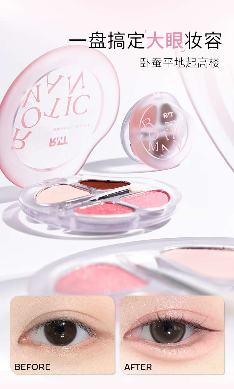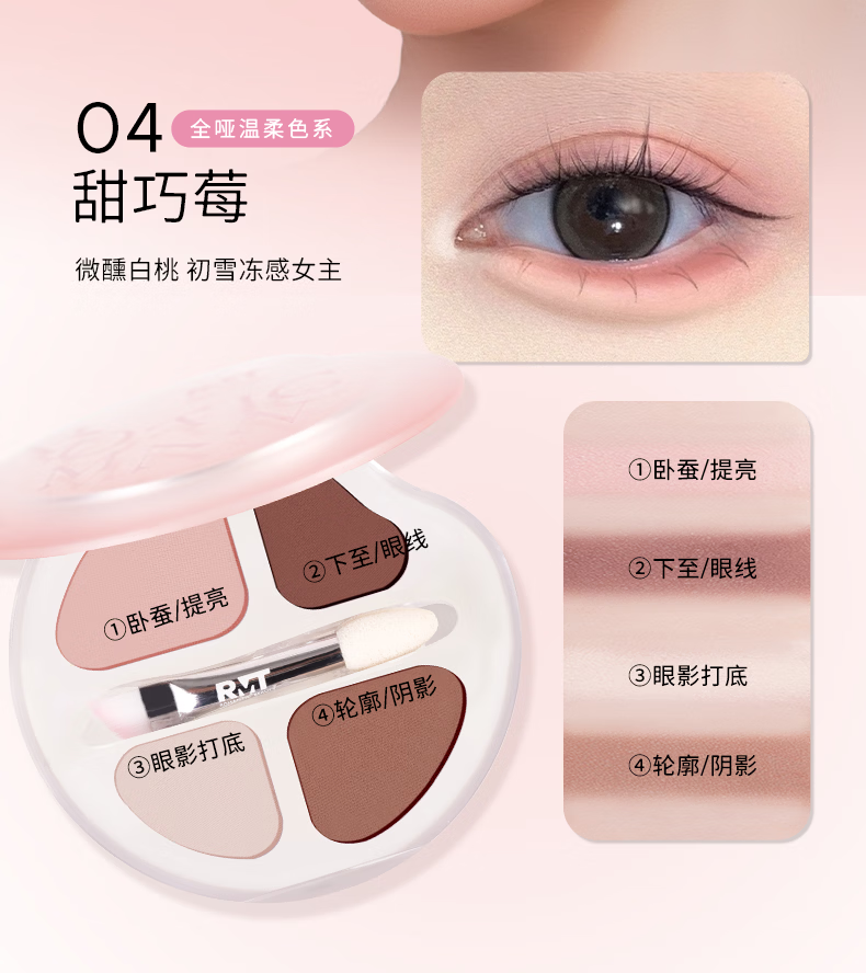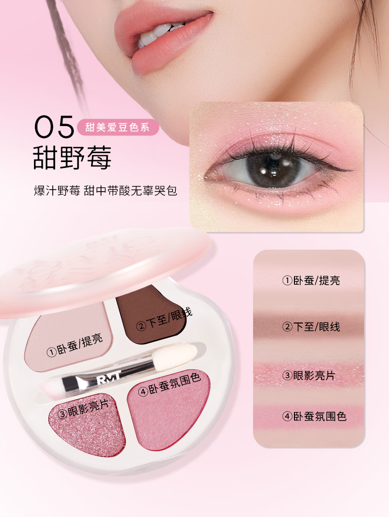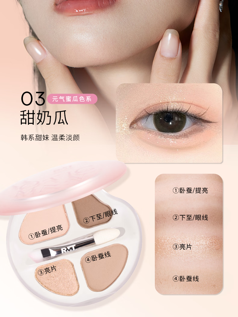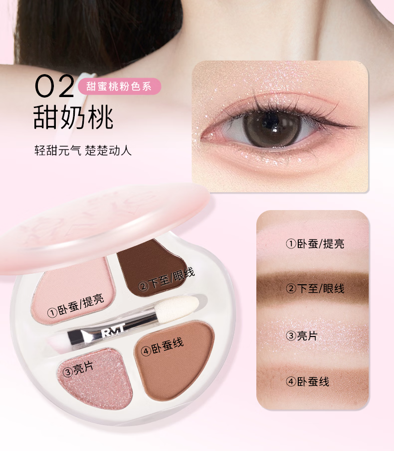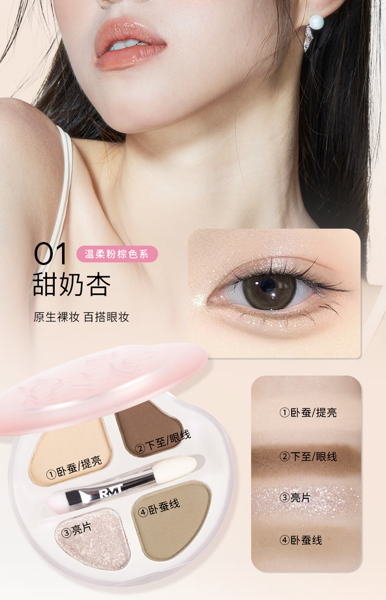 罗小曼官方四色卧蚕盘日常淡妆高光卧蚕下至一体笔眼影盘 01A甜奶杏