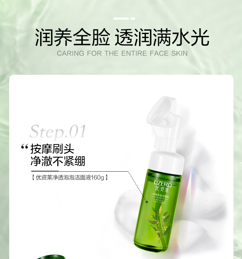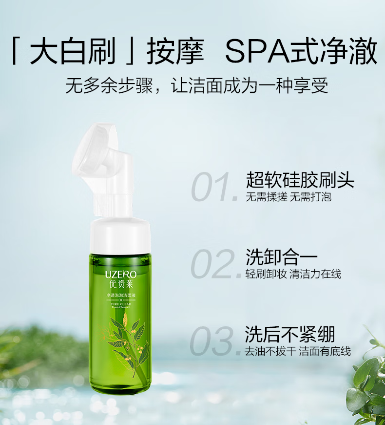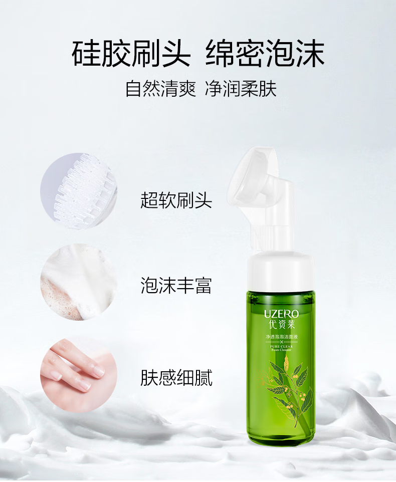 优资莱(UZERO)绿茶籽净透泡泡洁面液温和氨基酸洗面奶清洁带脸刷生日礼物男女T 洁面泡泡买一赠一
