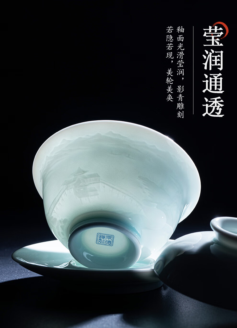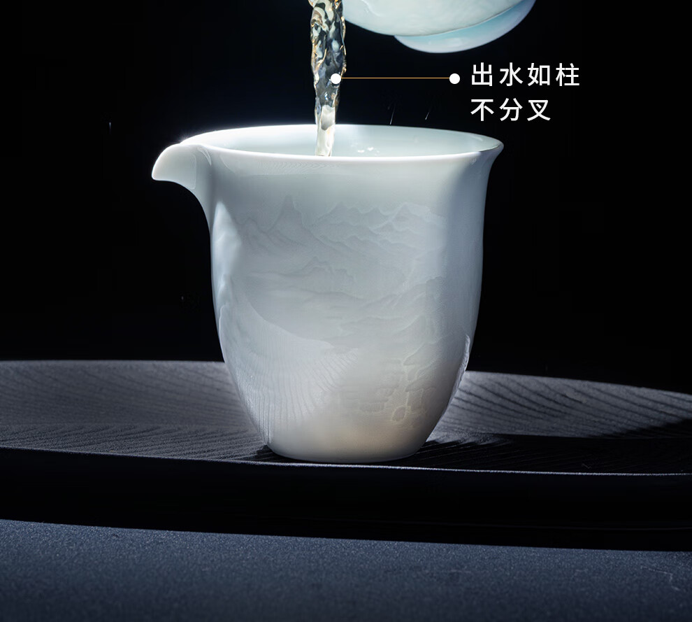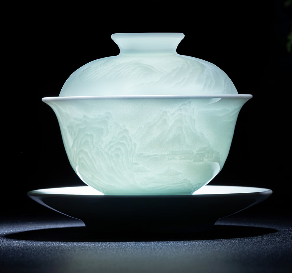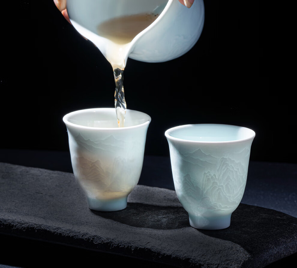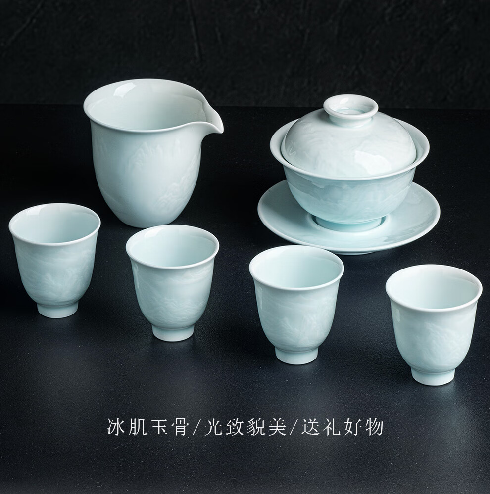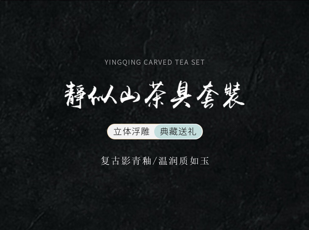 翠玉满堂景德镇茶具套装影青瓷雕刻手工高档陶瓷整套送老师领导礼物 【景德镇制】静似山6头
