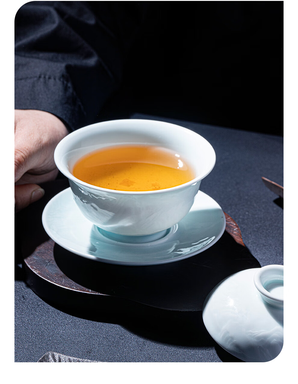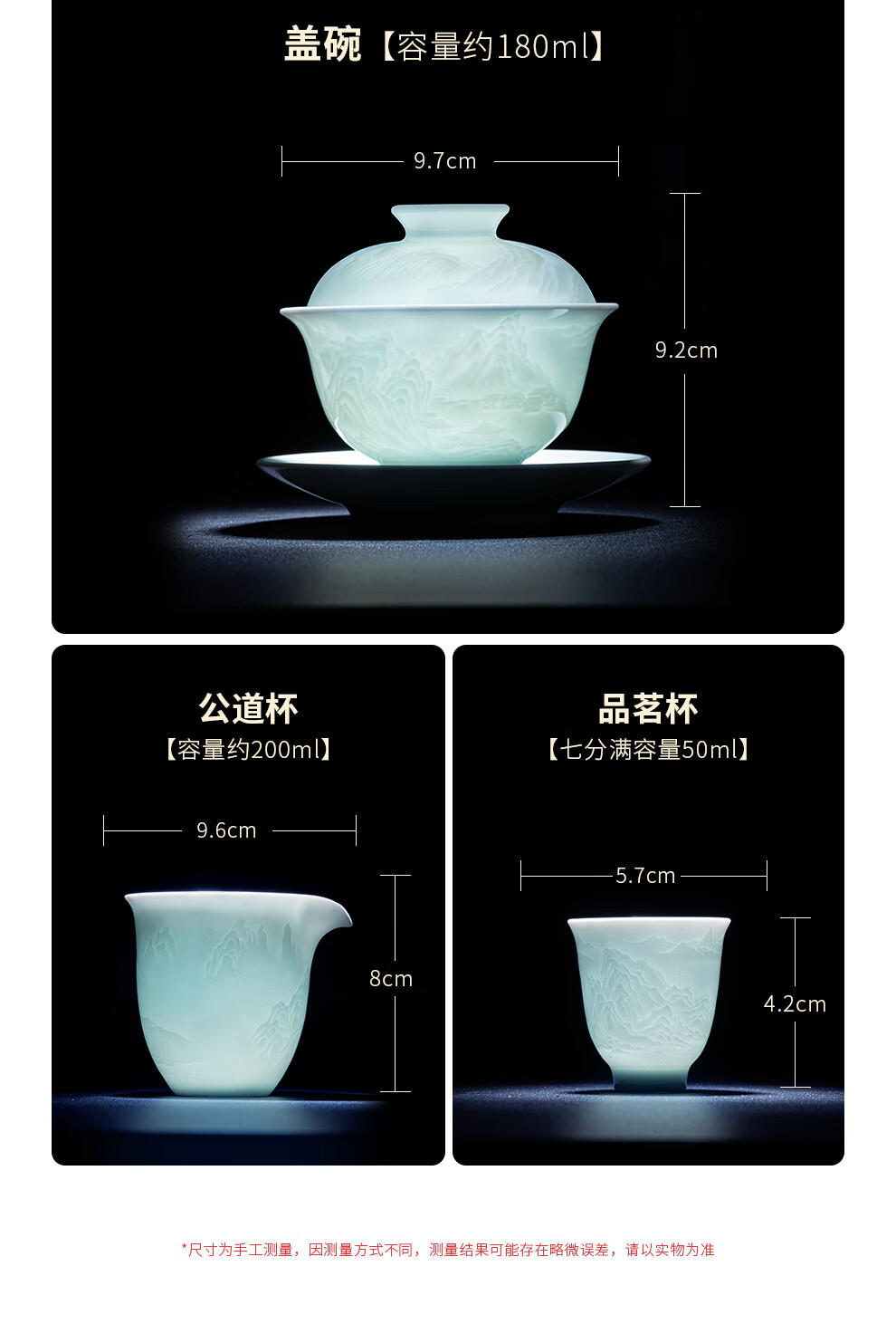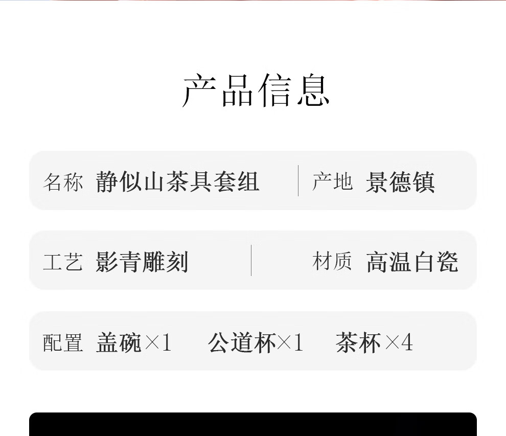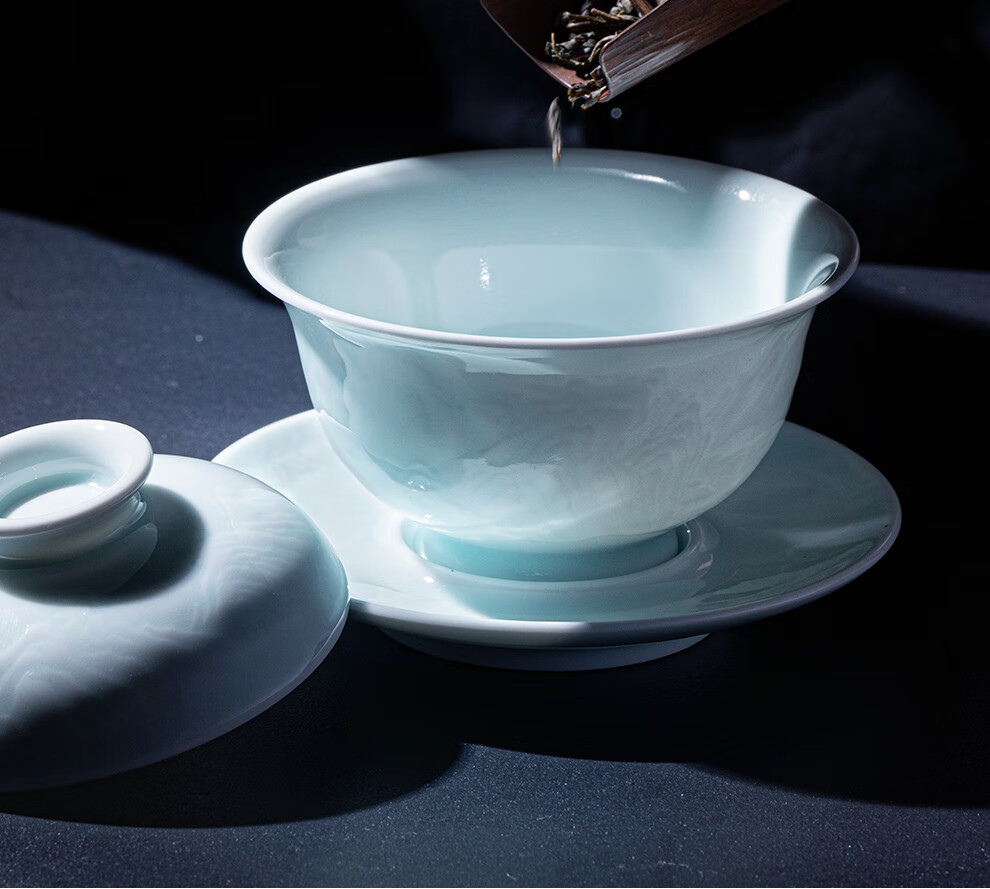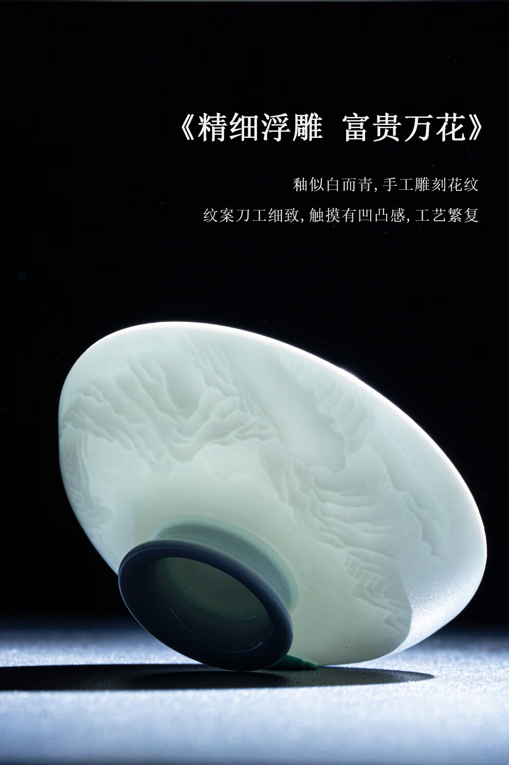 翠玉满堂景德镇茶具套装影青瓷雕刻手工高档陶瓷整套送老师领导礼物 【景德镇制】静似山6头